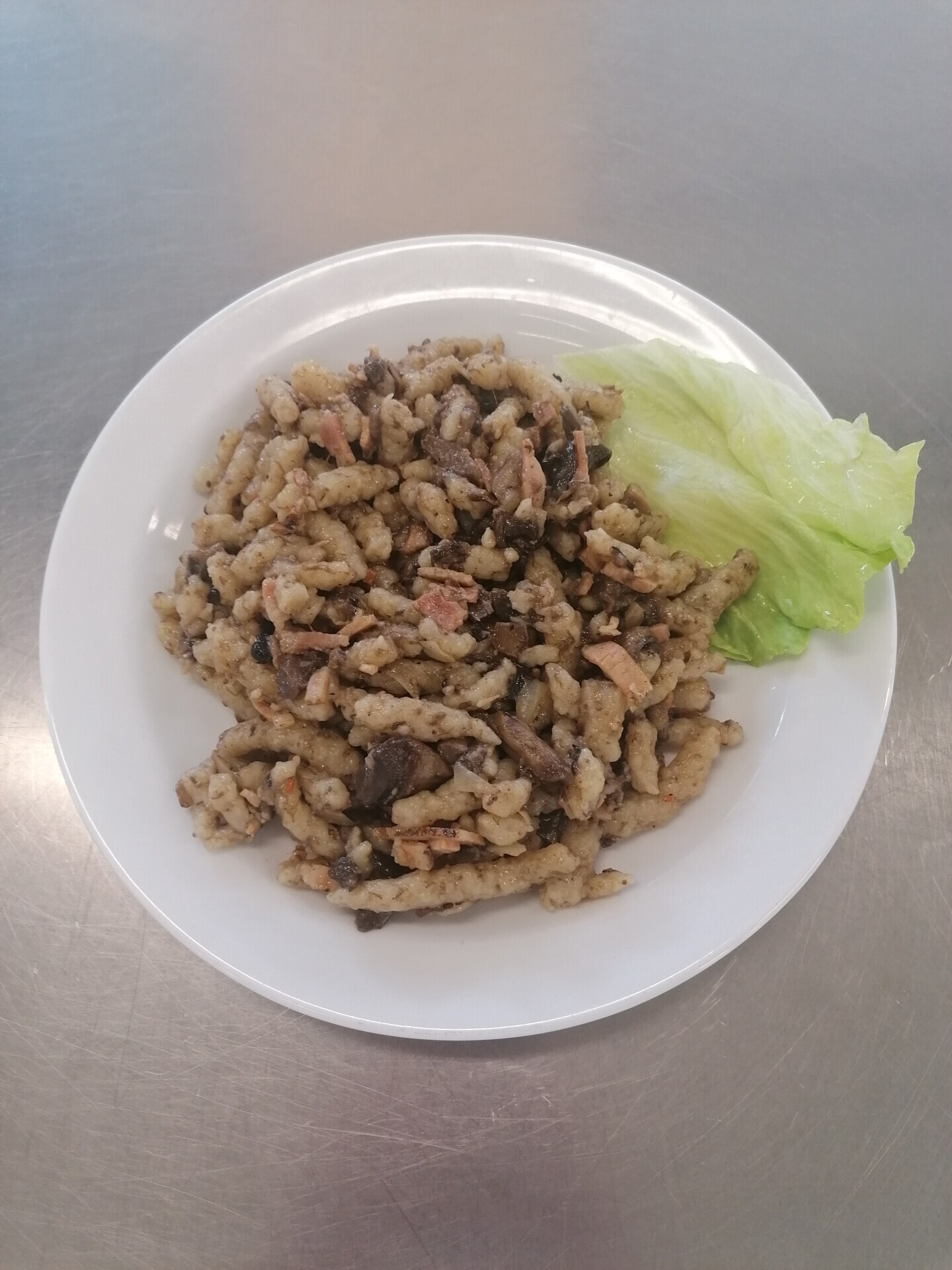 Bramborové halušky s houbami a slaninou