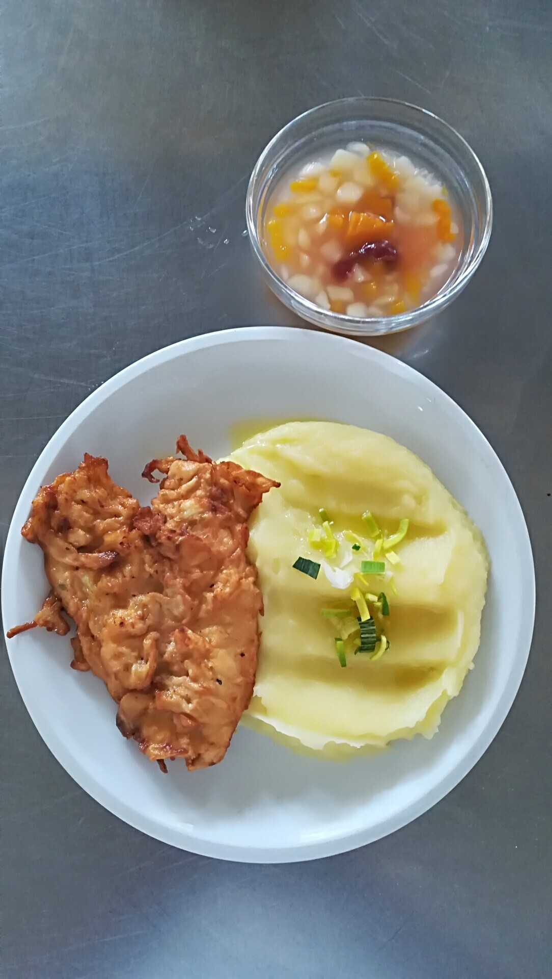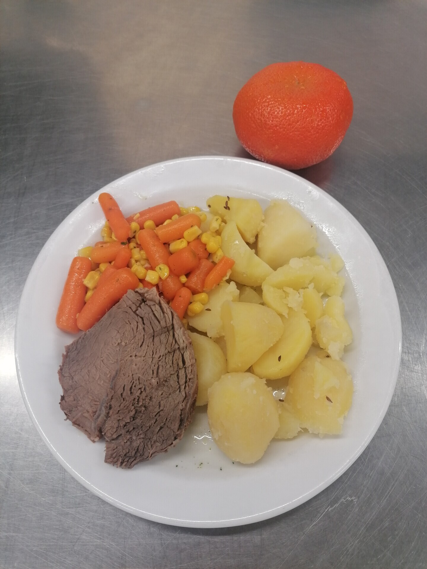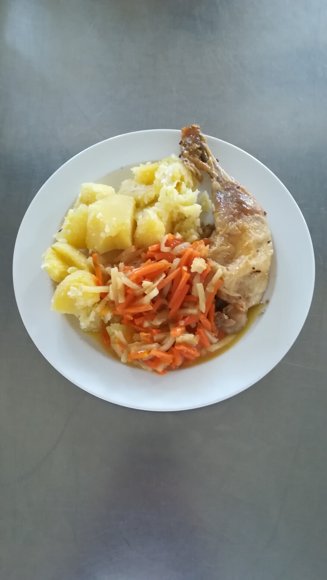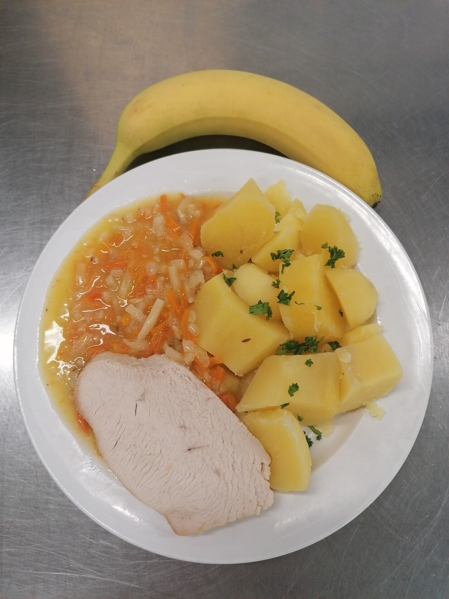 Vepřový plátek, dušená mrkev, vařený brambor