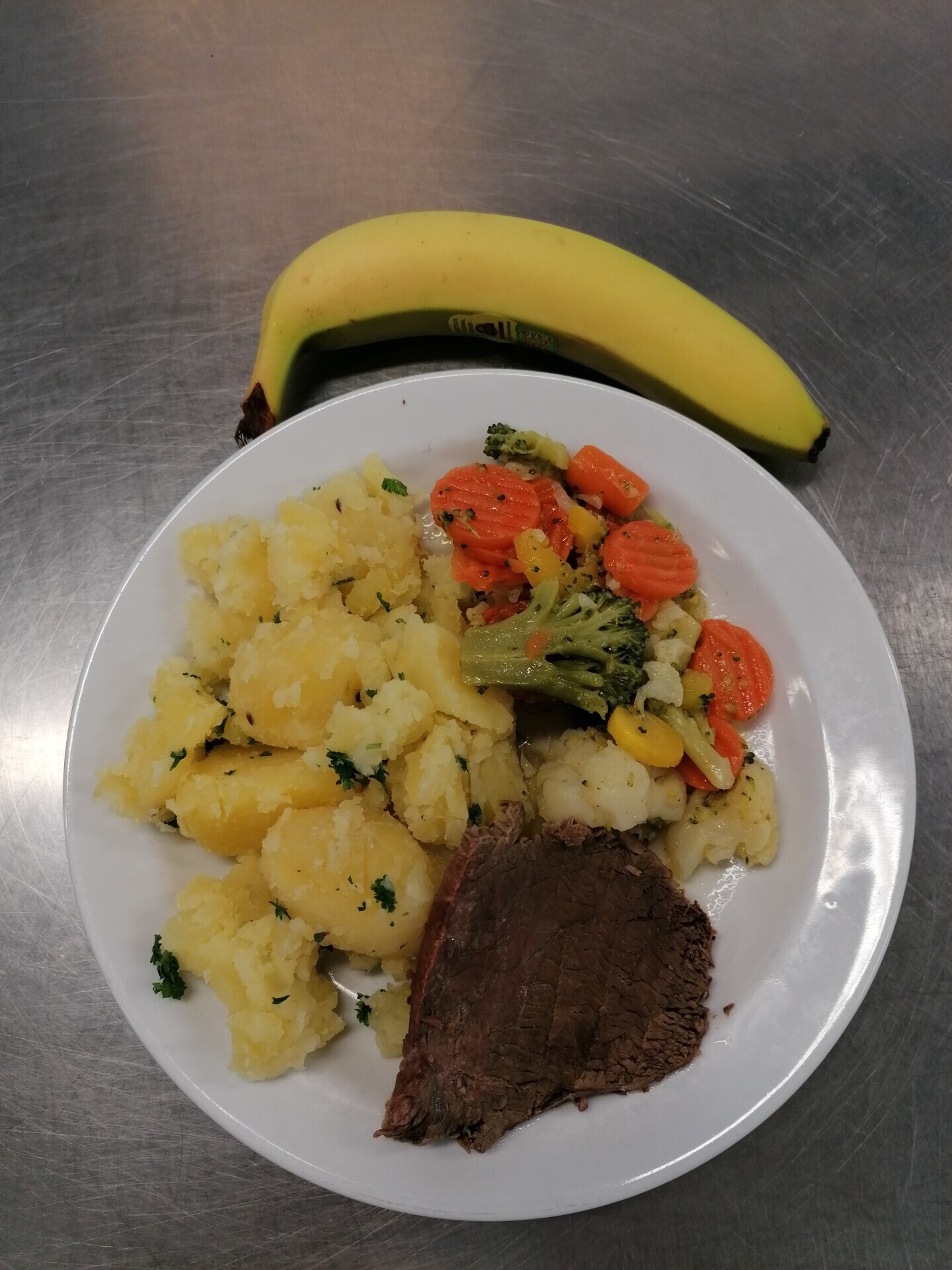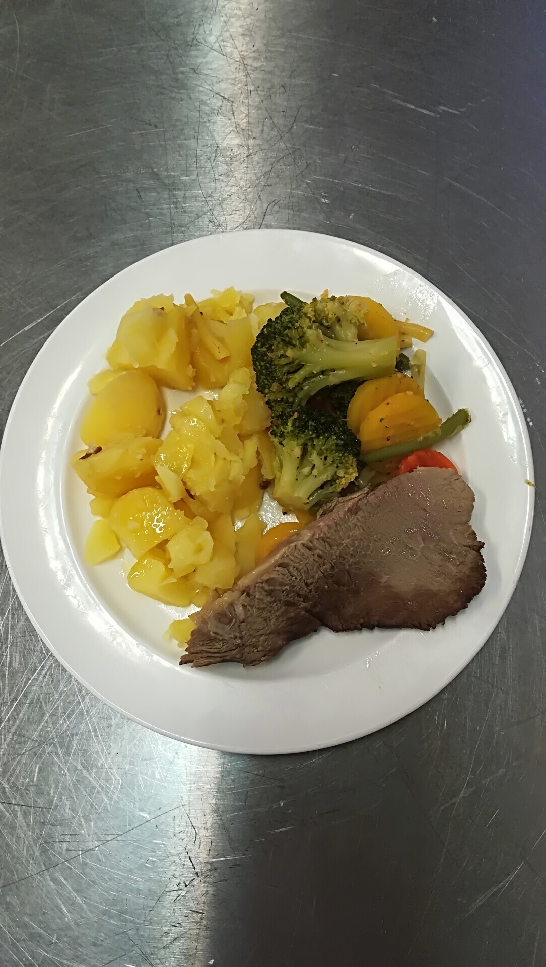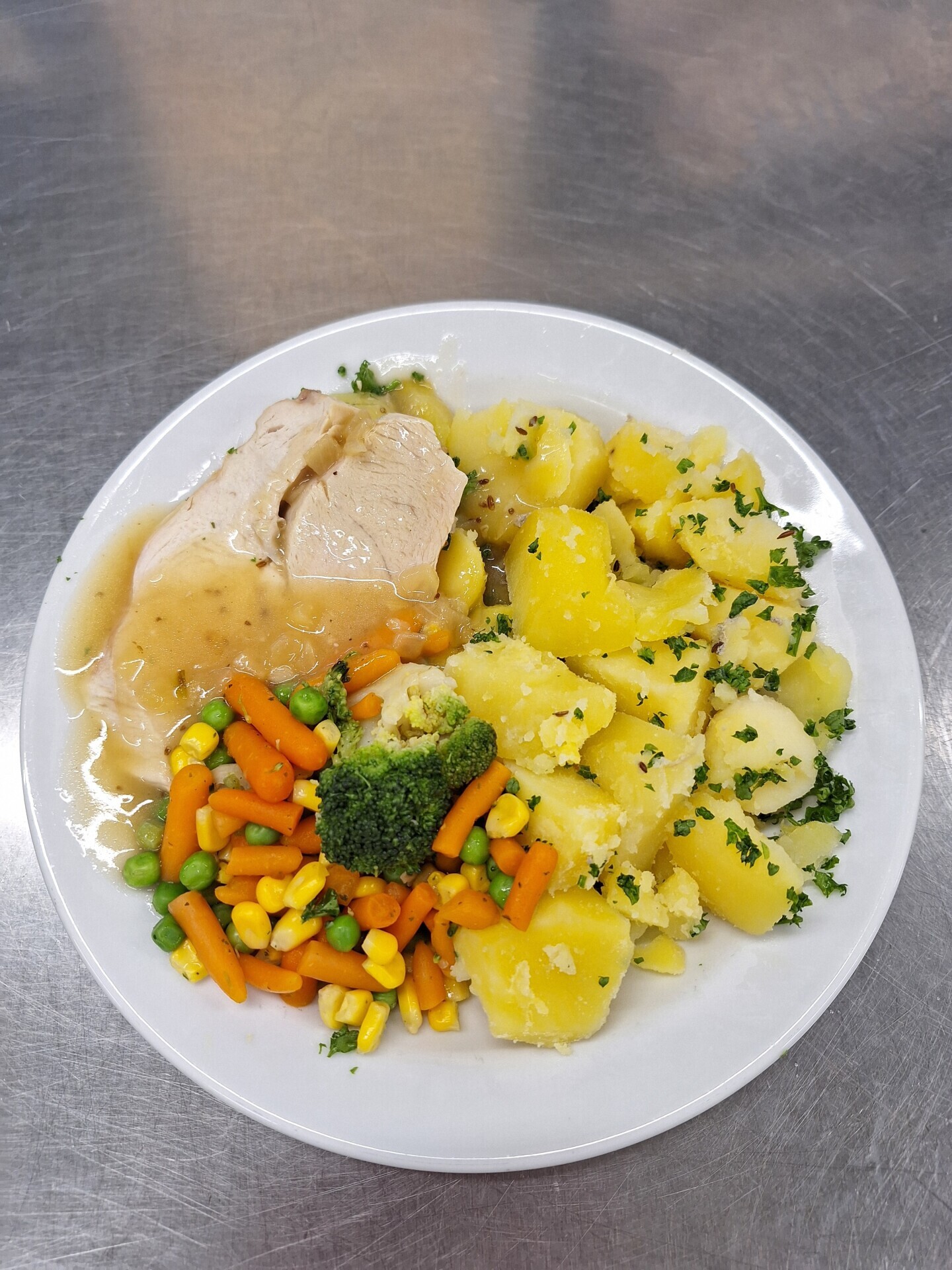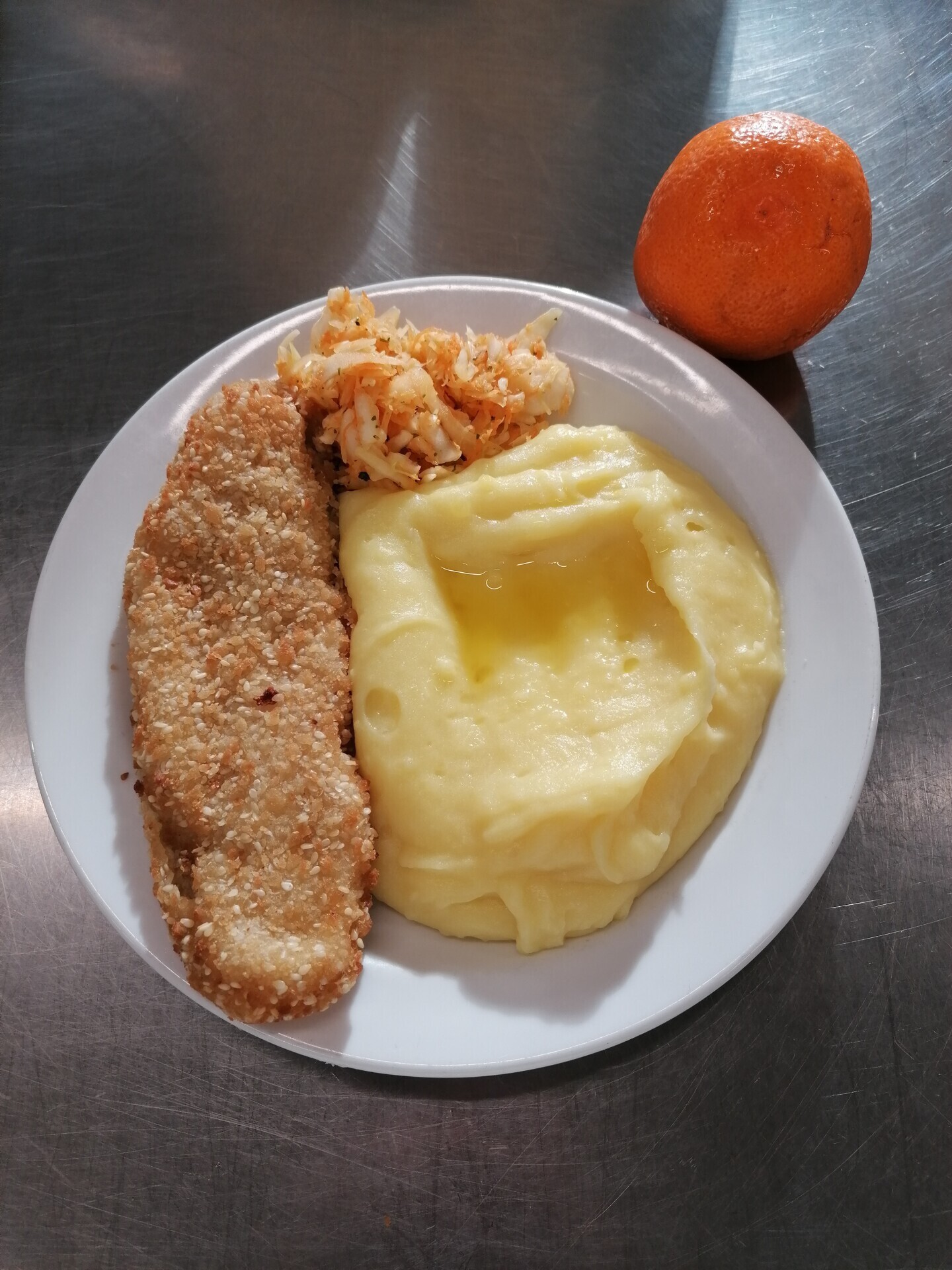 Vepřový plátek, dušená mrkev, vařený brambor