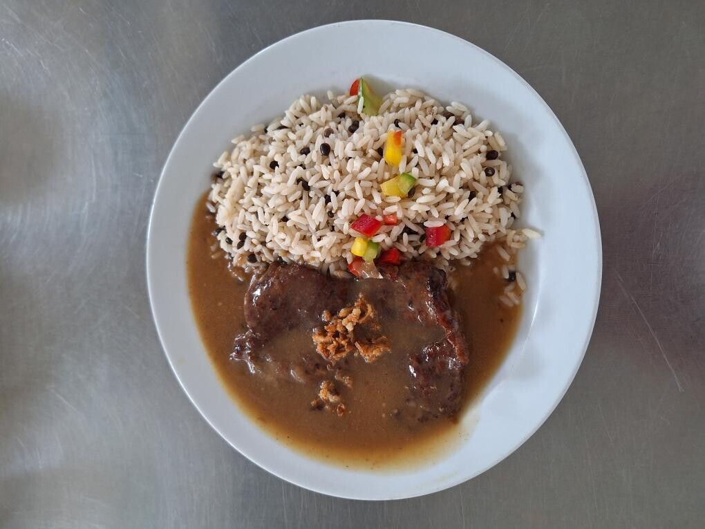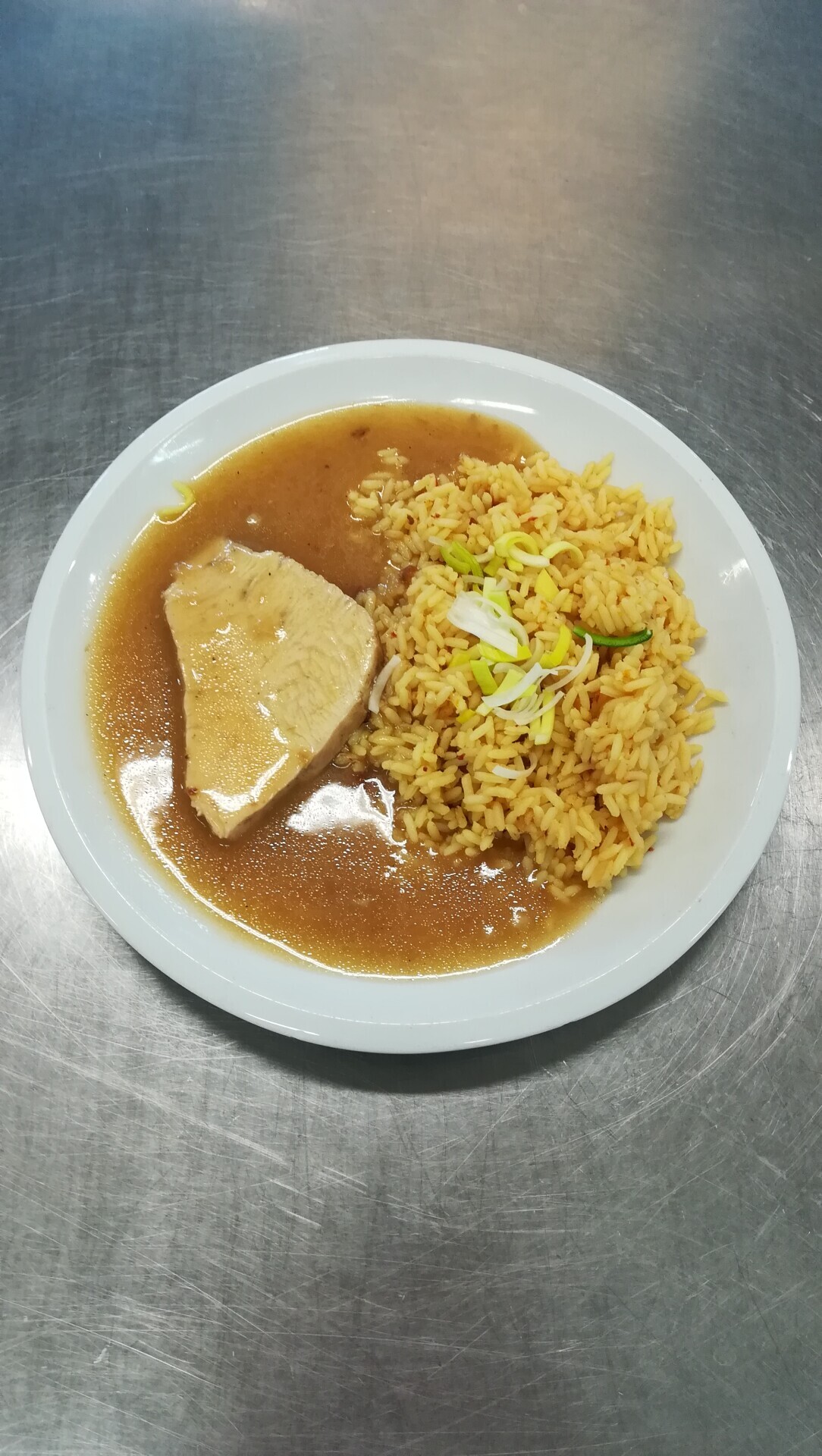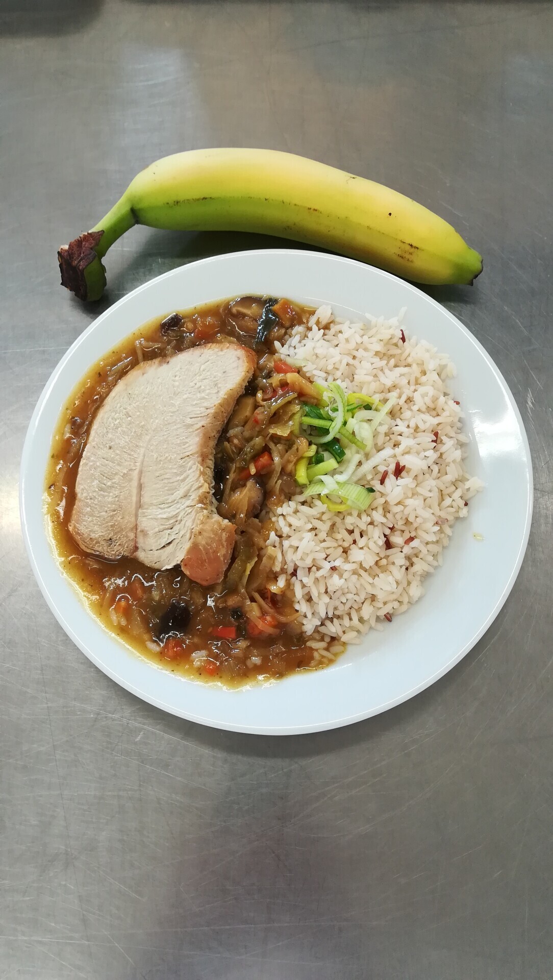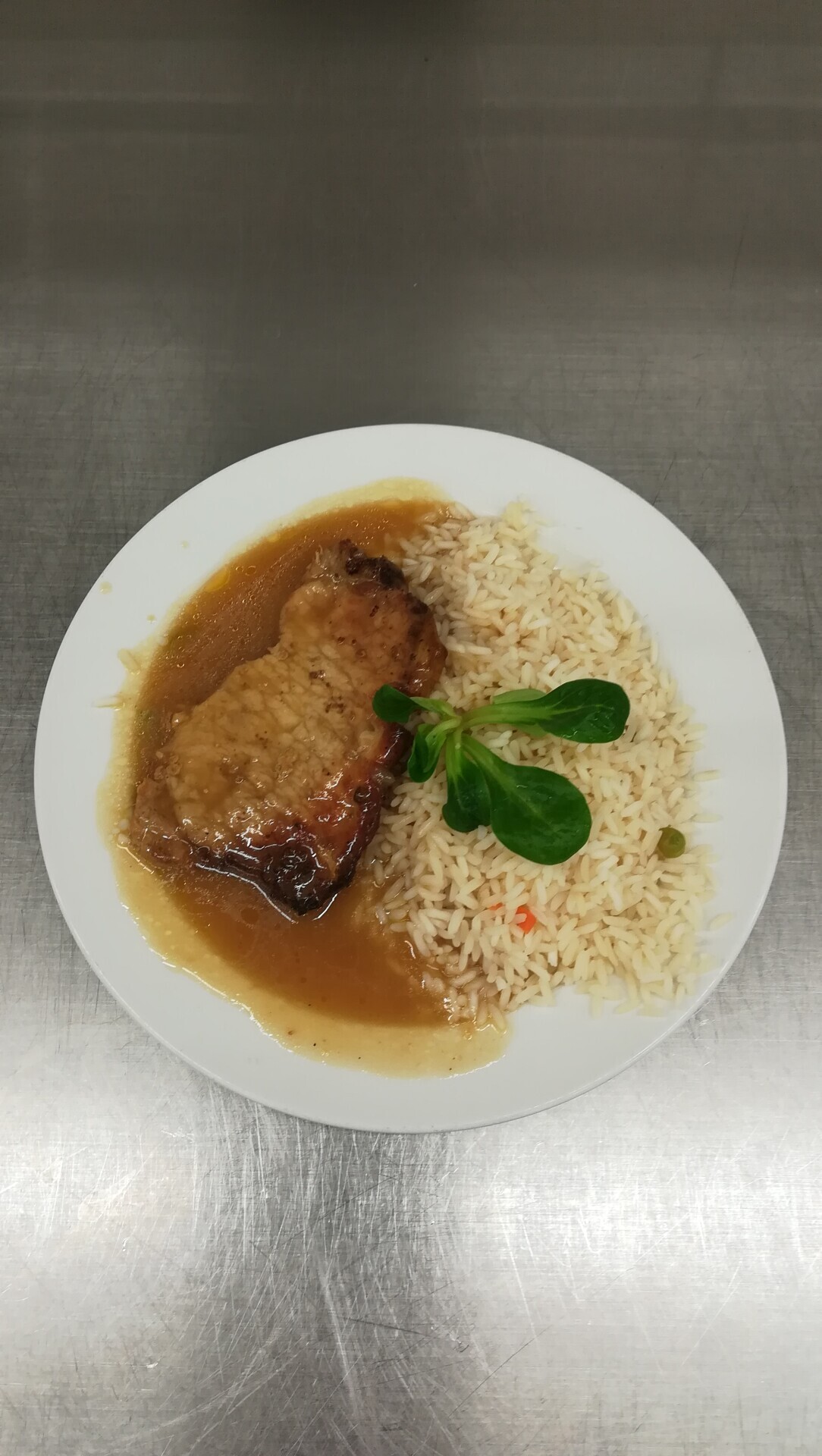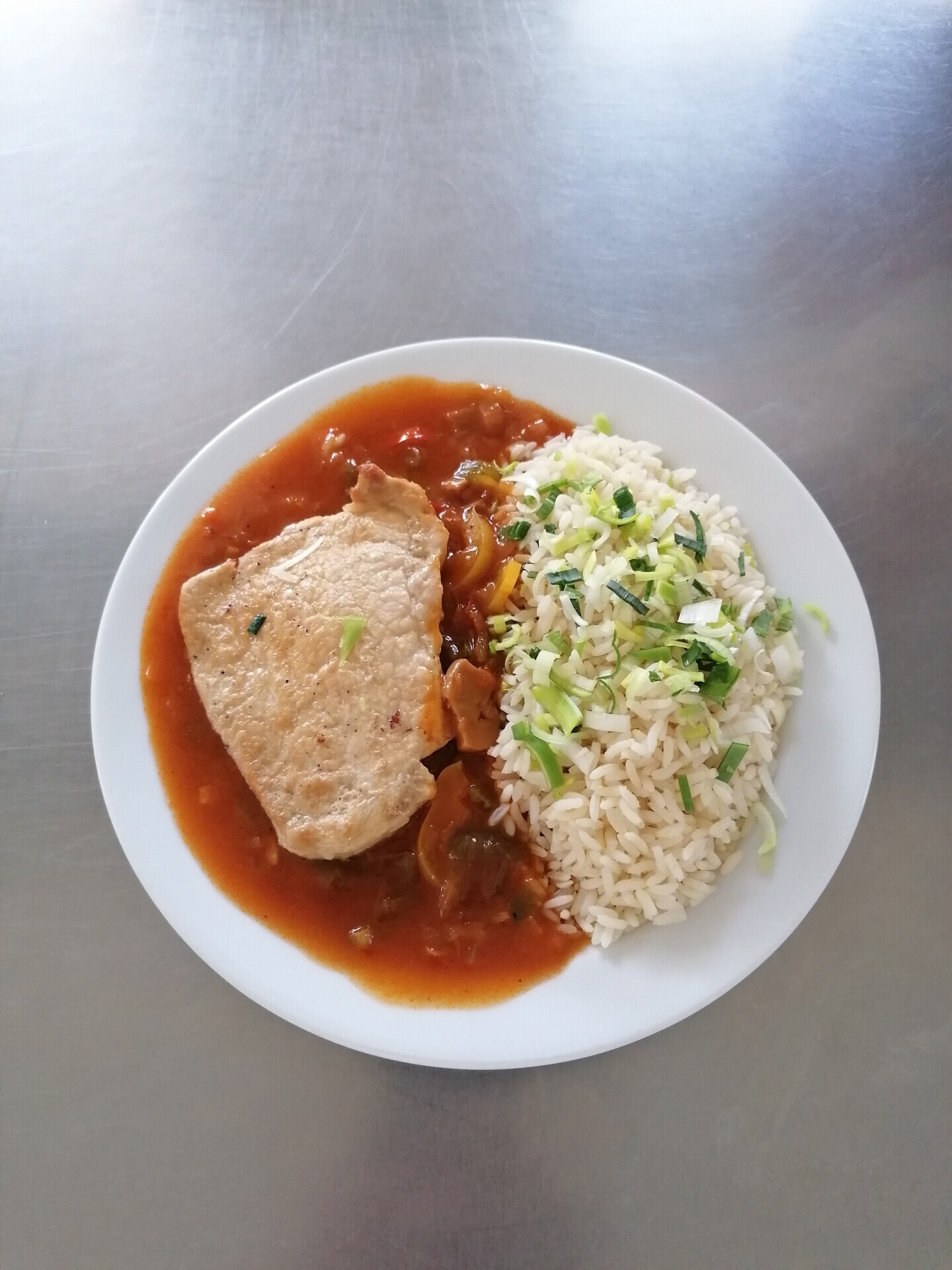 Vepřový plátek, dušená zeleninová rýže