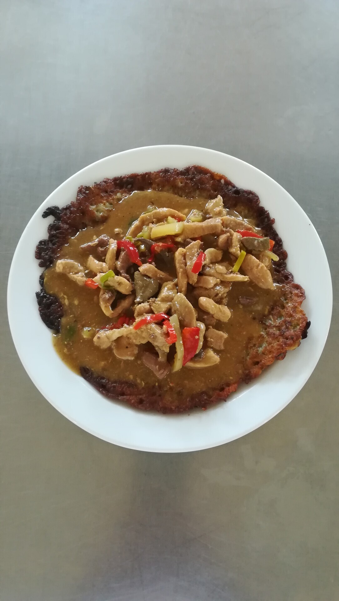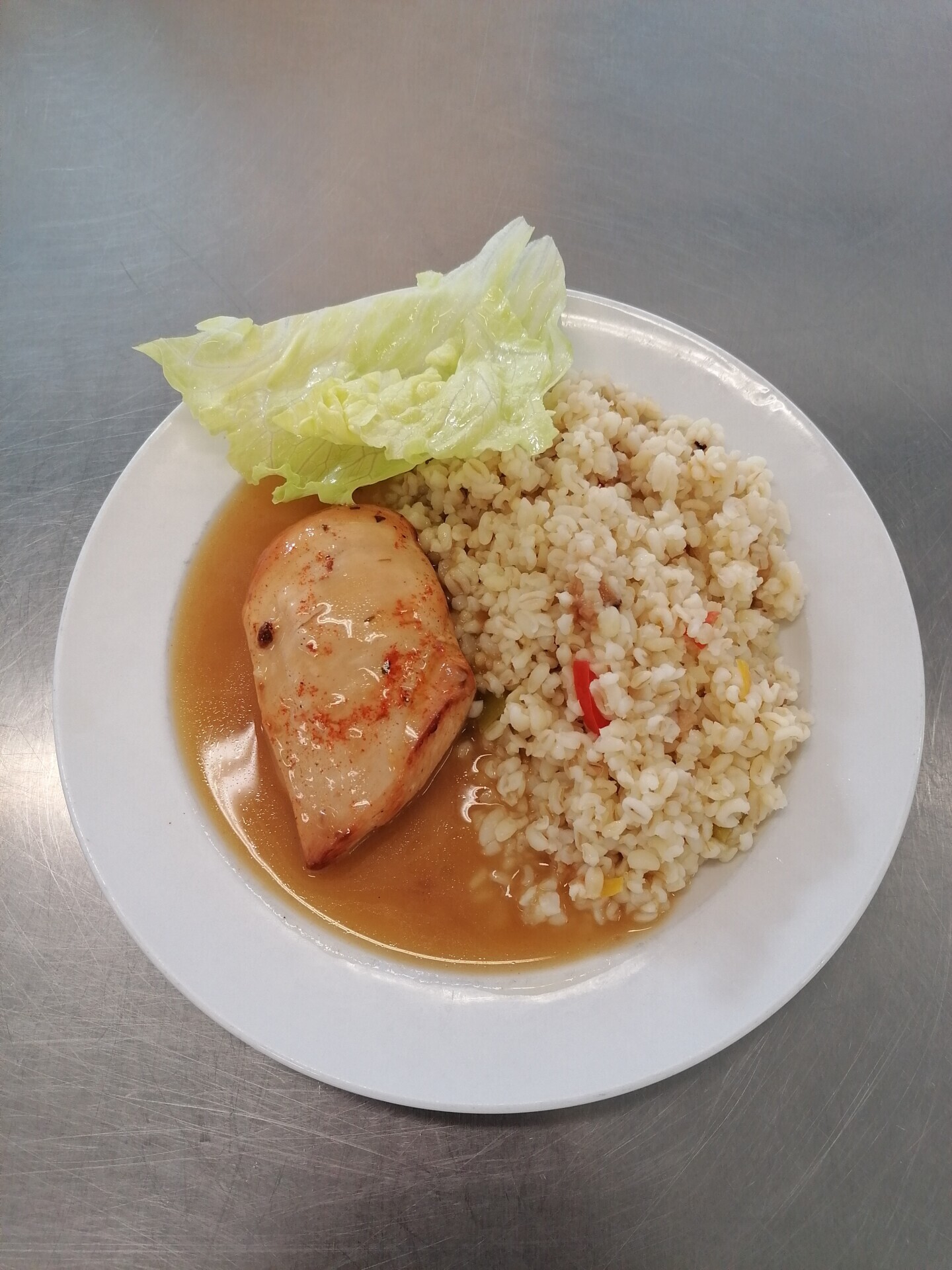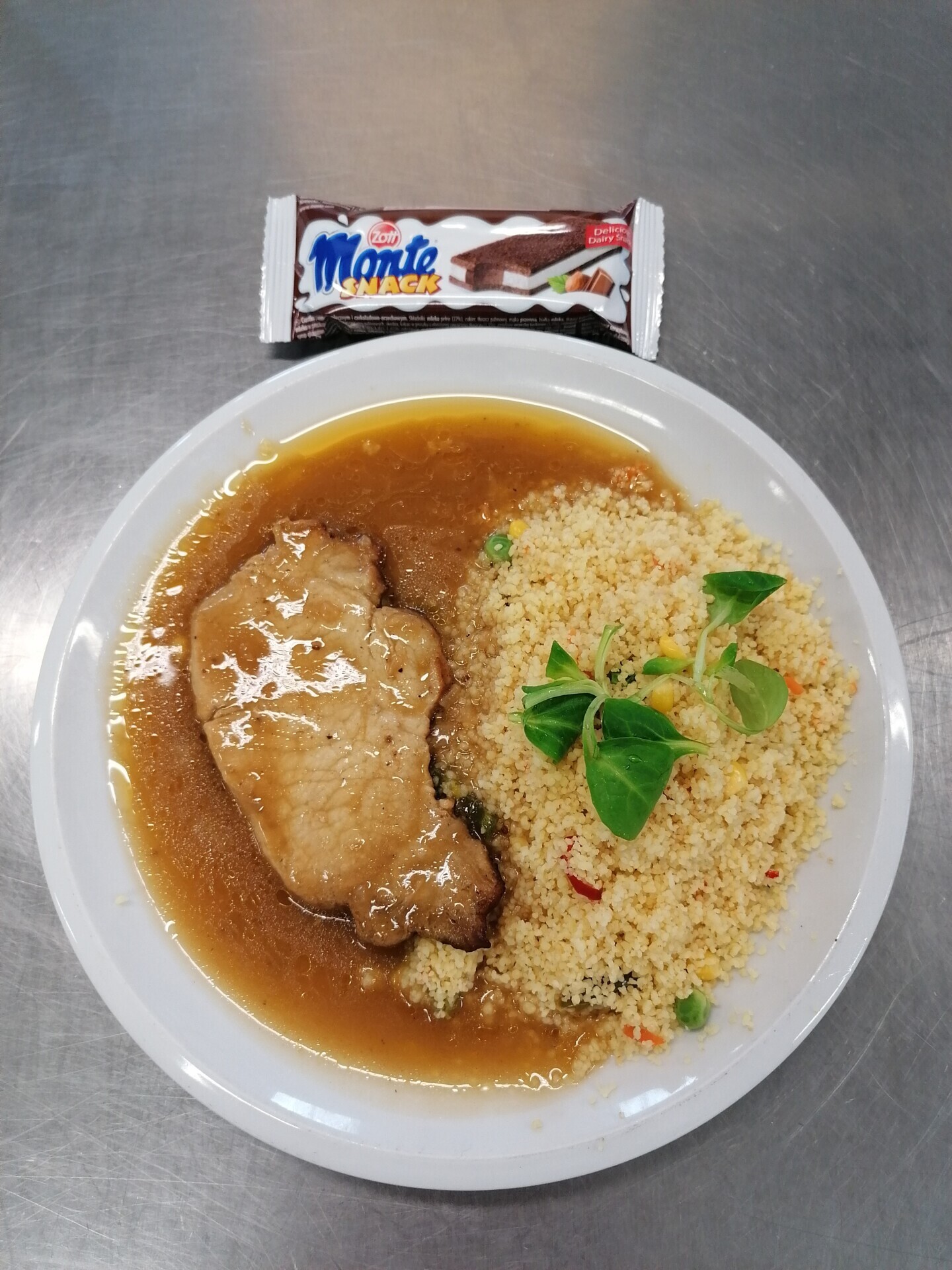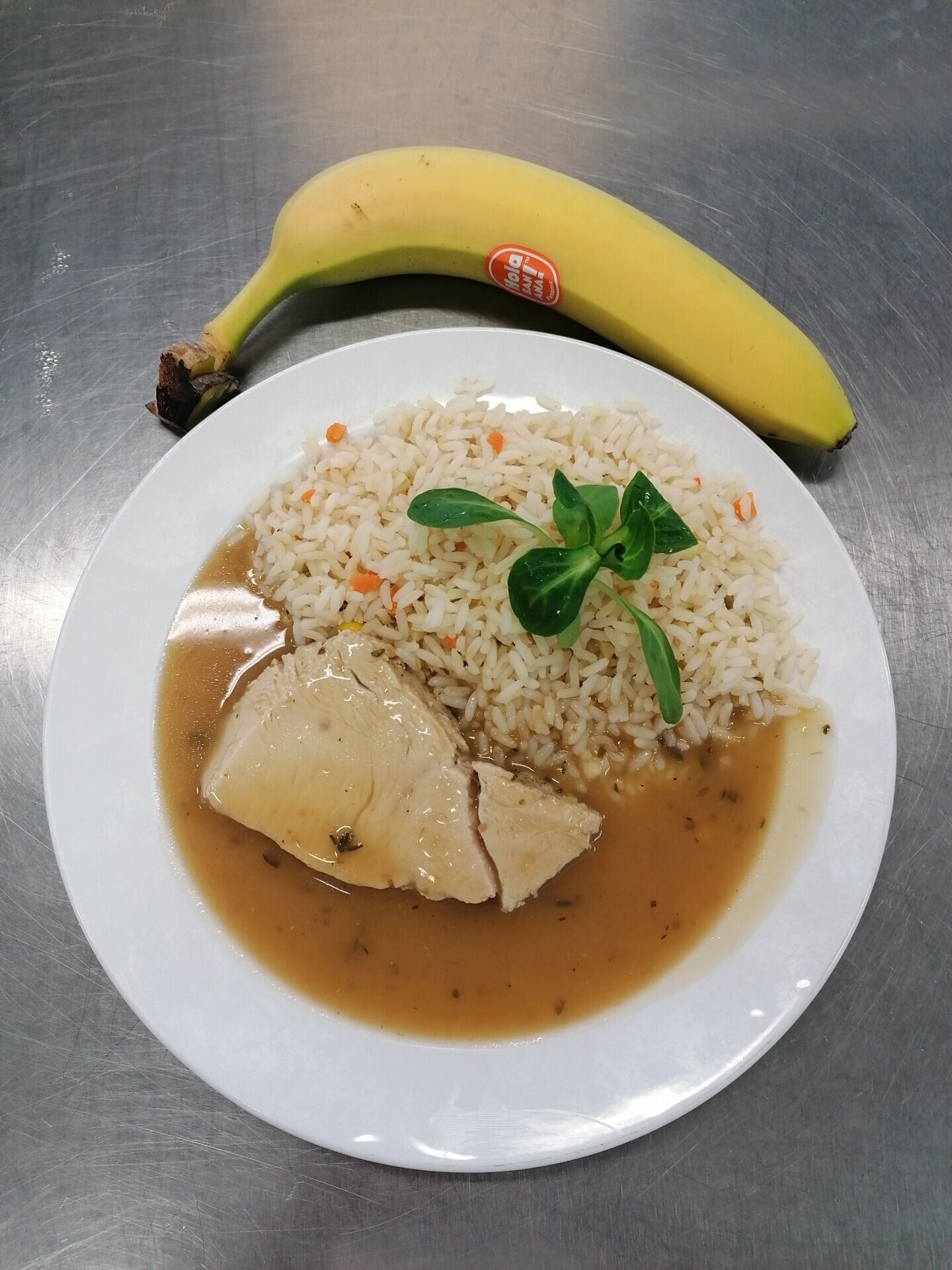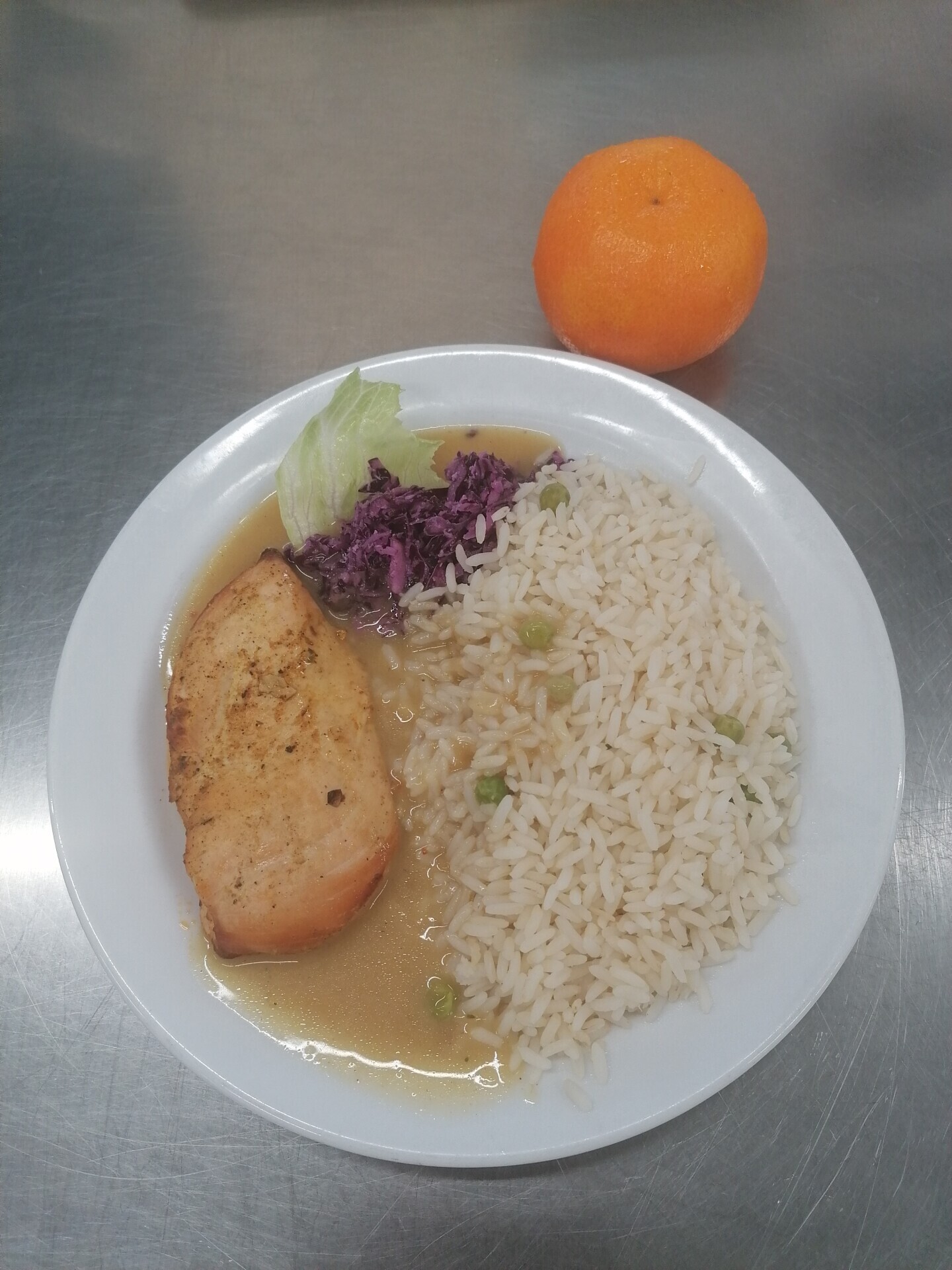 Vepřový plátek, dušená zeleninová rýže