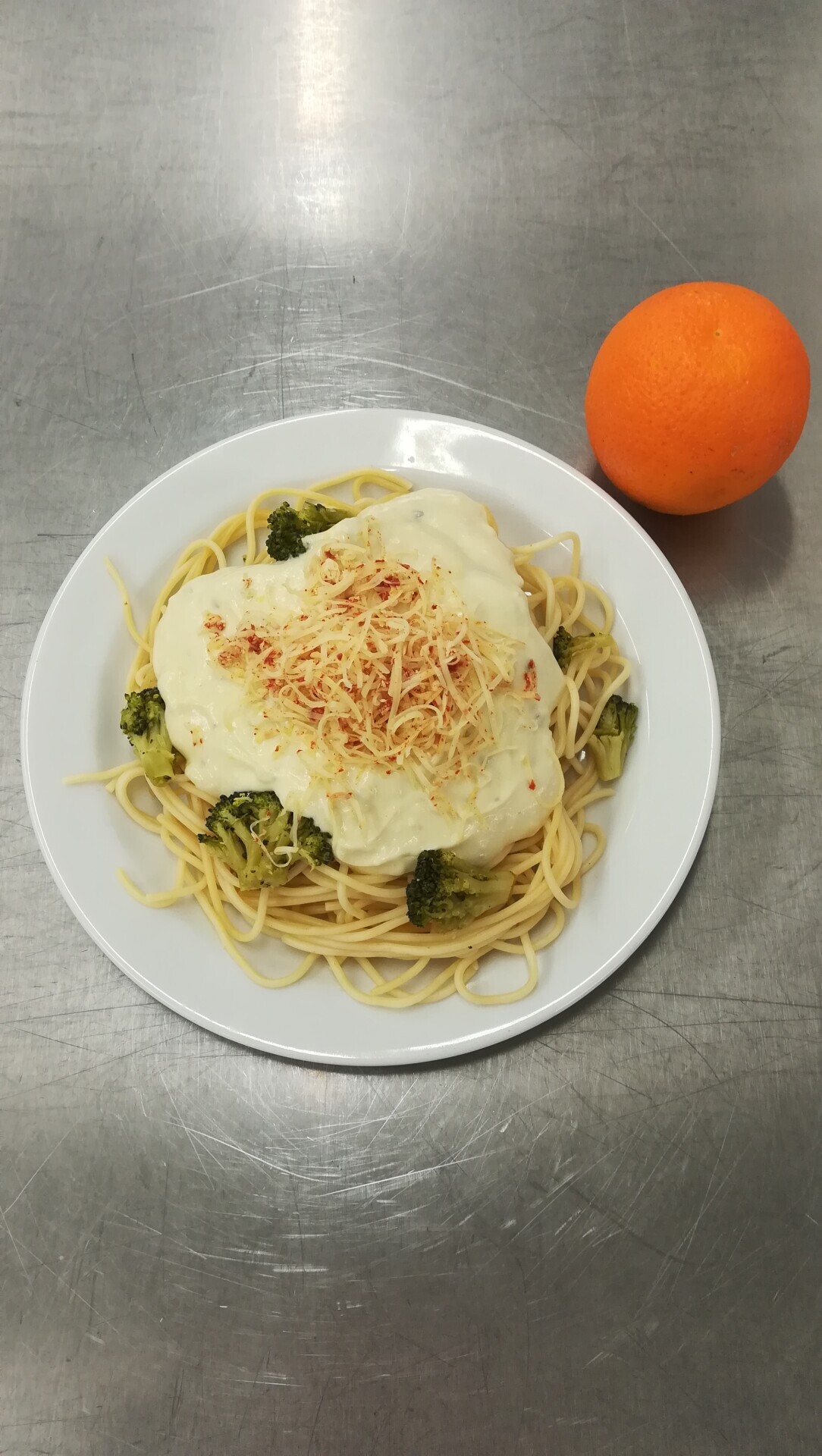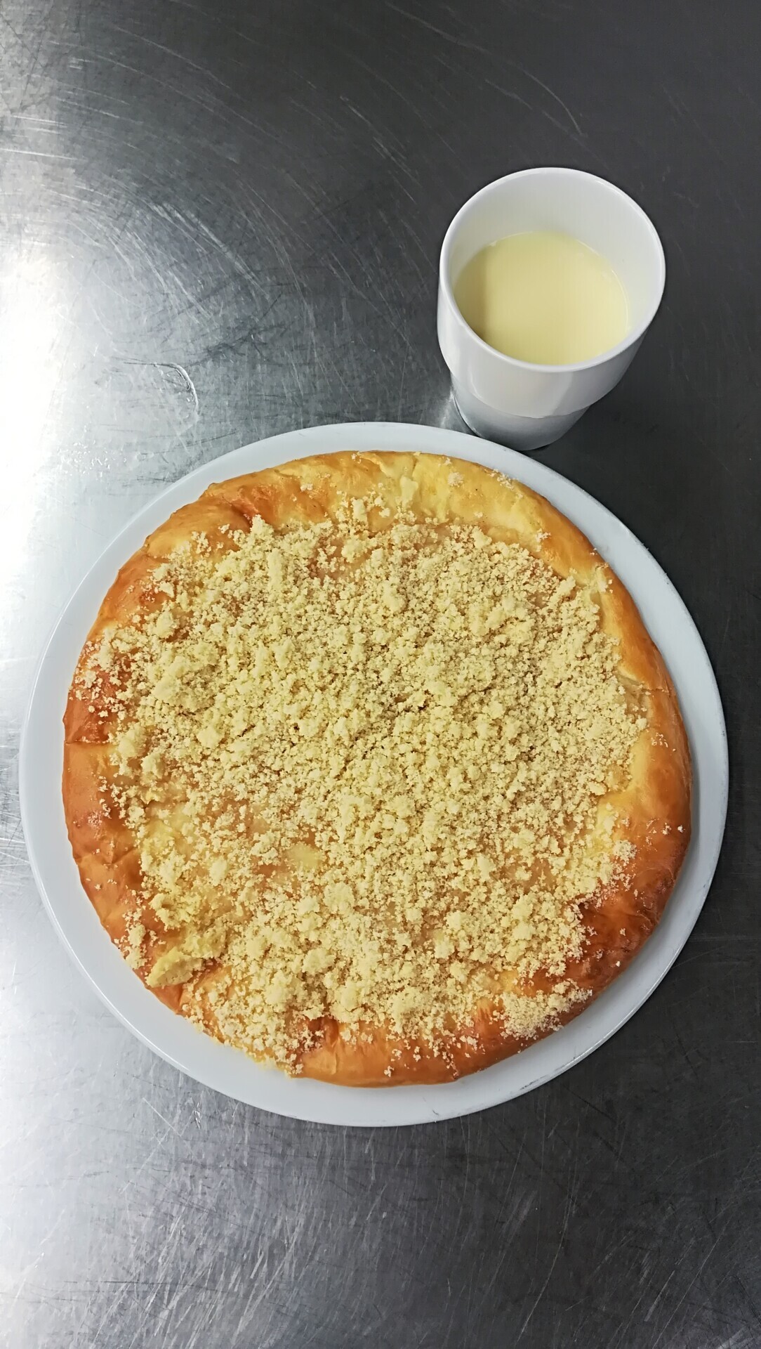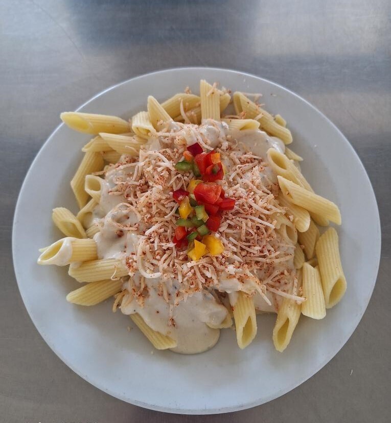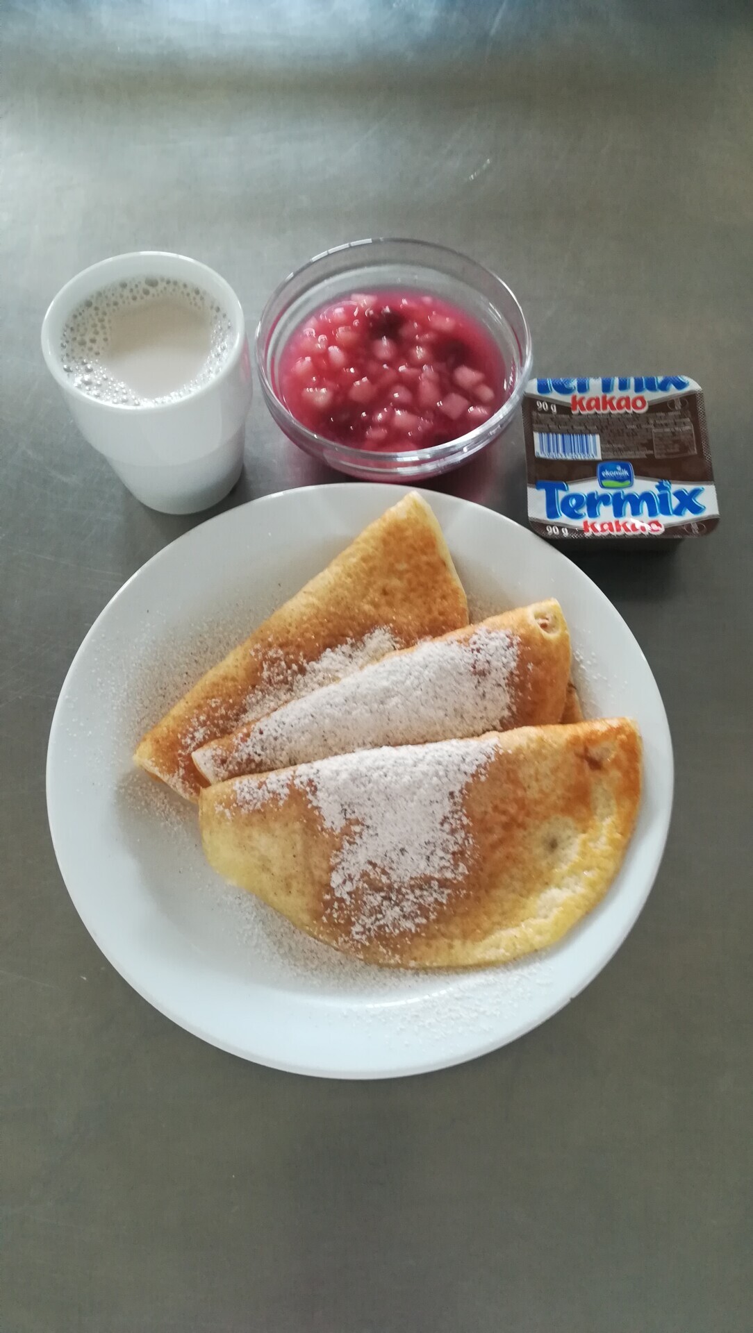 Duo těstoviny s tvarohem a broskví, ochucené mléko