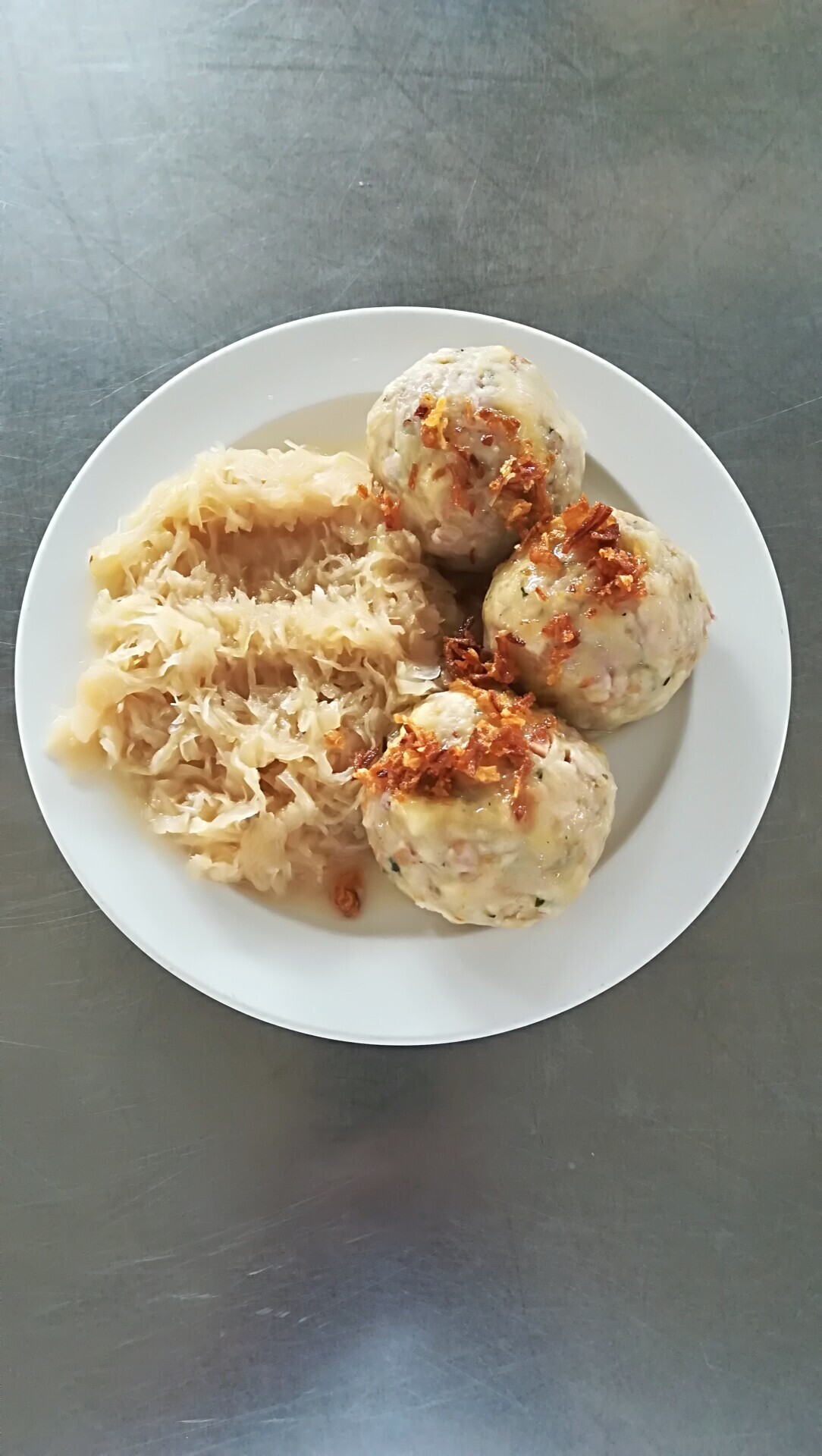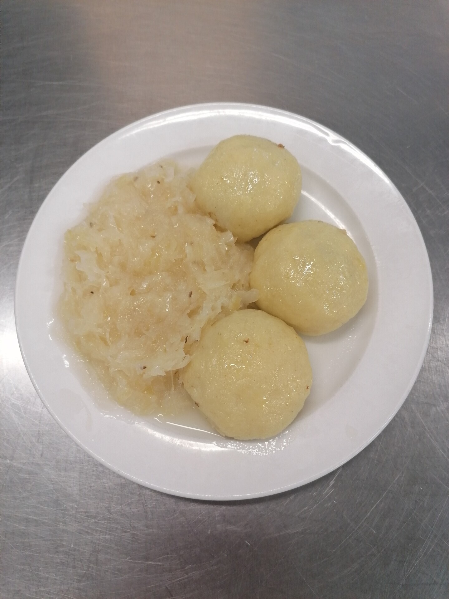 Bramborové knedlíky plněné pohankou a angl.slaninou, dušené zelí
