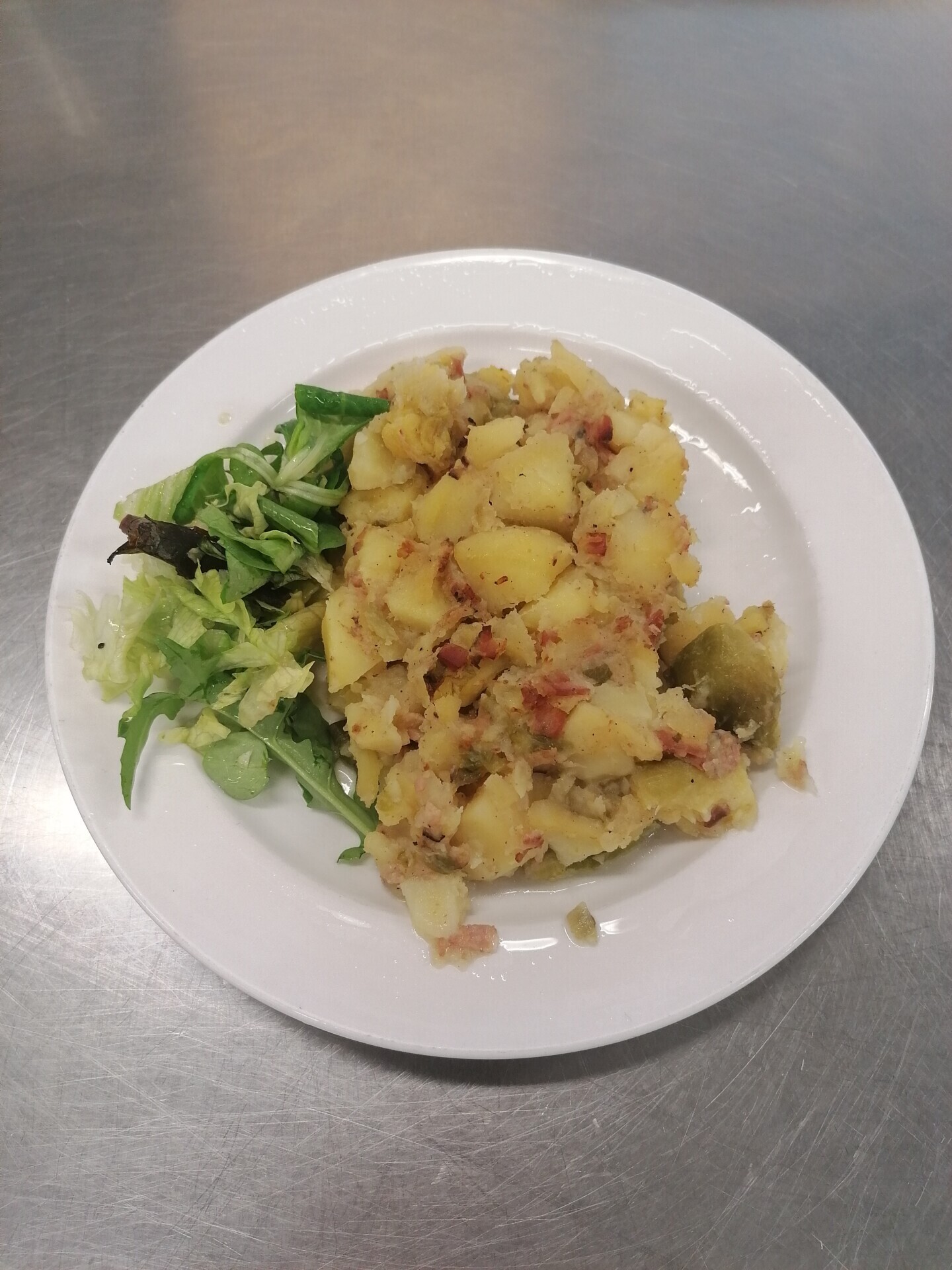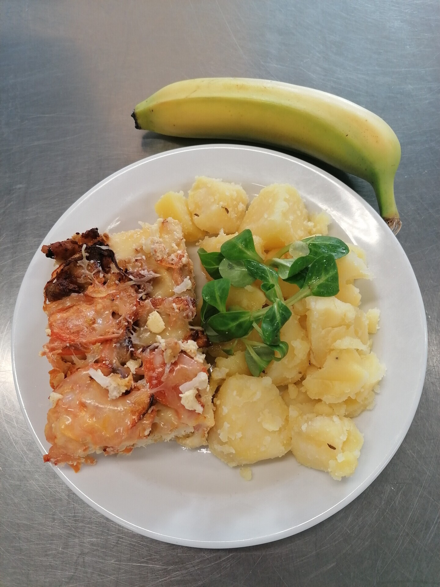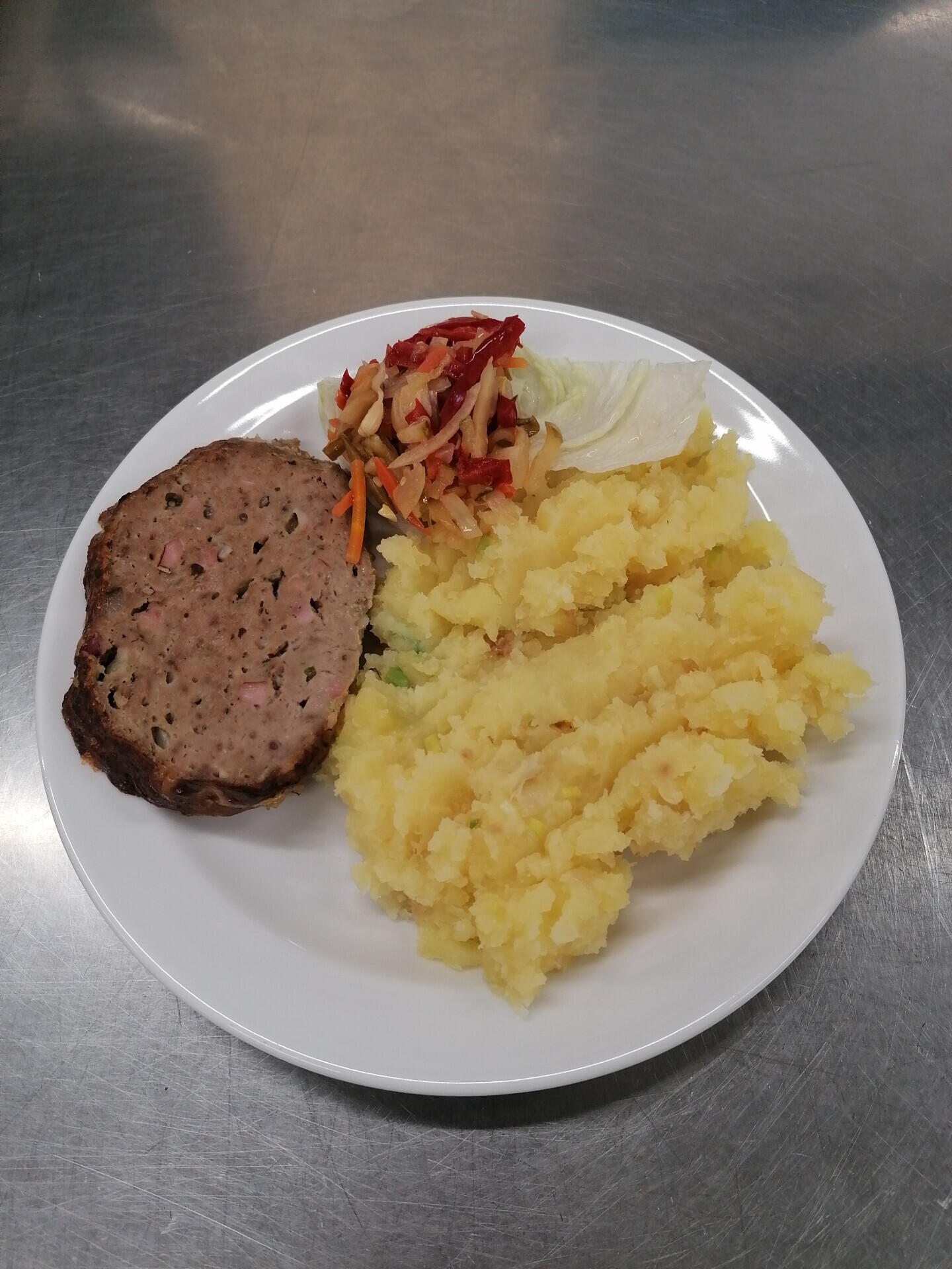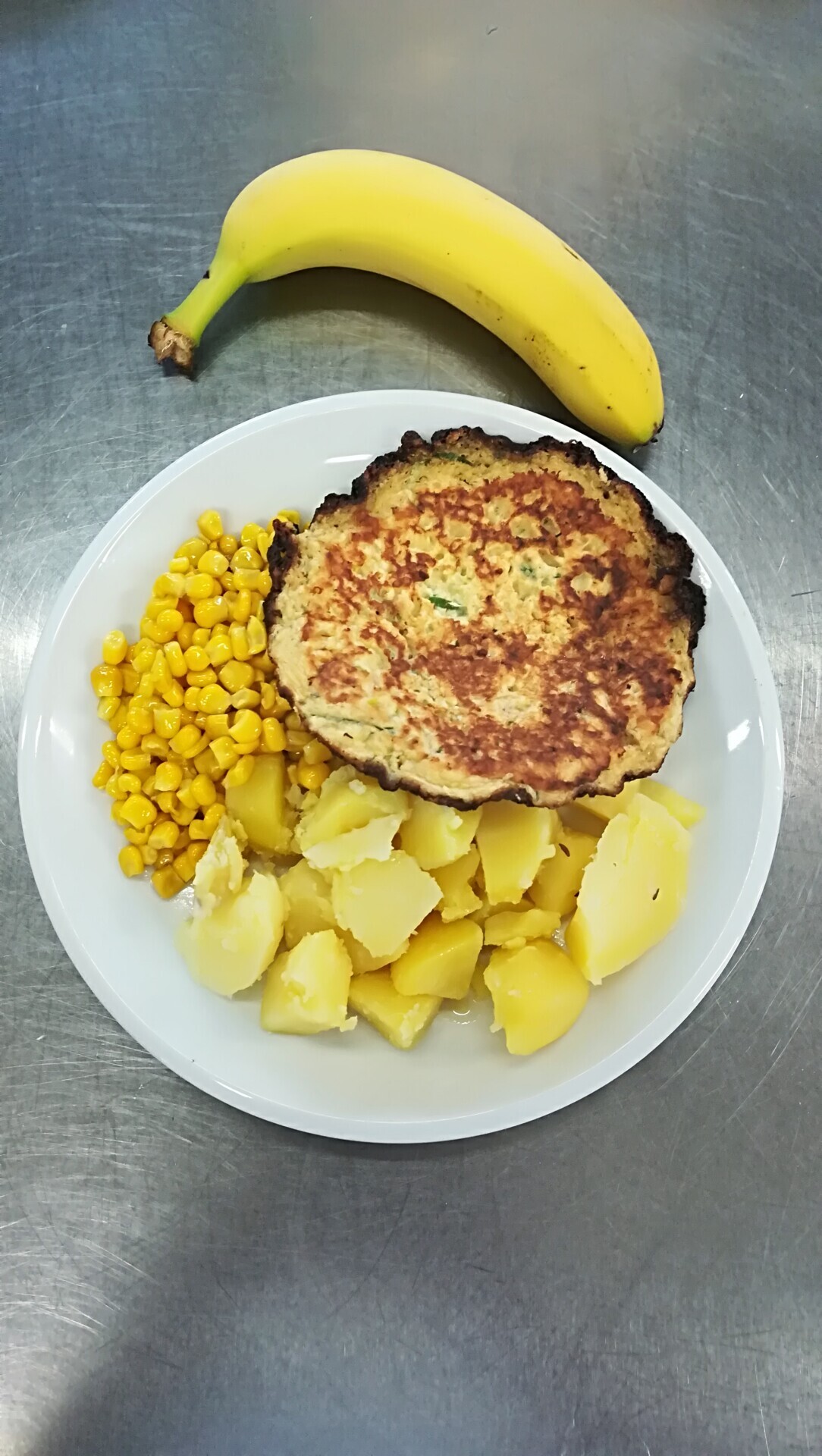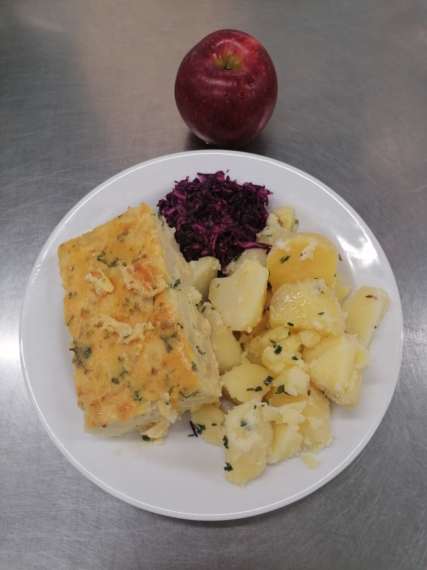 Zahradnická sekaná se sojovým masem, vařený brambor, zeleninový salát