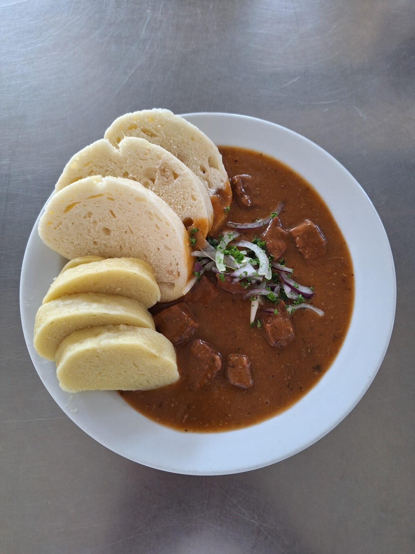 Vídeňský guláš, houskový knedlík