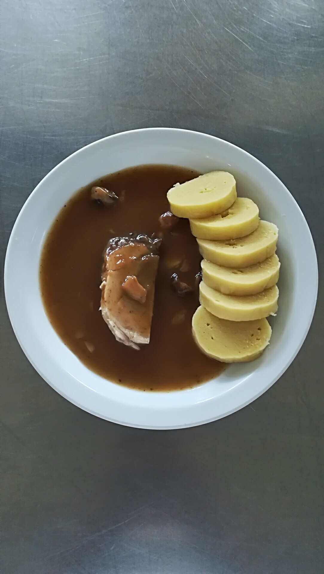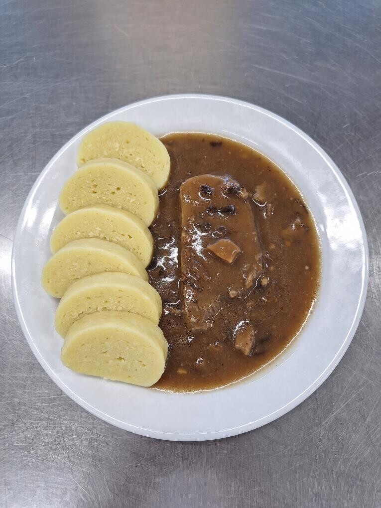 Vepřová plec na houbách, bramborový knedlík