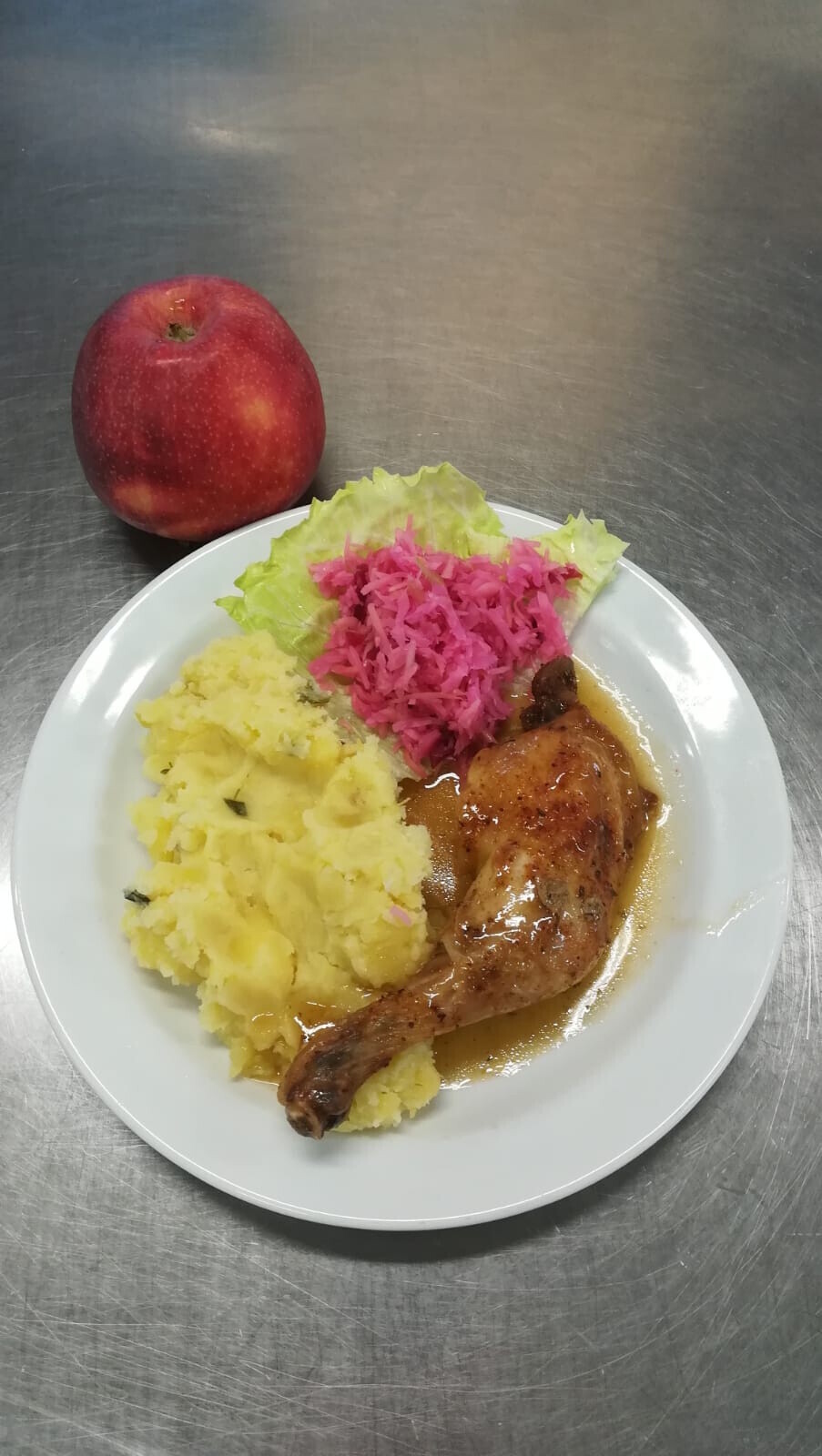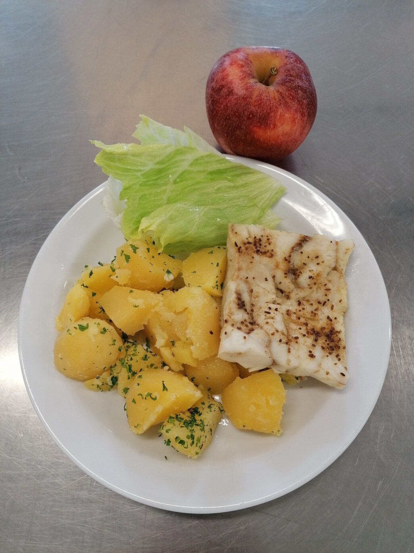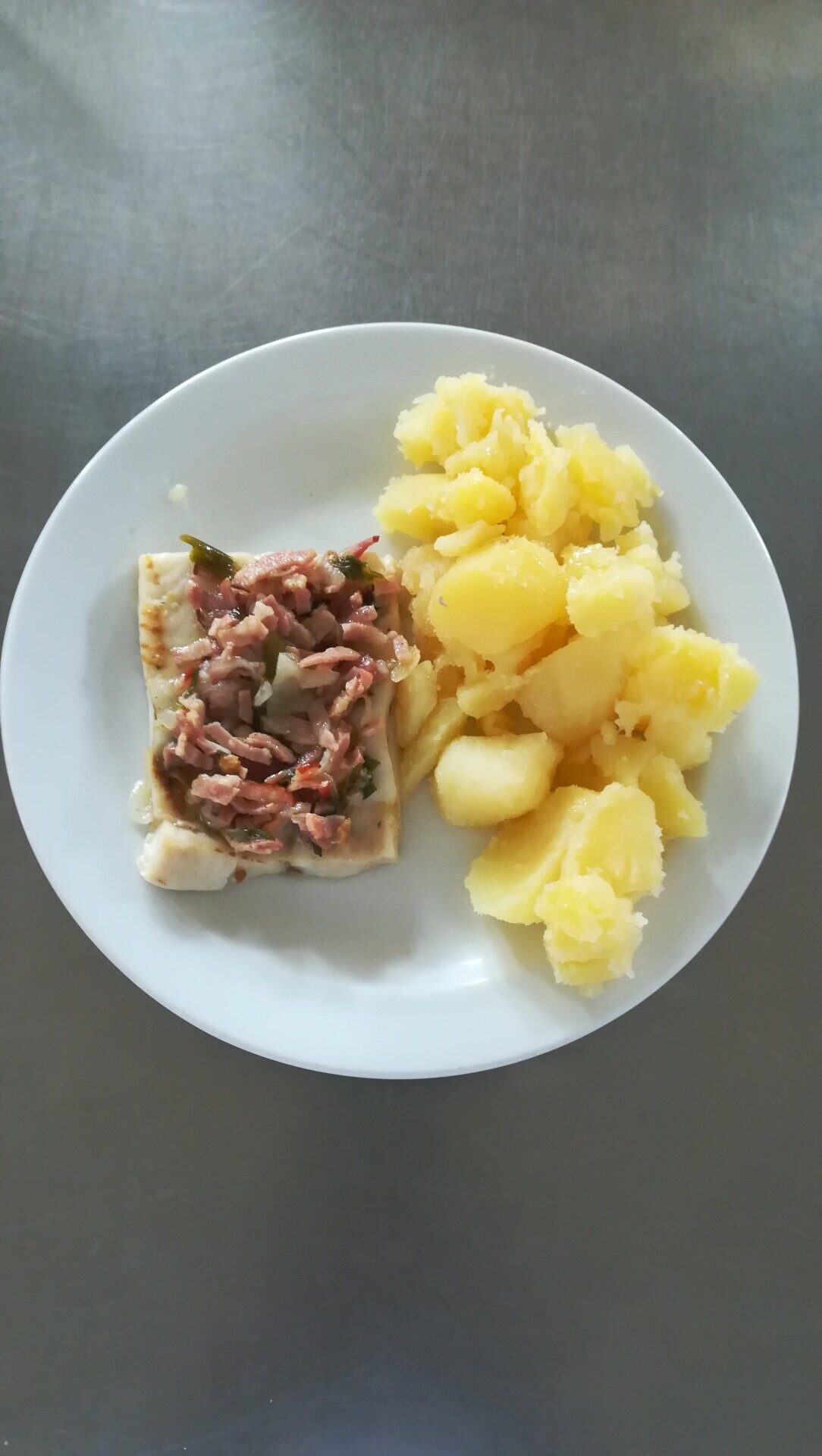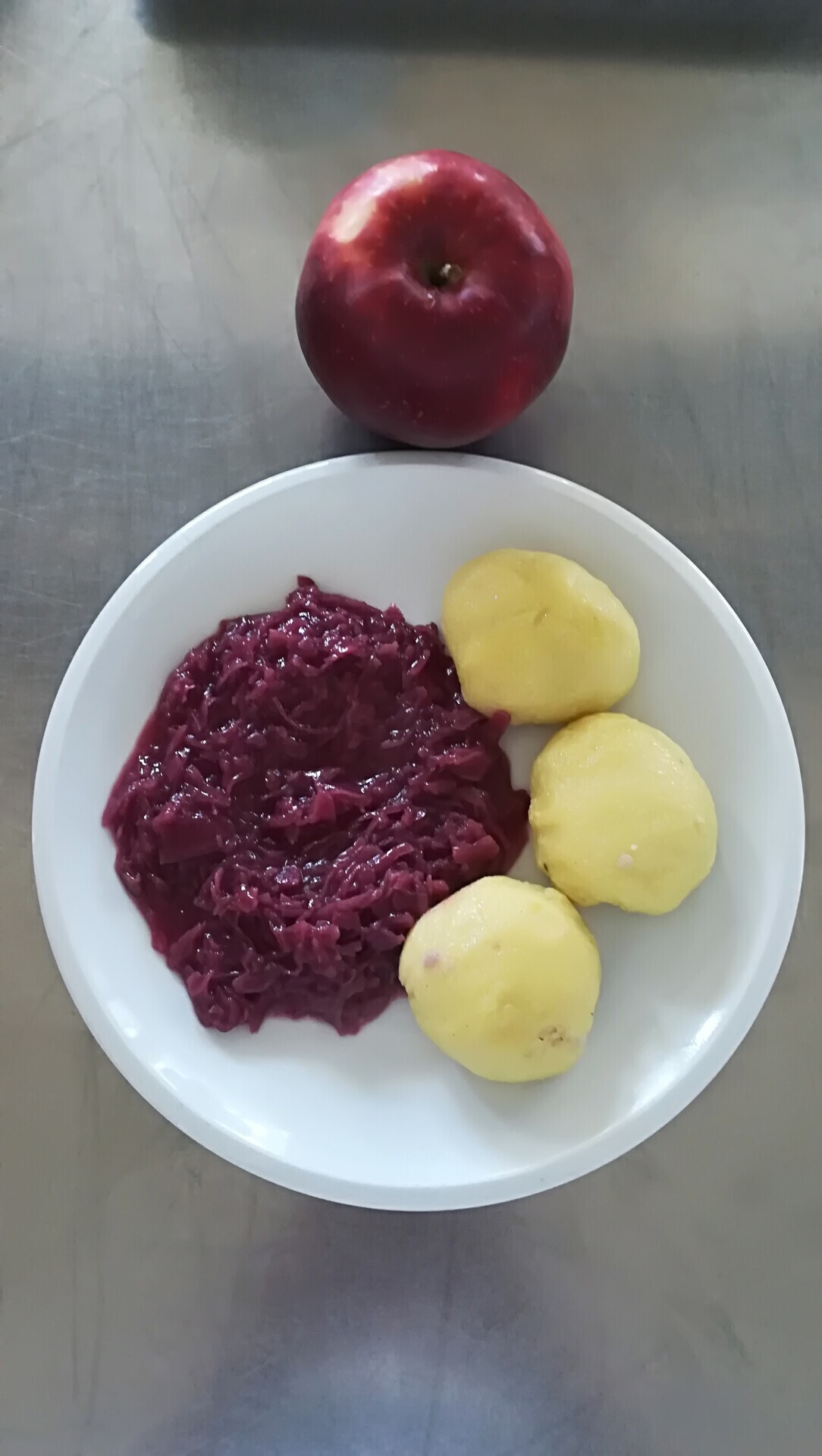Vepřový plátek v kapustě, vařený brambor