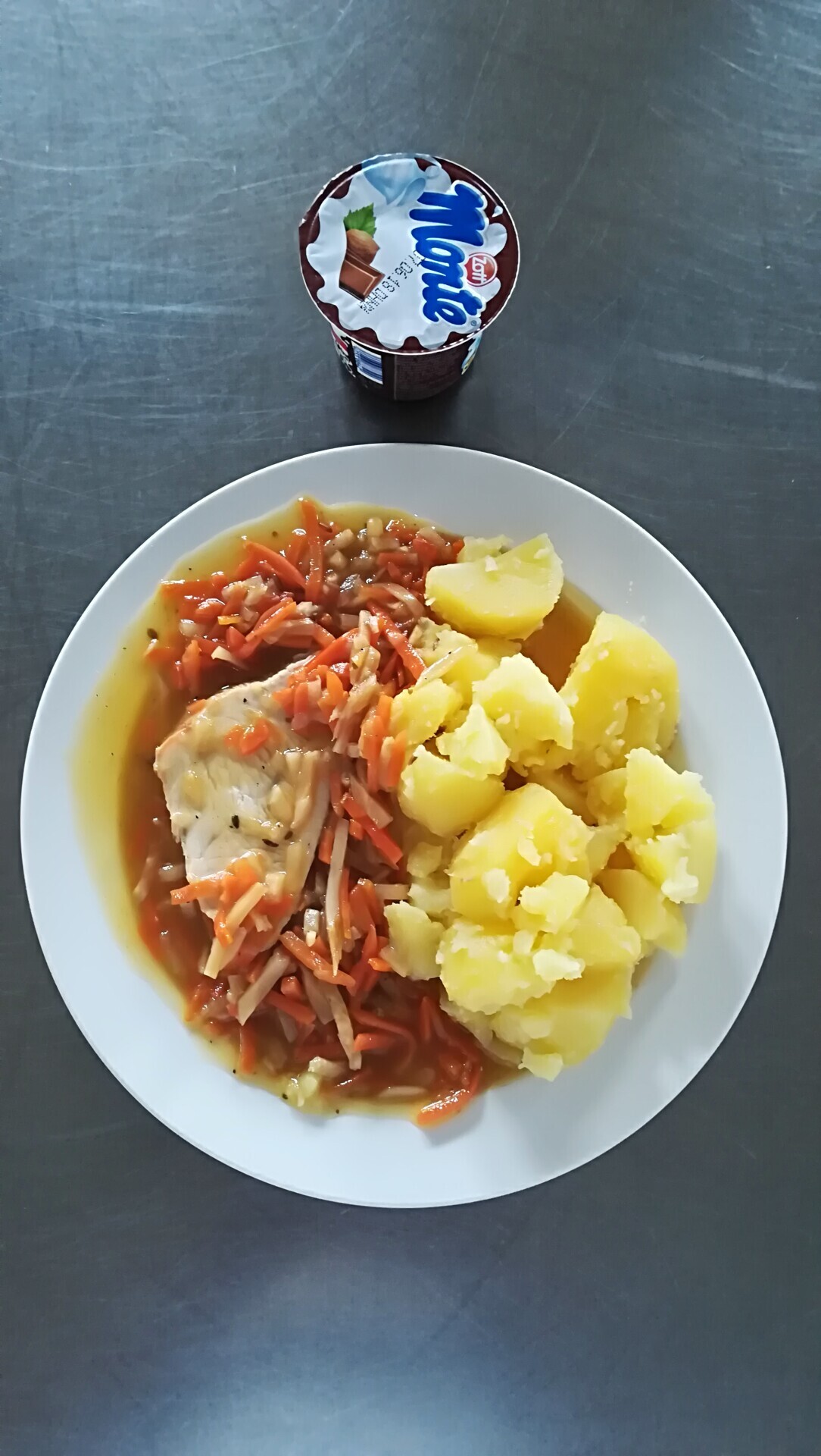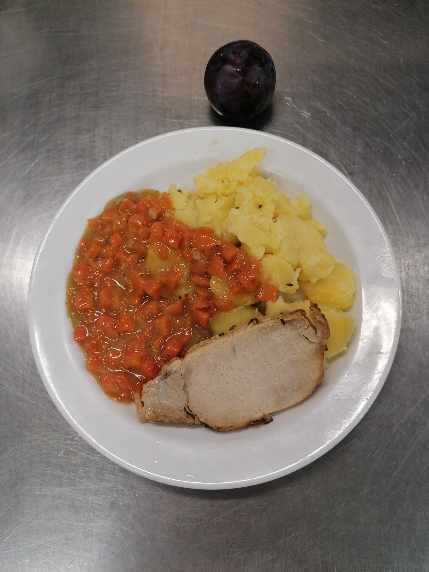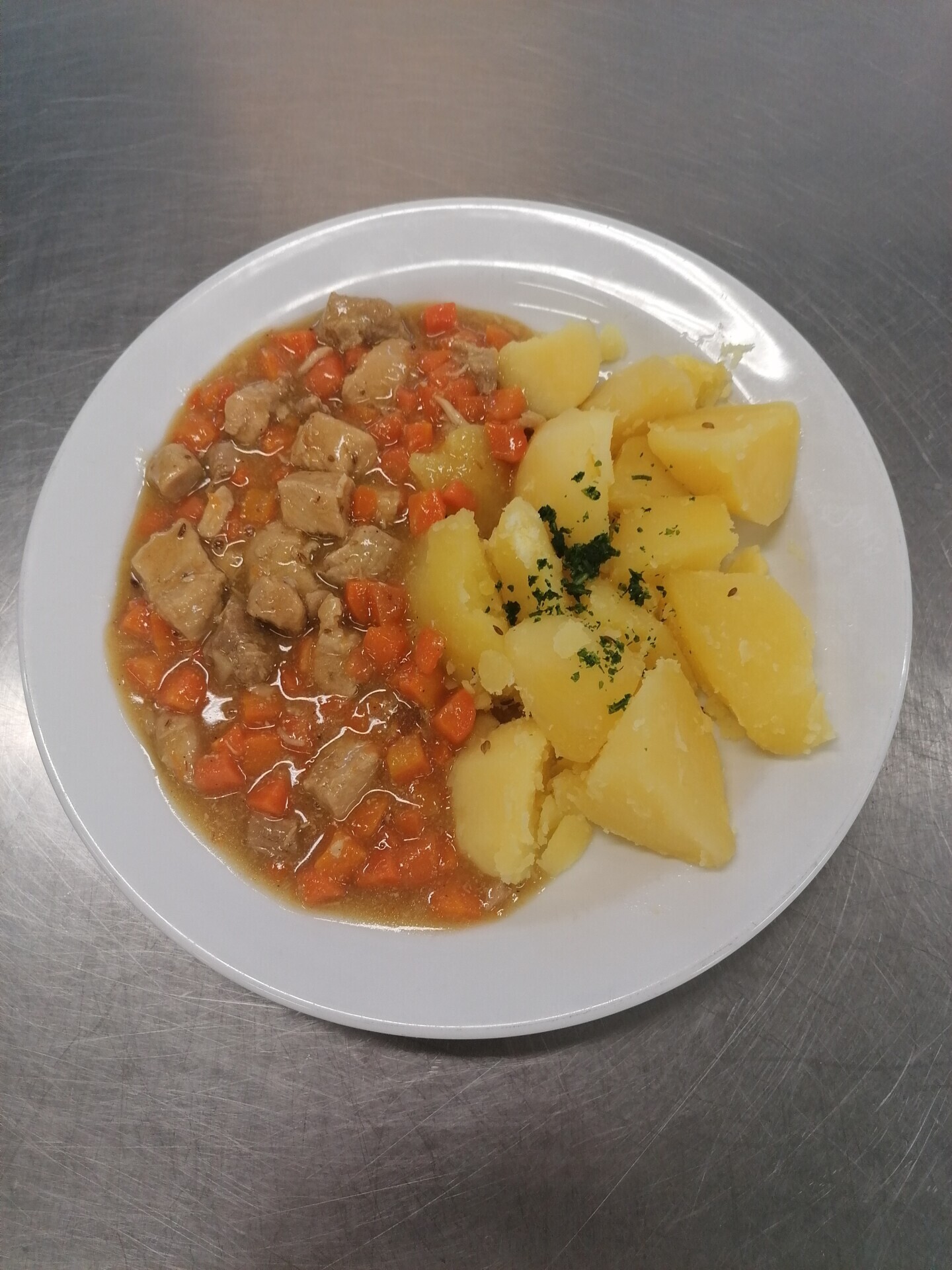 Vepřové dušené v mrkvi, vařený brambor