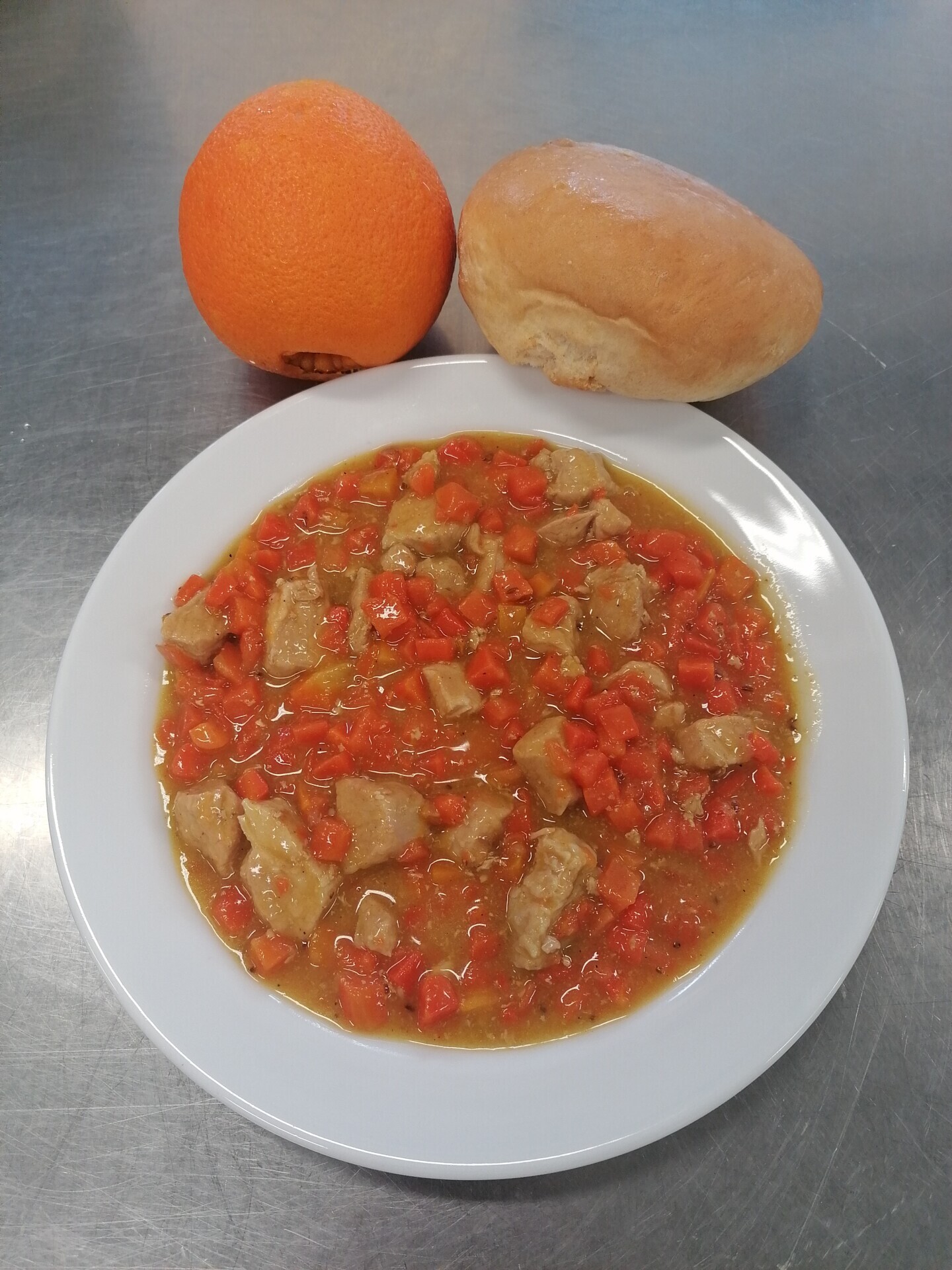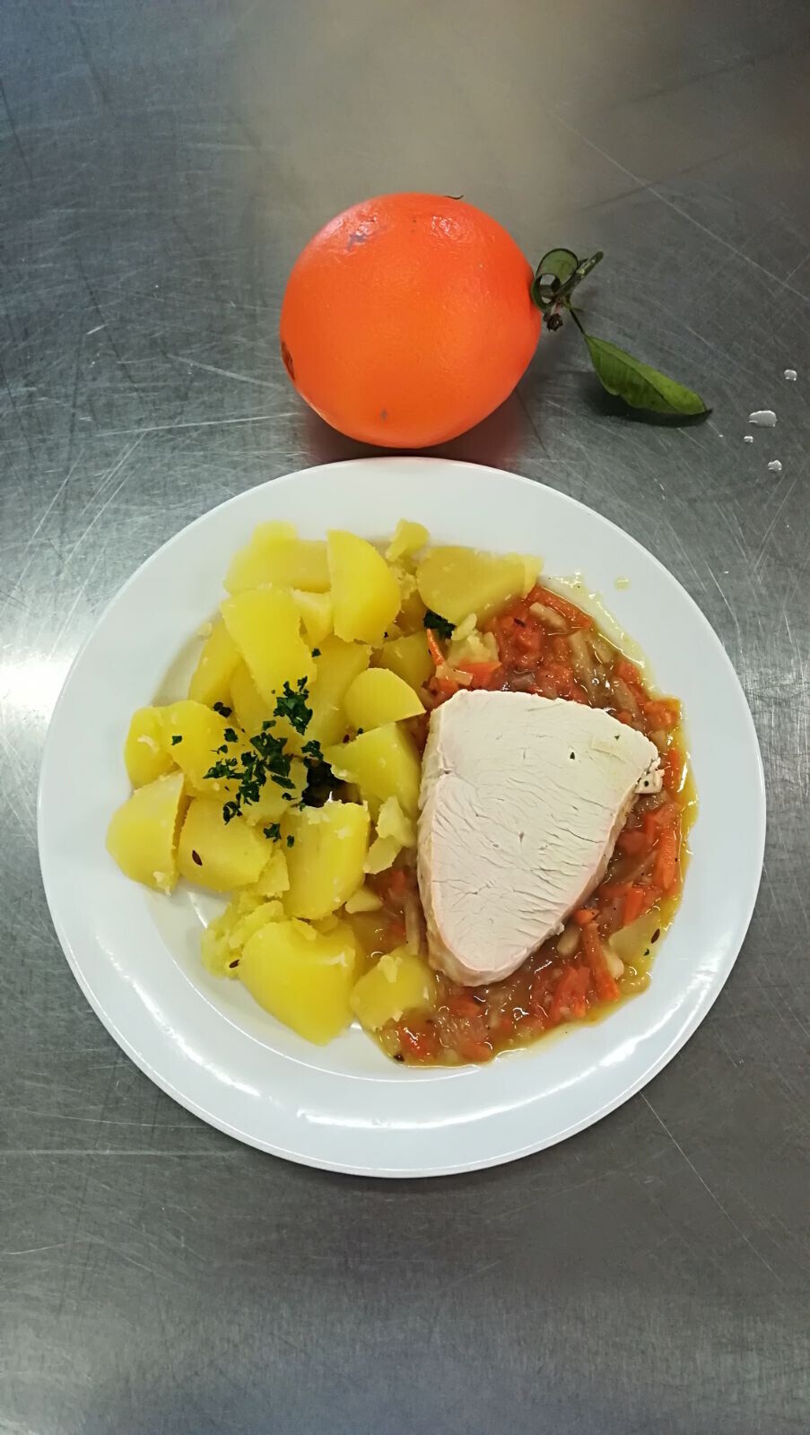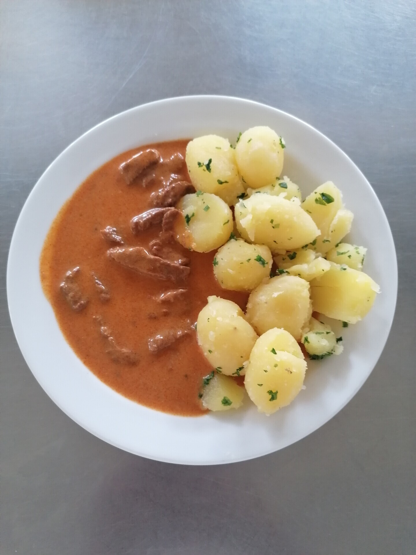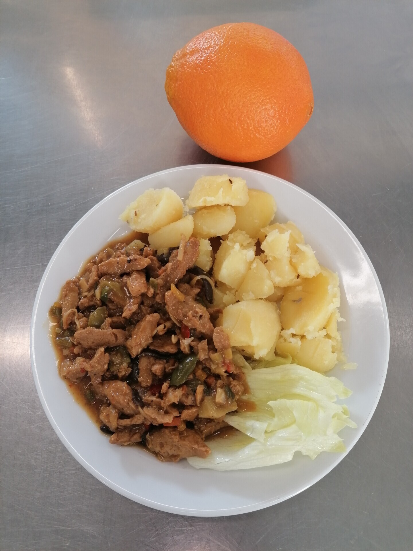Vepřové dušené v mrkvi, vařený brambor