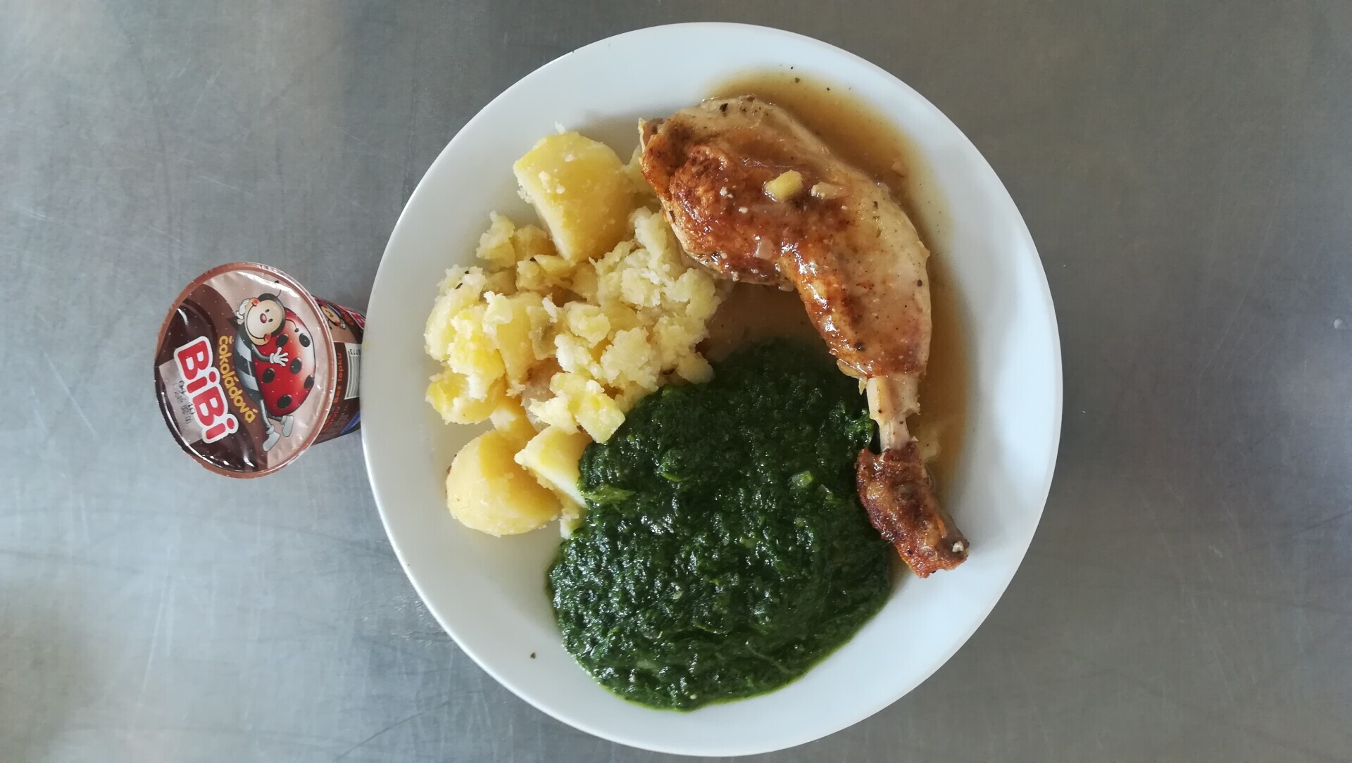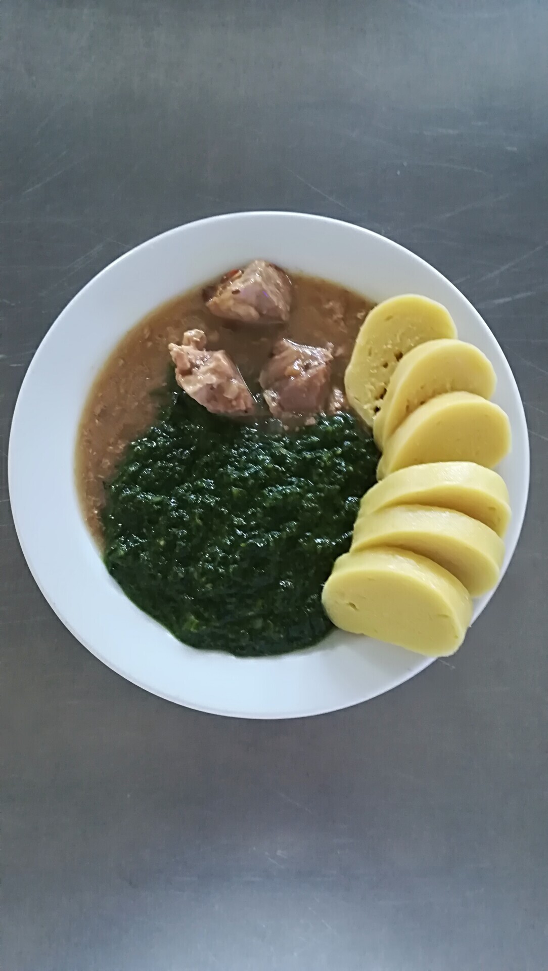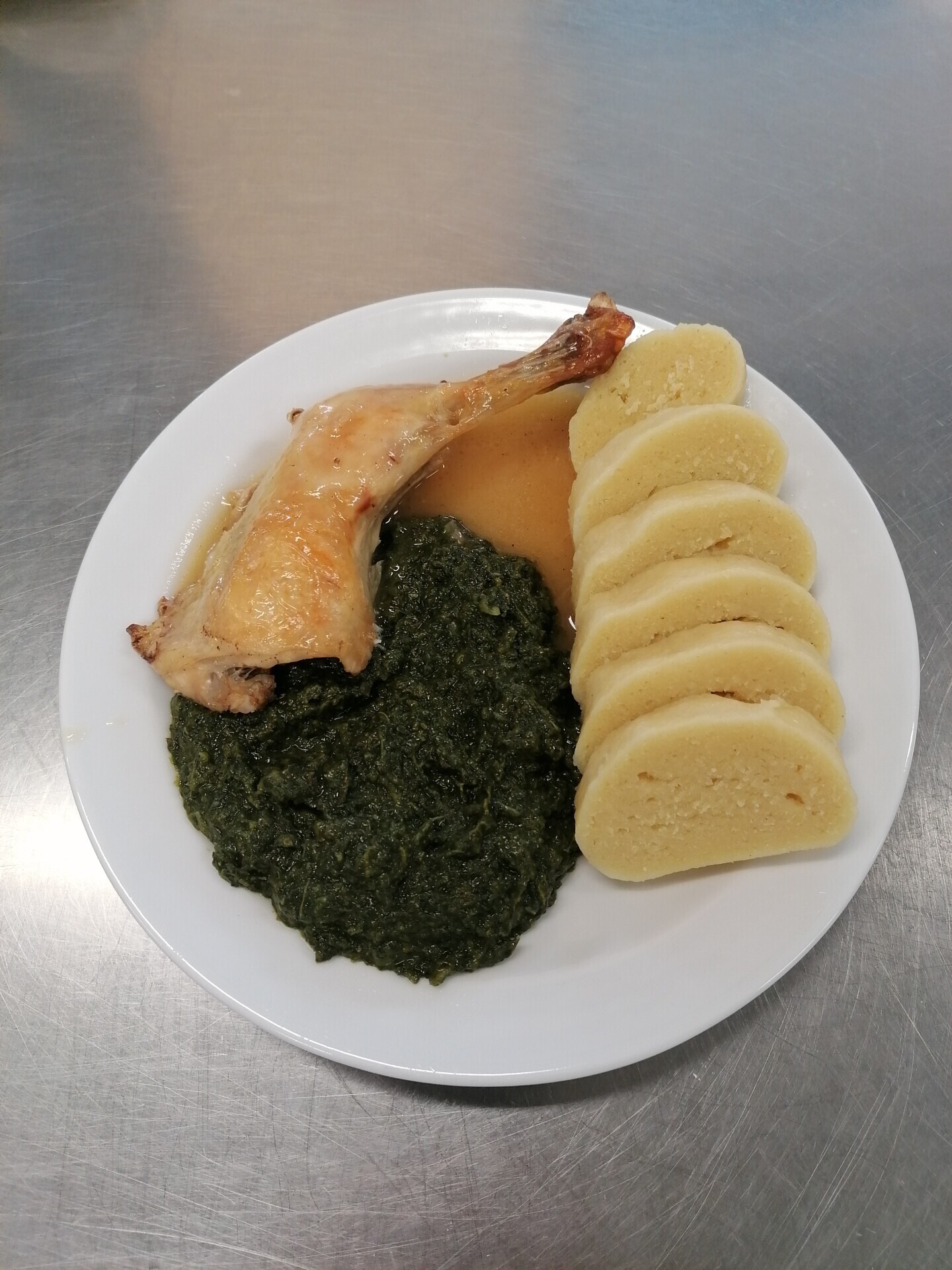 Vepřové výpečky, dušený špenát, bramborový knedlík