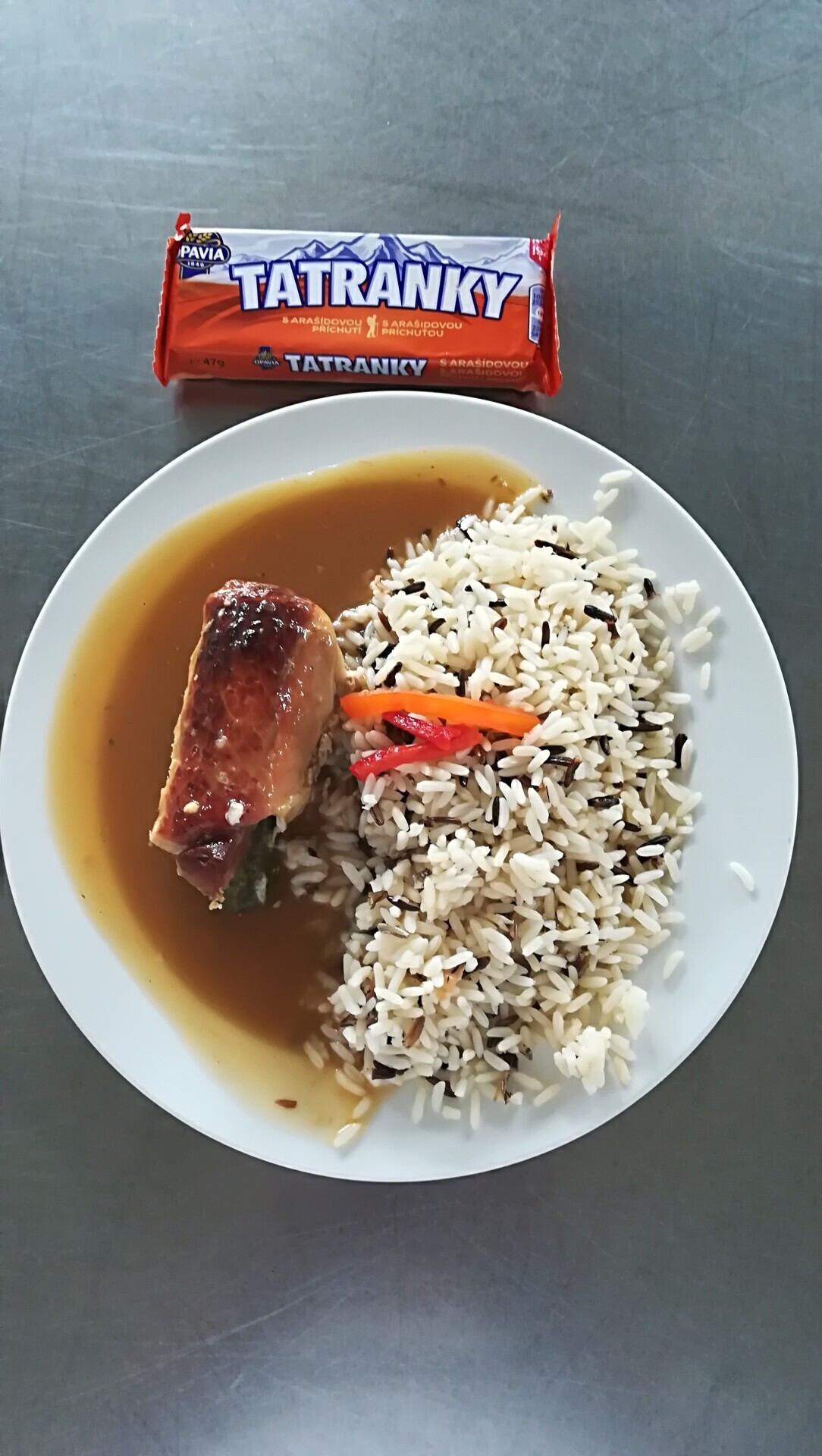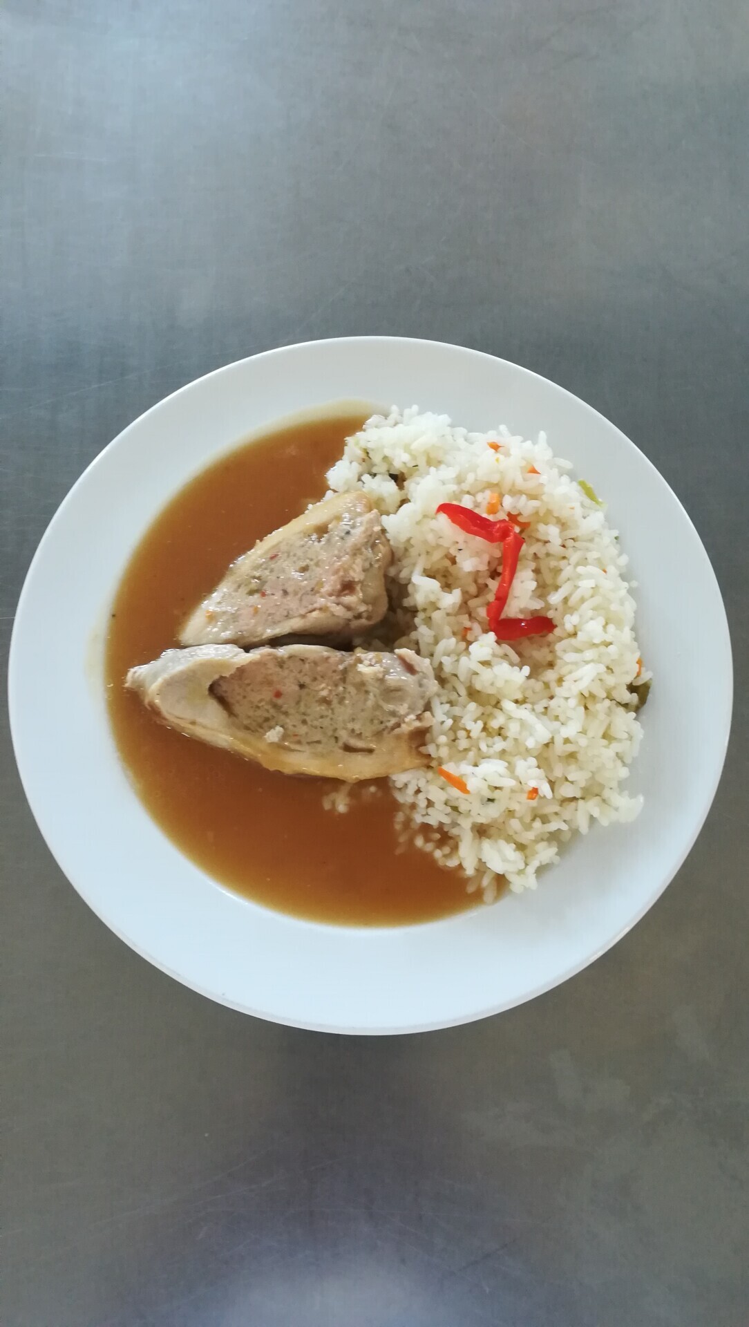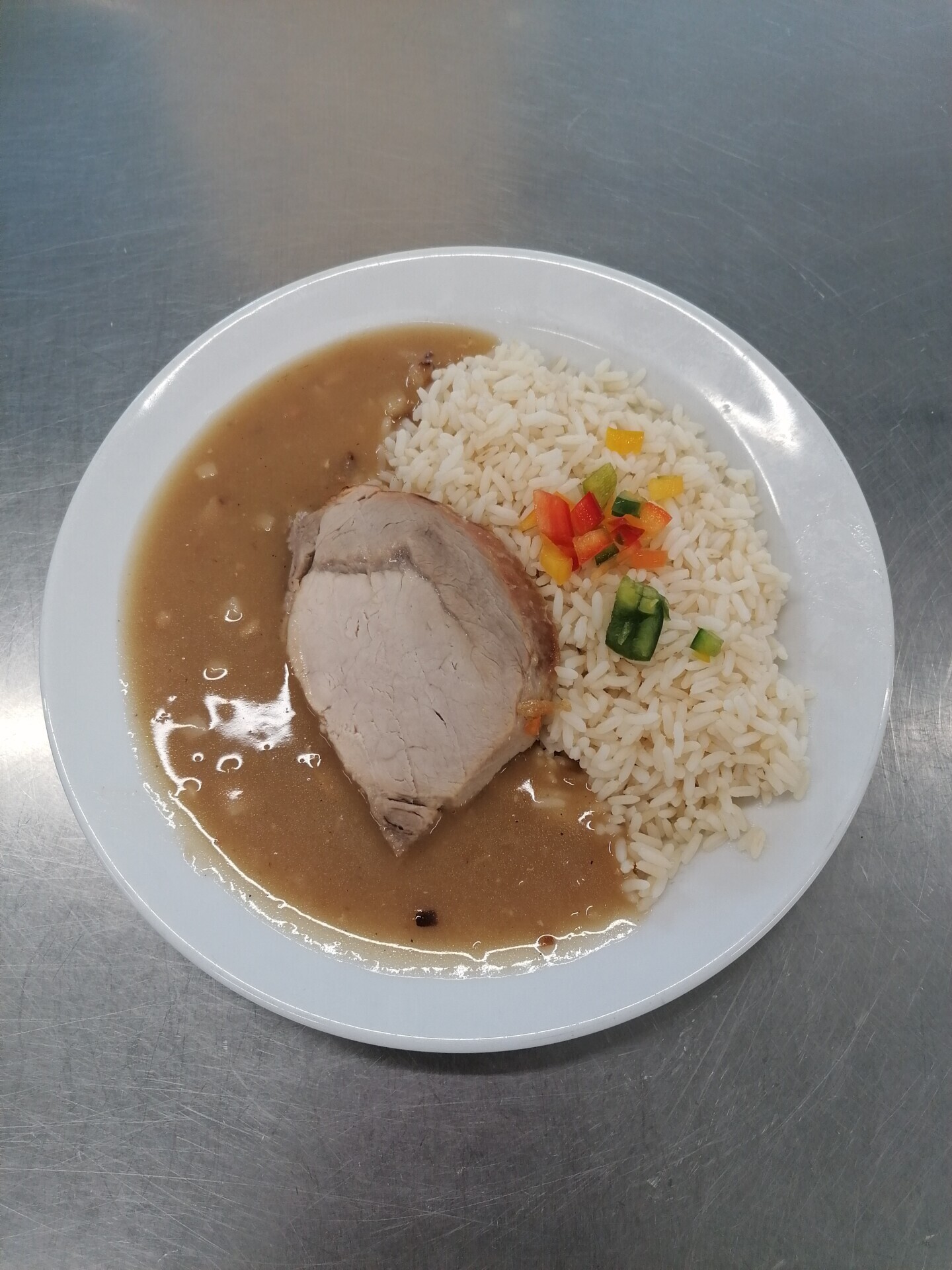 Vepřový závitek, dušená rýže