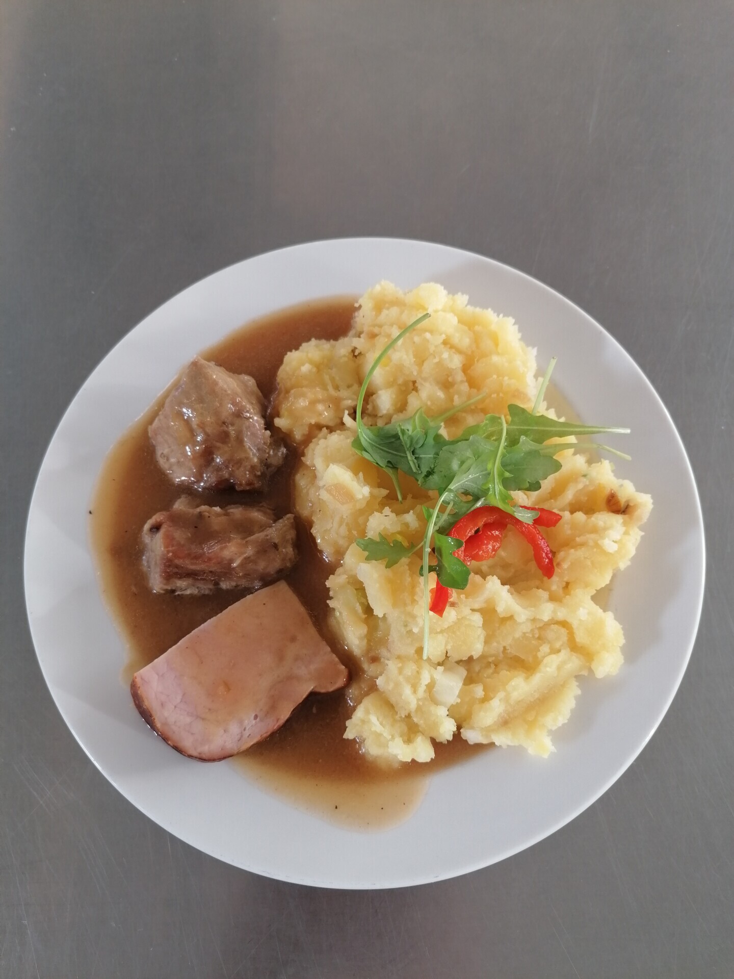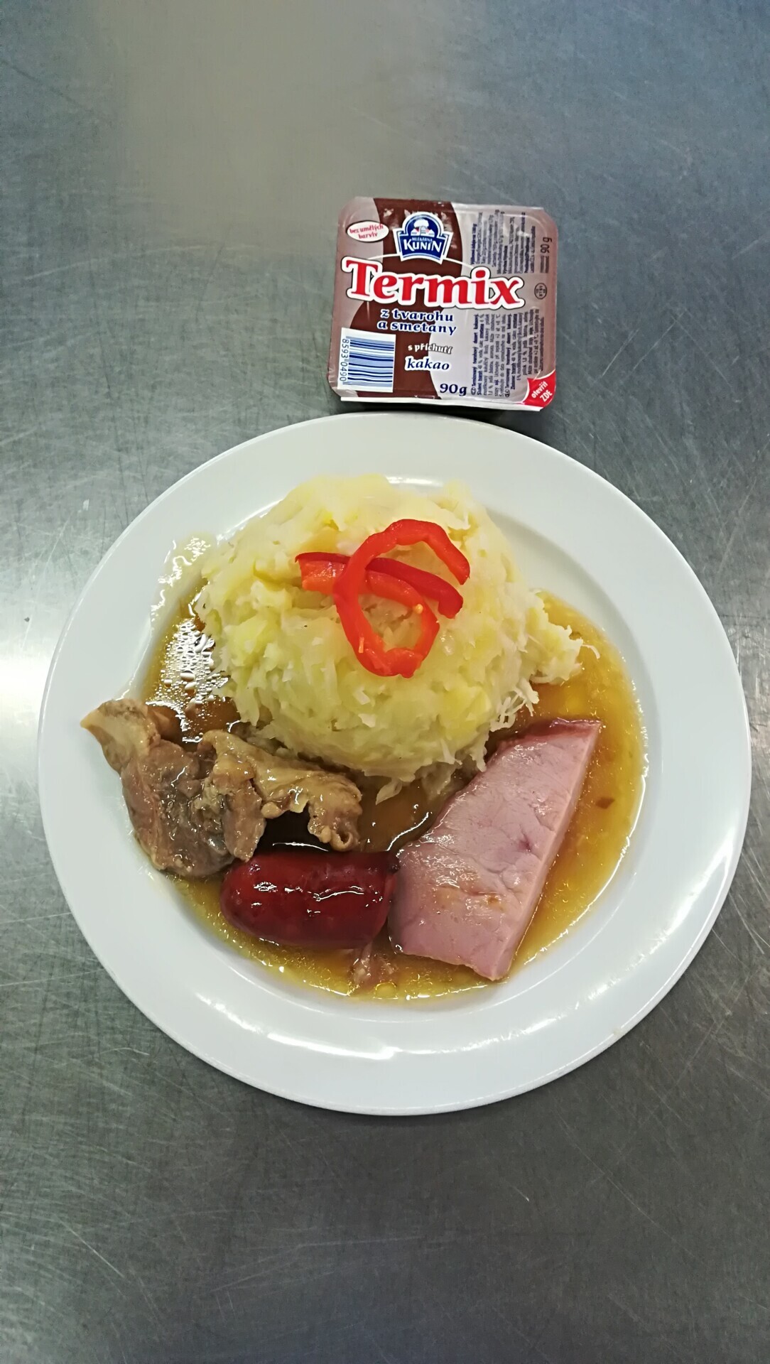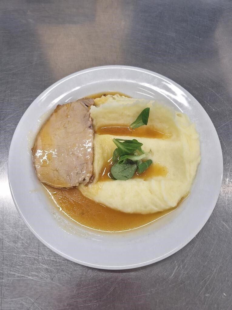 Vepřové maso, uzená kýta, šťouchaný brambor