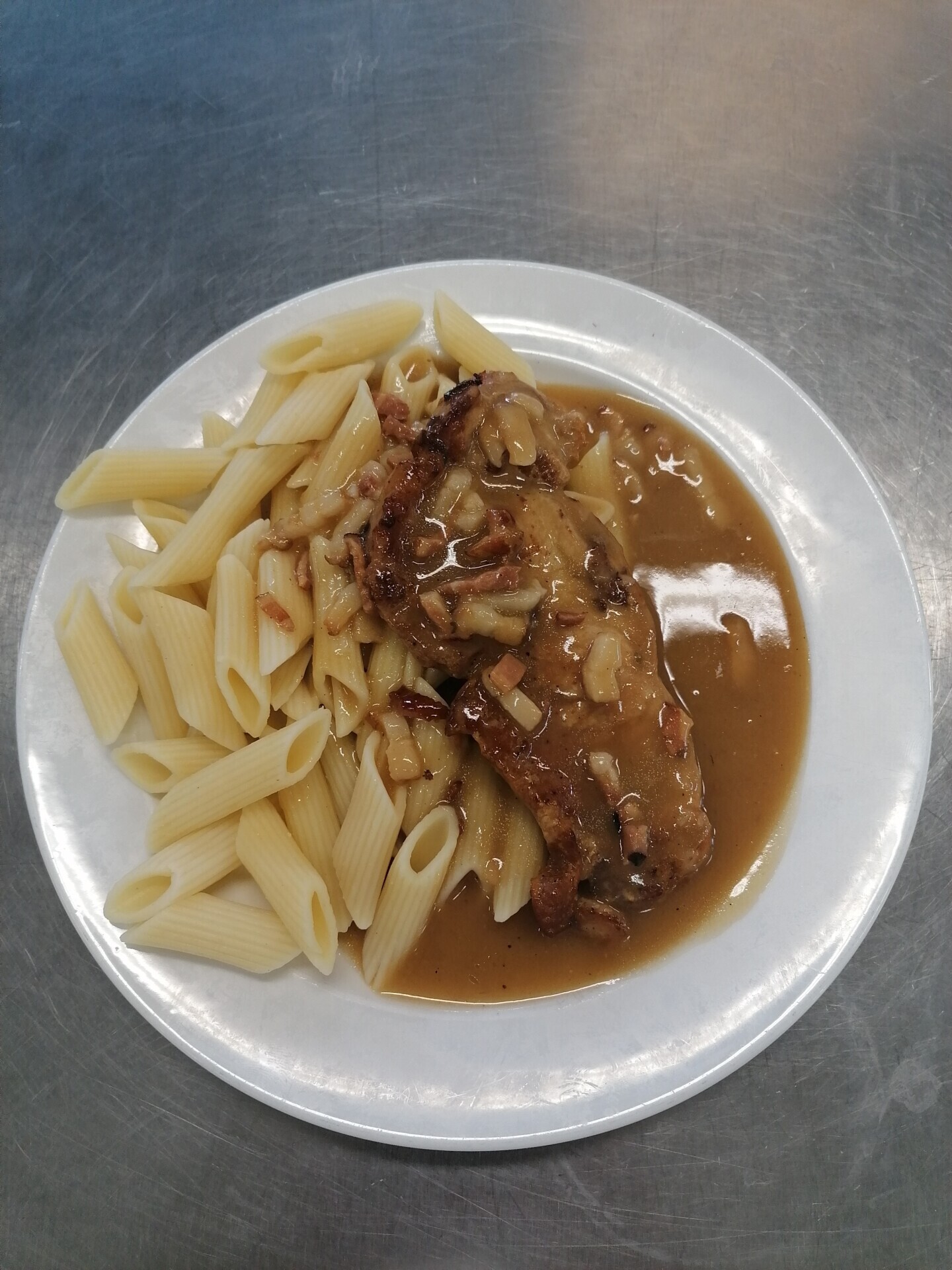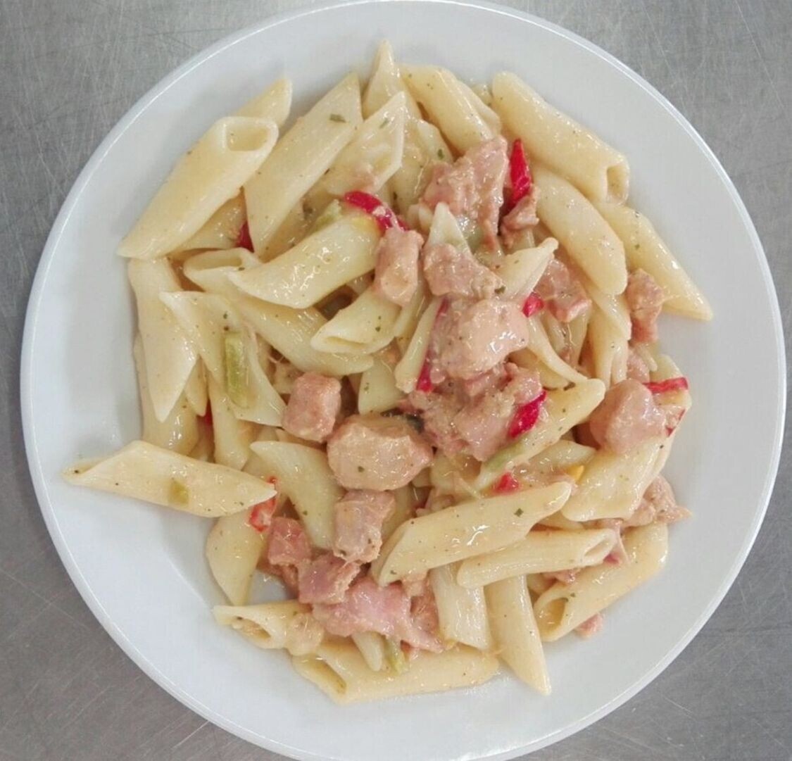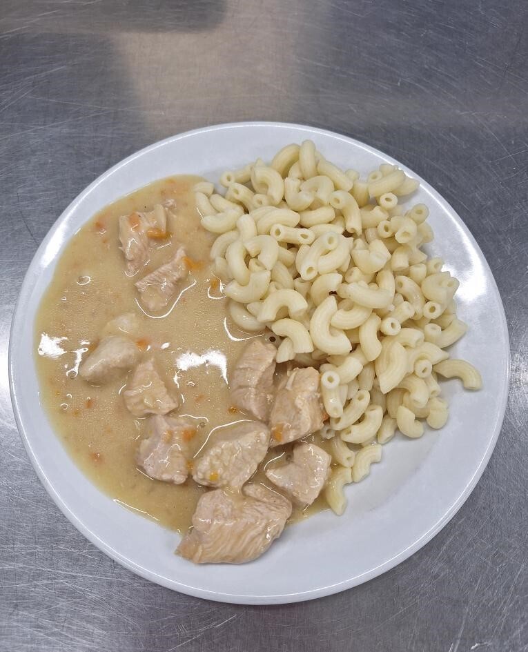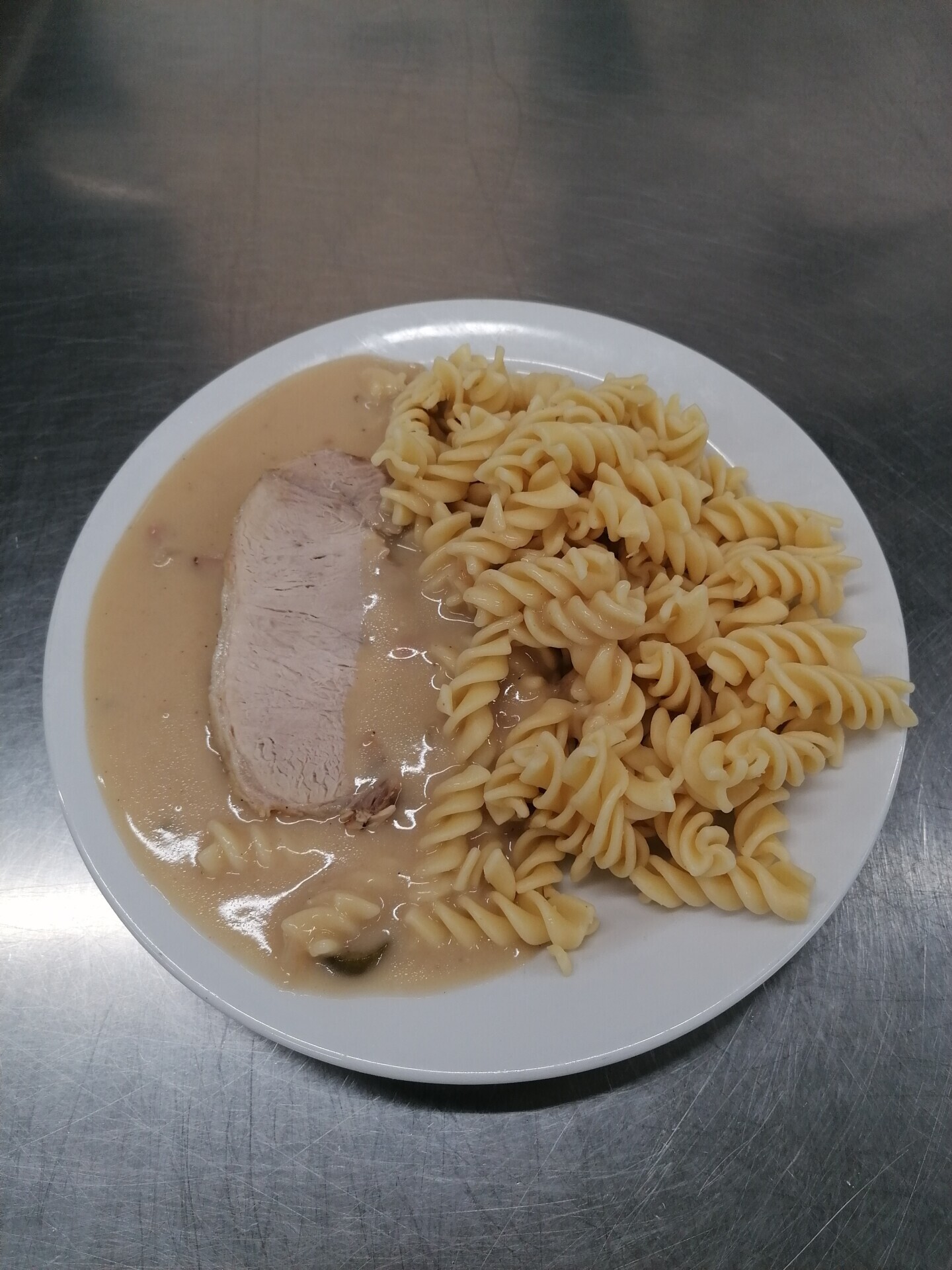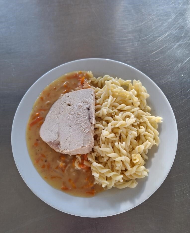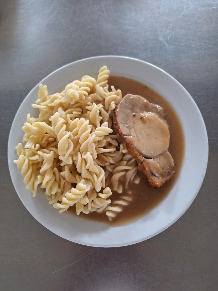 Vepřová pečeně ve smetanové znojemské omáčce, těstoviny