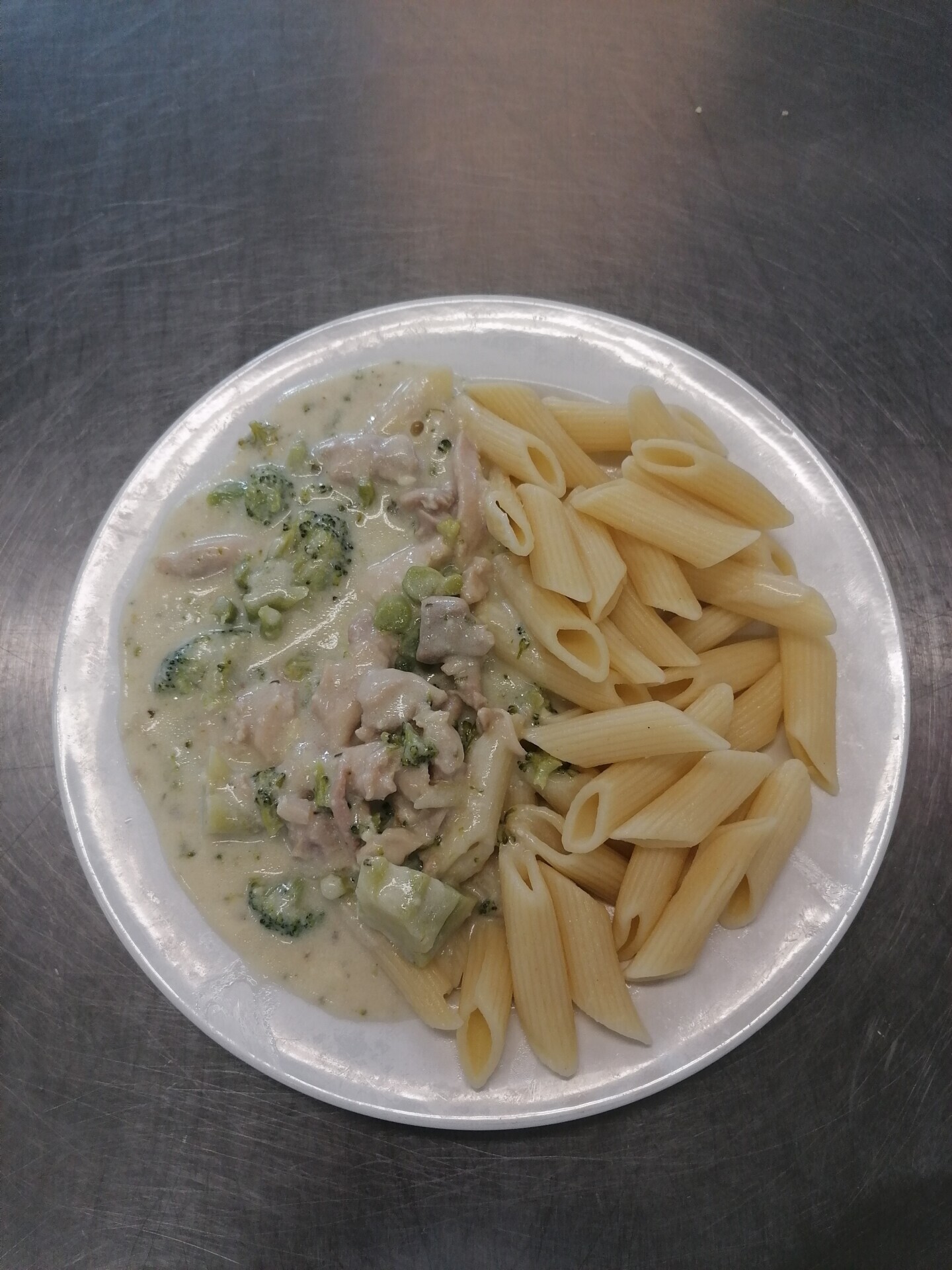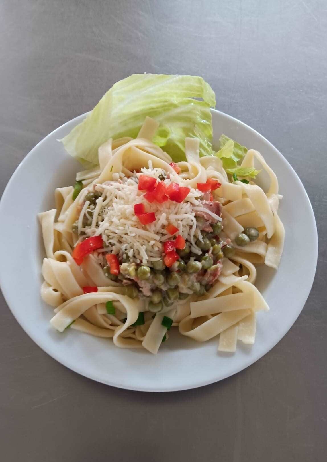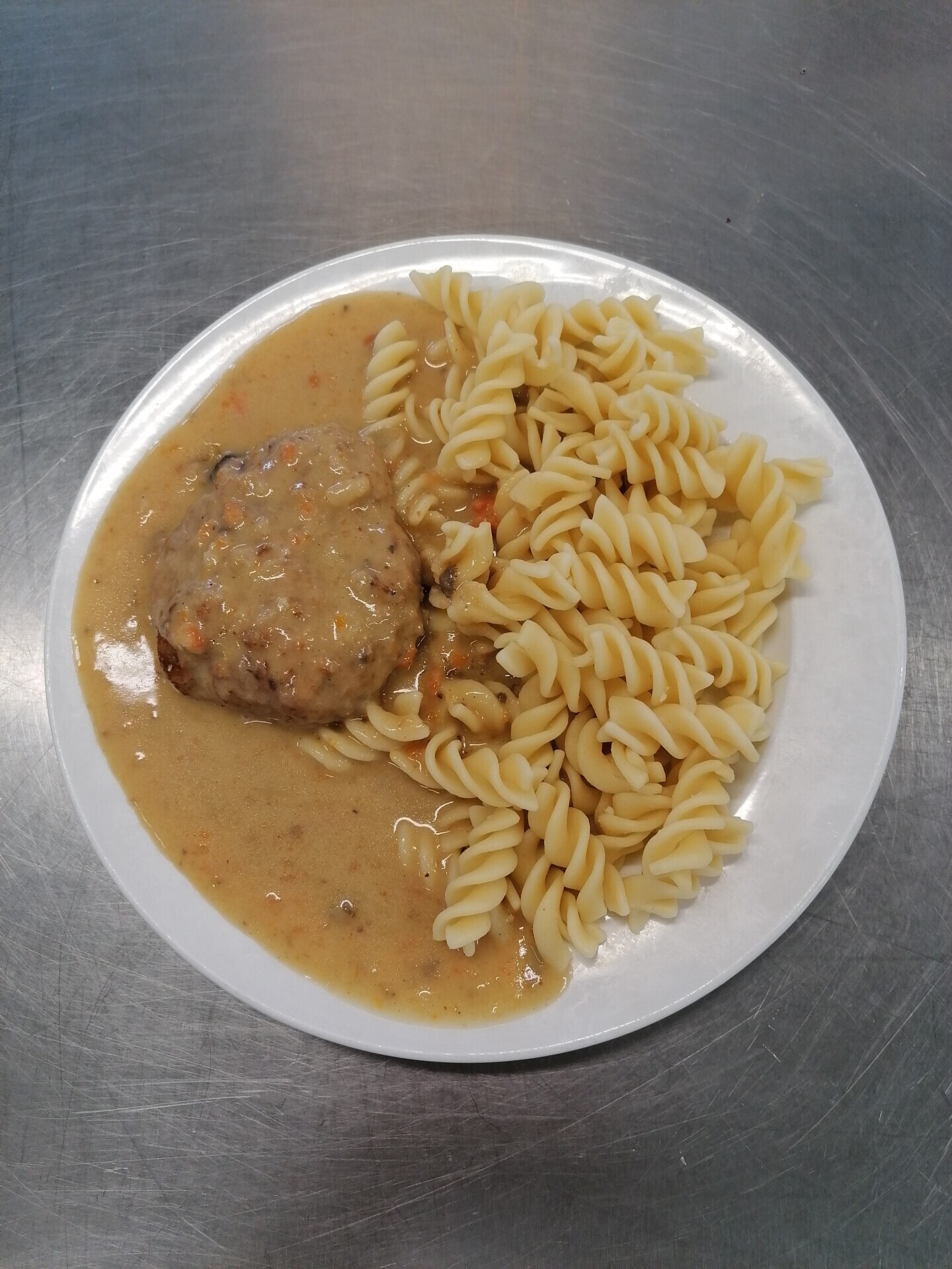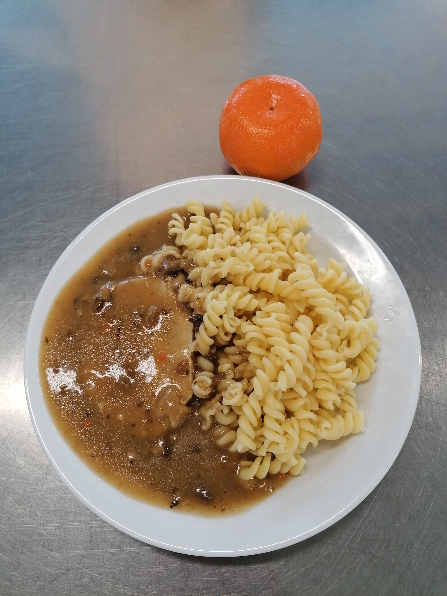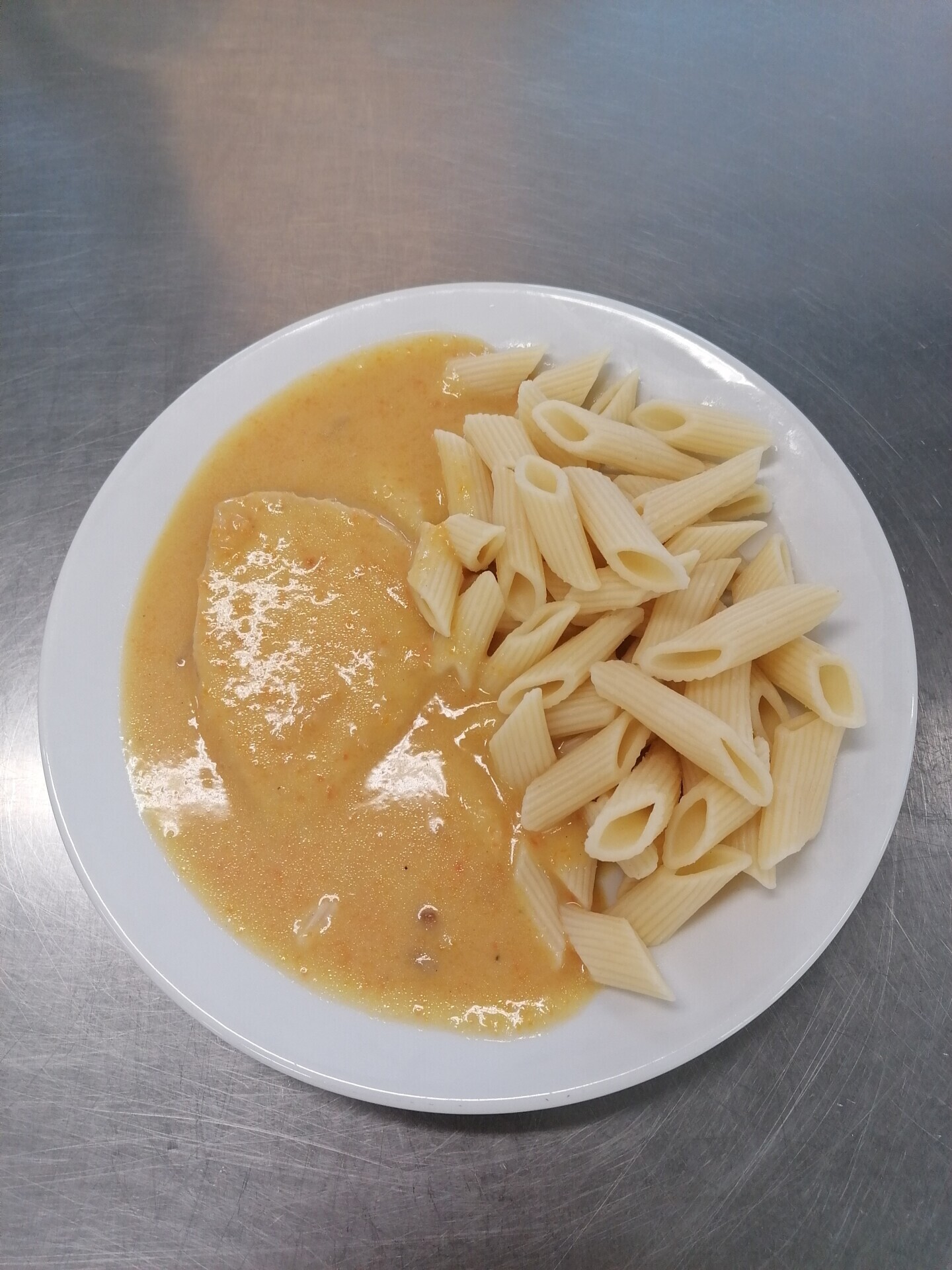 Vepřová pečeně ve smetanové znojemské omáčce, těstoviny