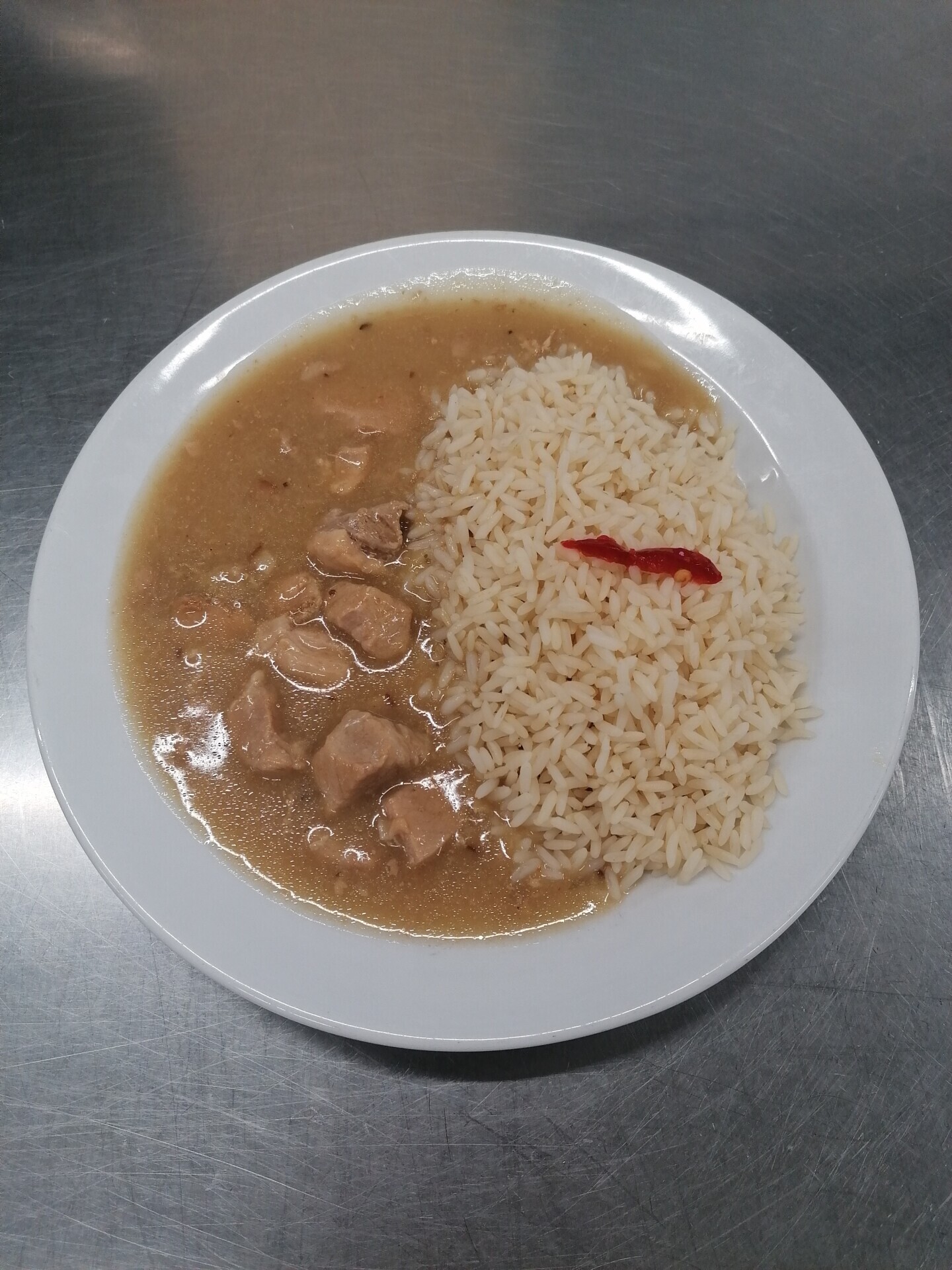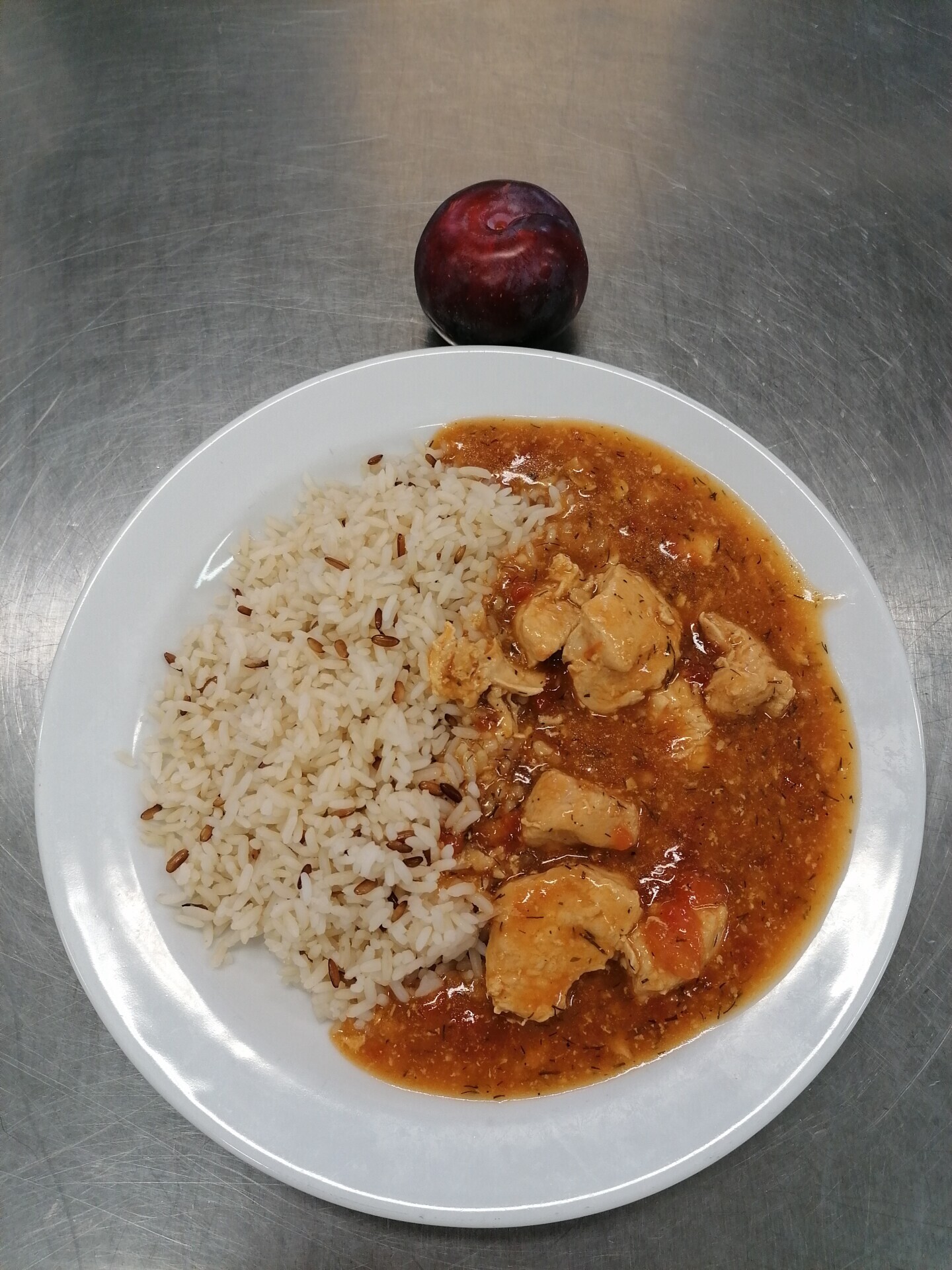 Vepřové na kmíně, dušená rýže