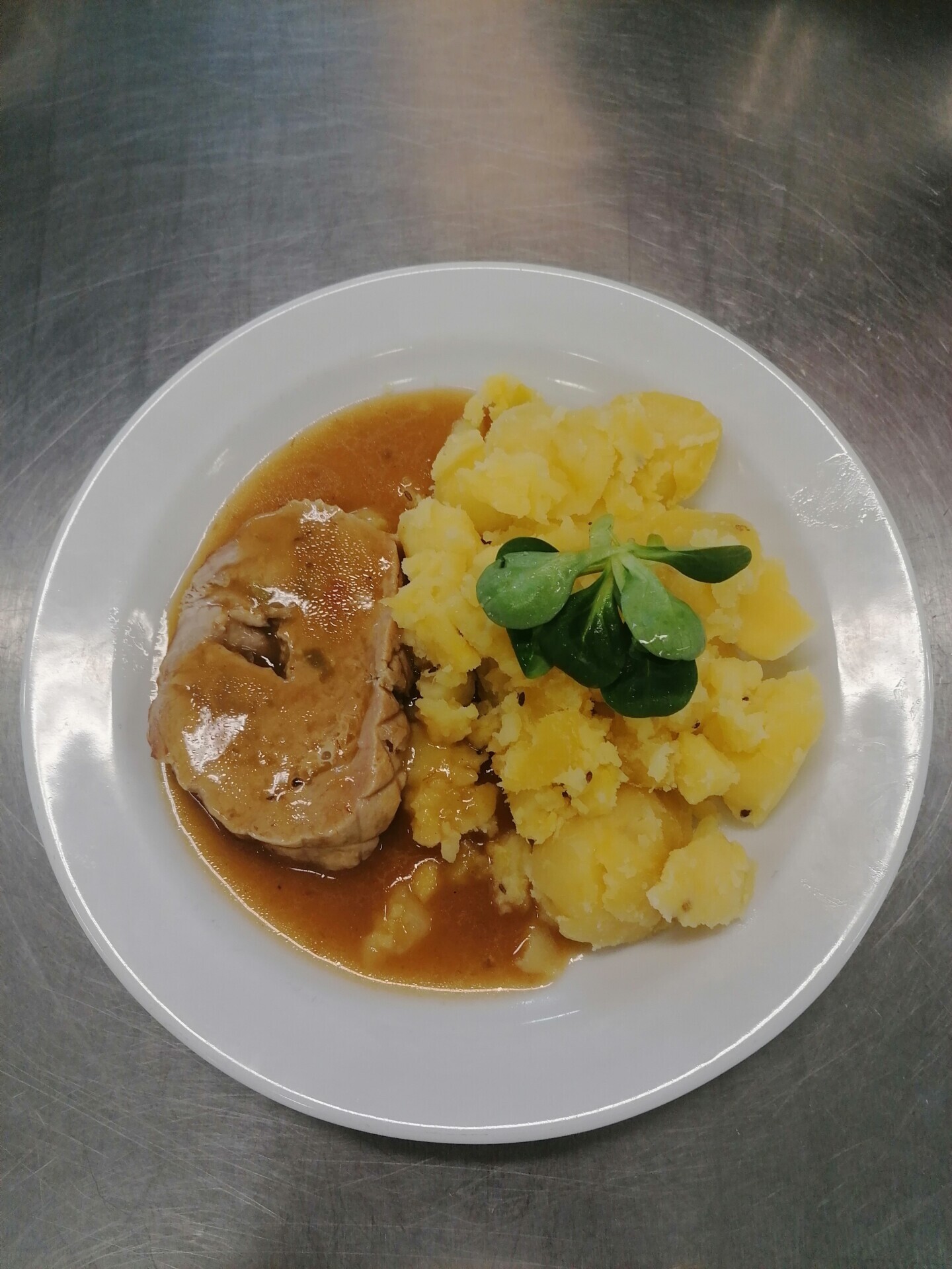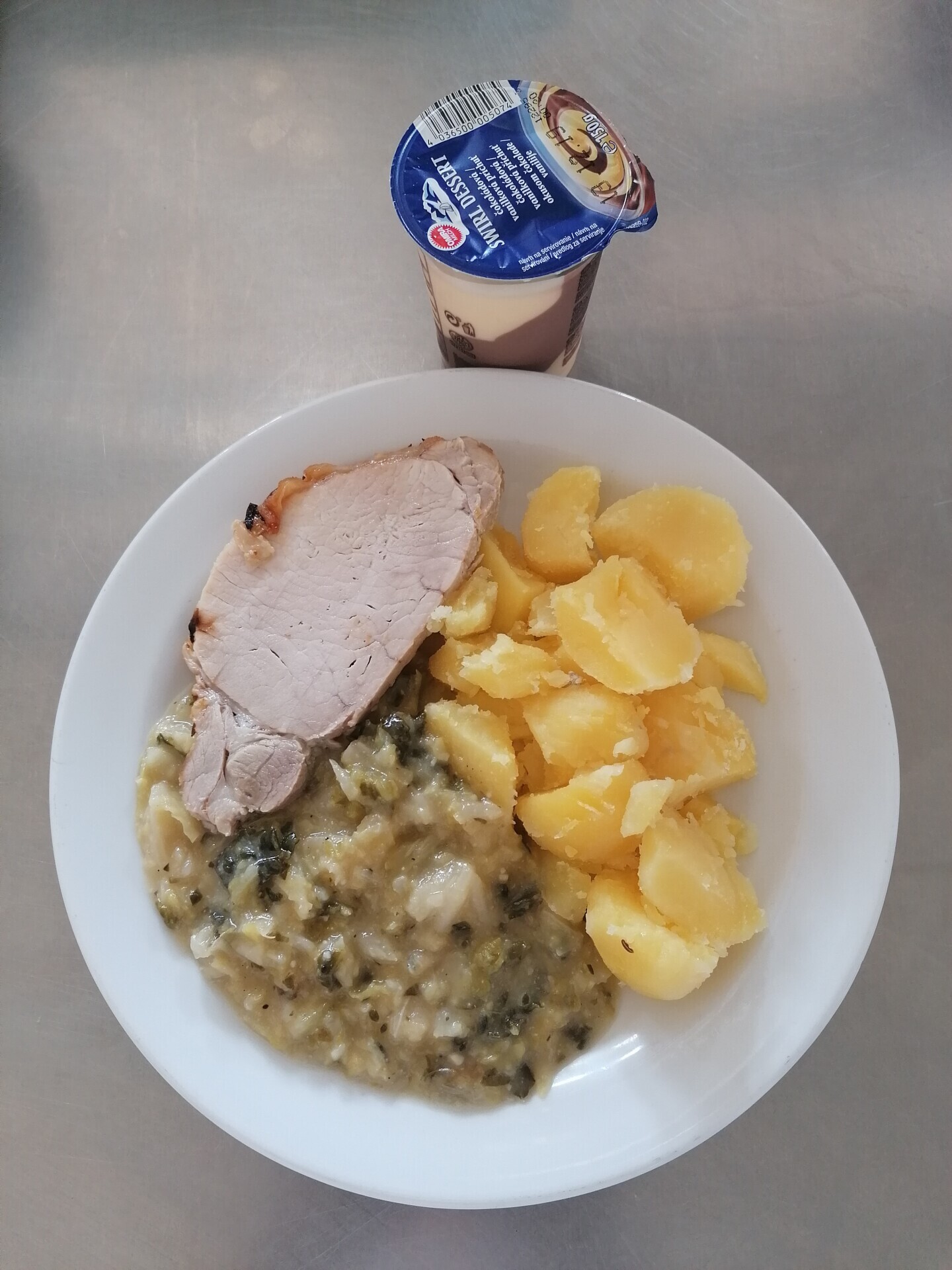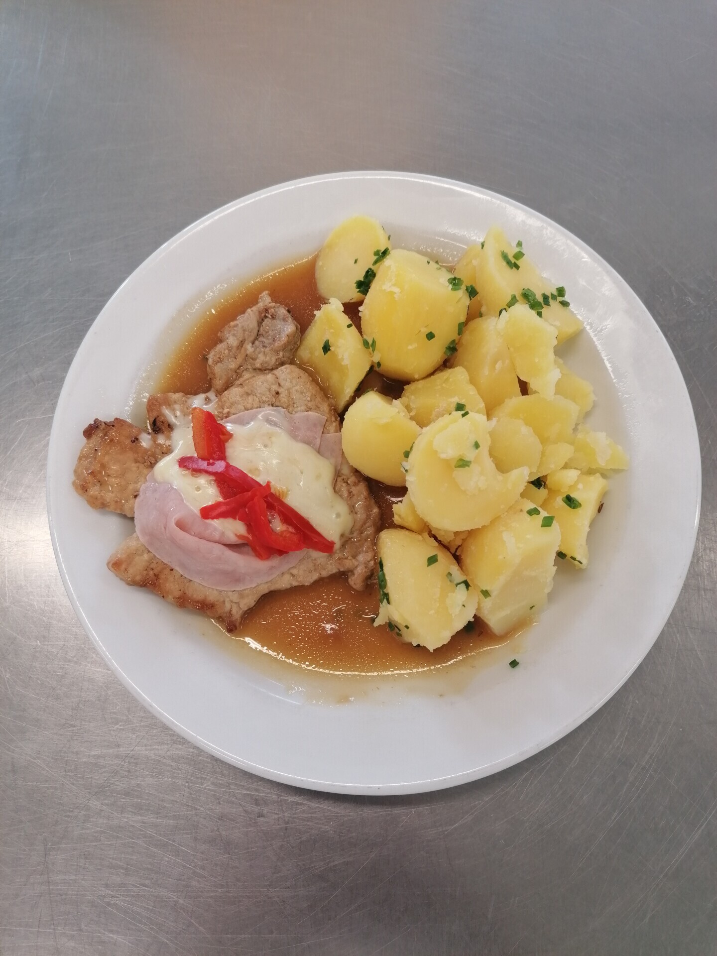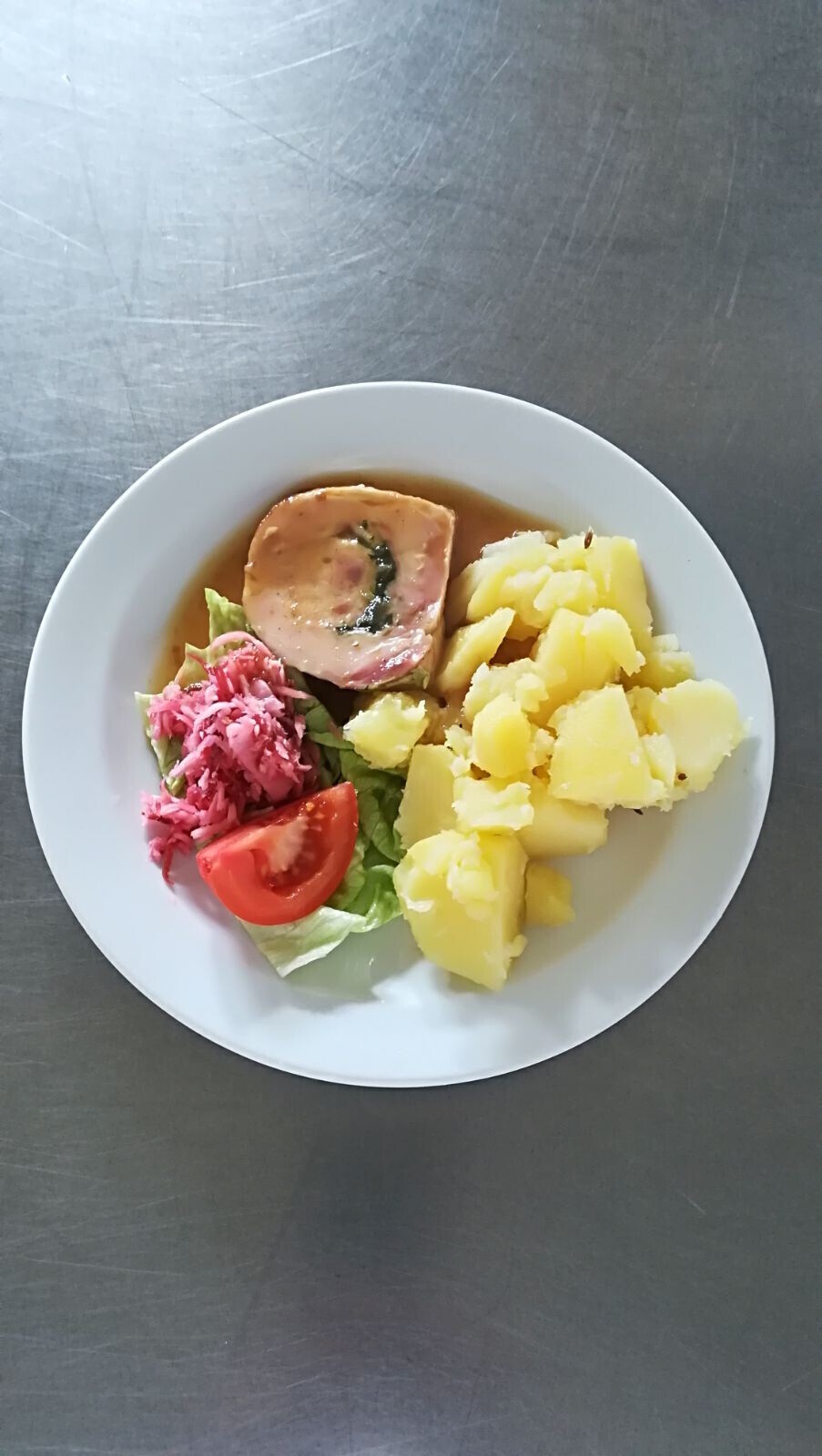 Vepřová roláda, vařený brambor