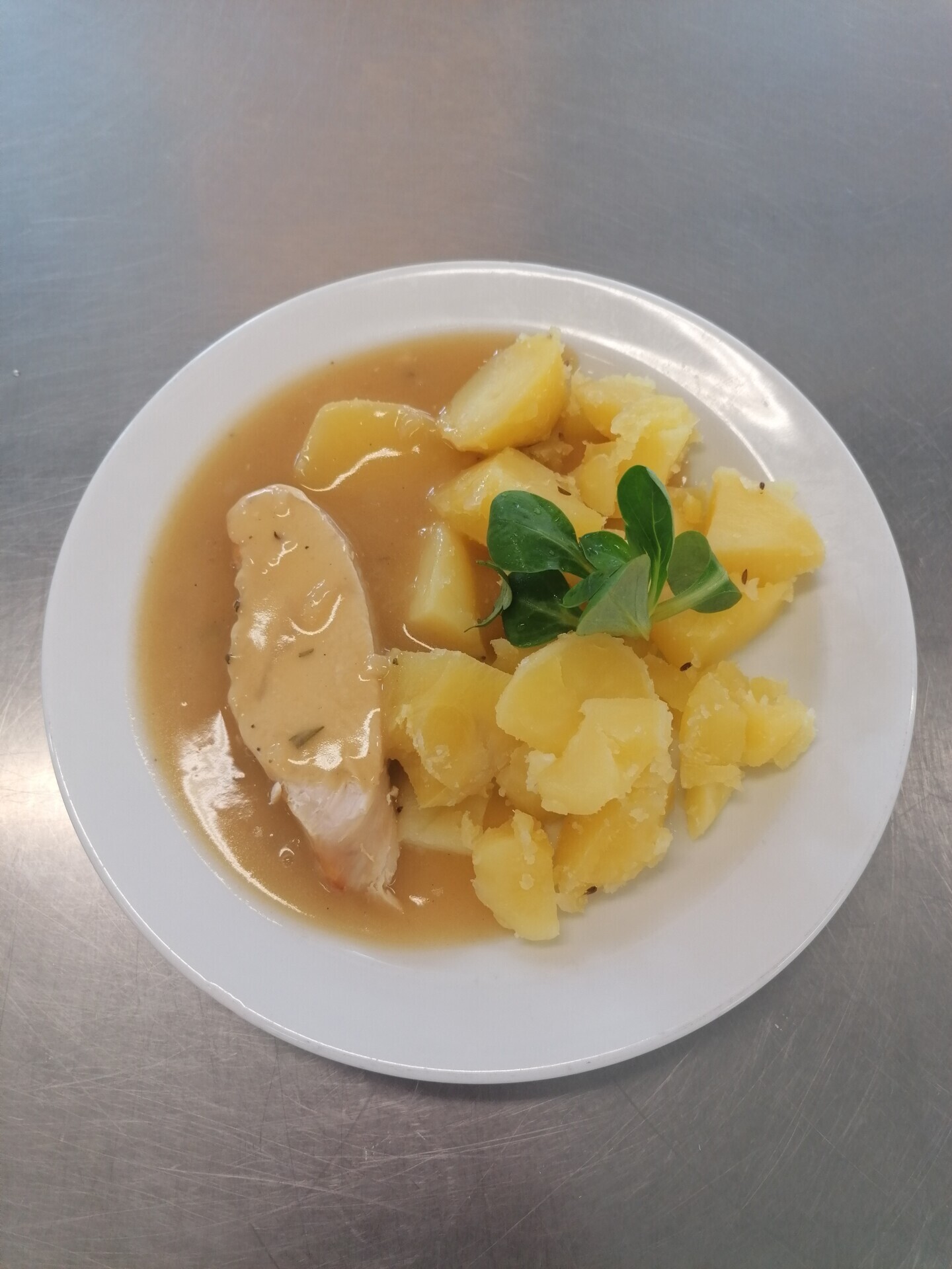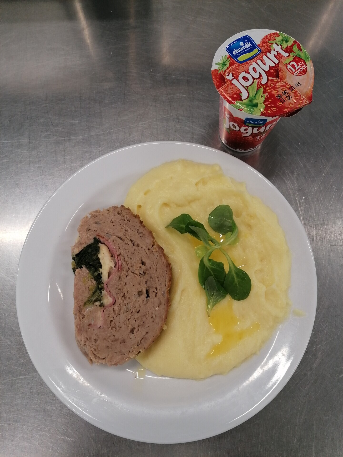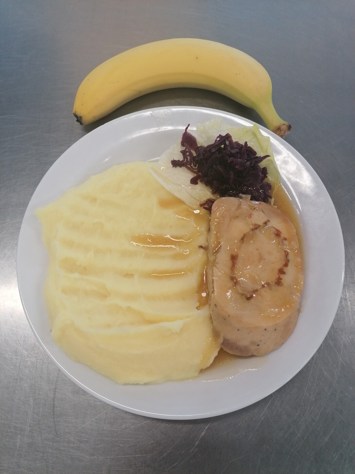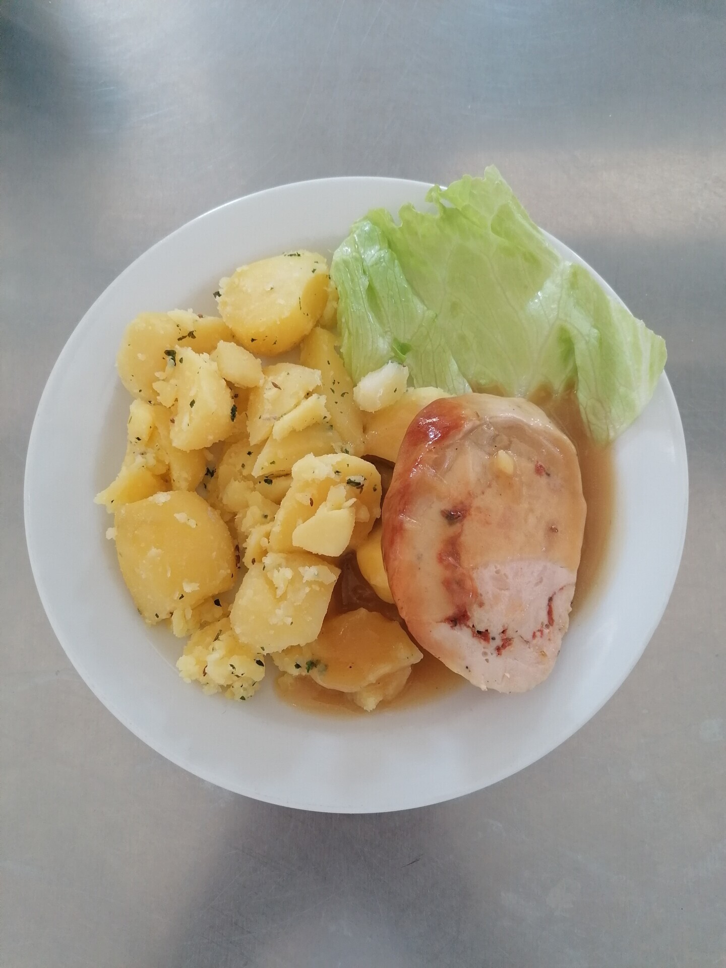 Vepřová roláda, vařený brambor