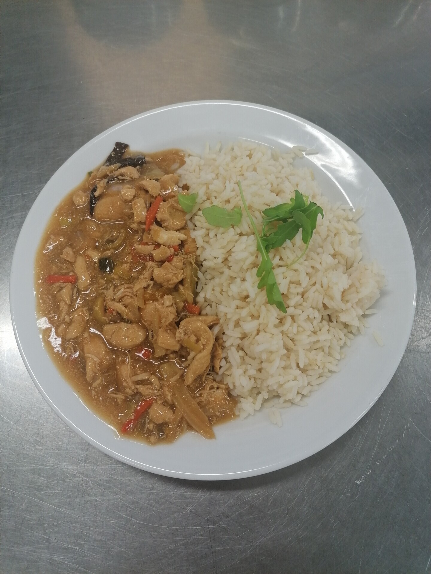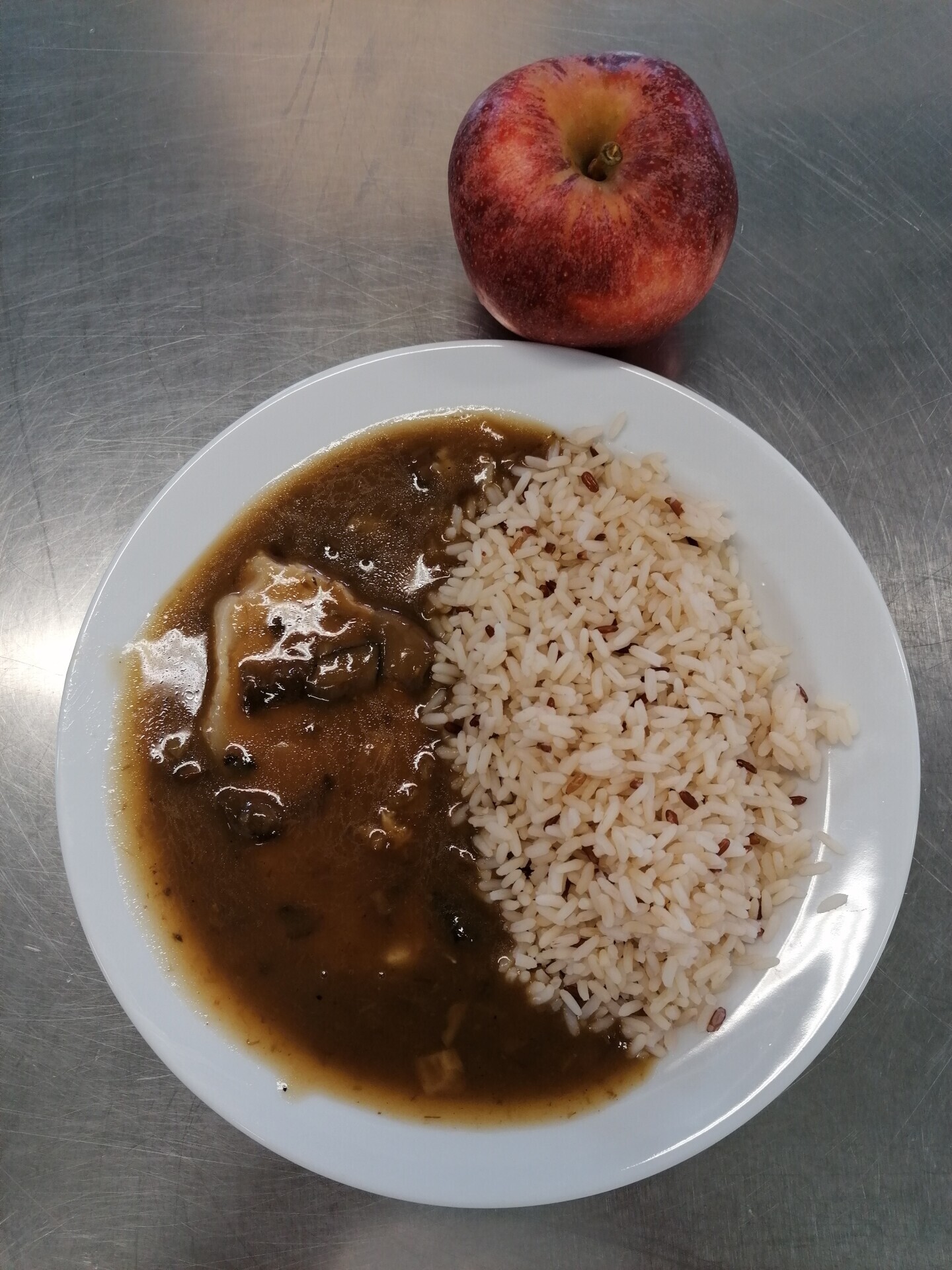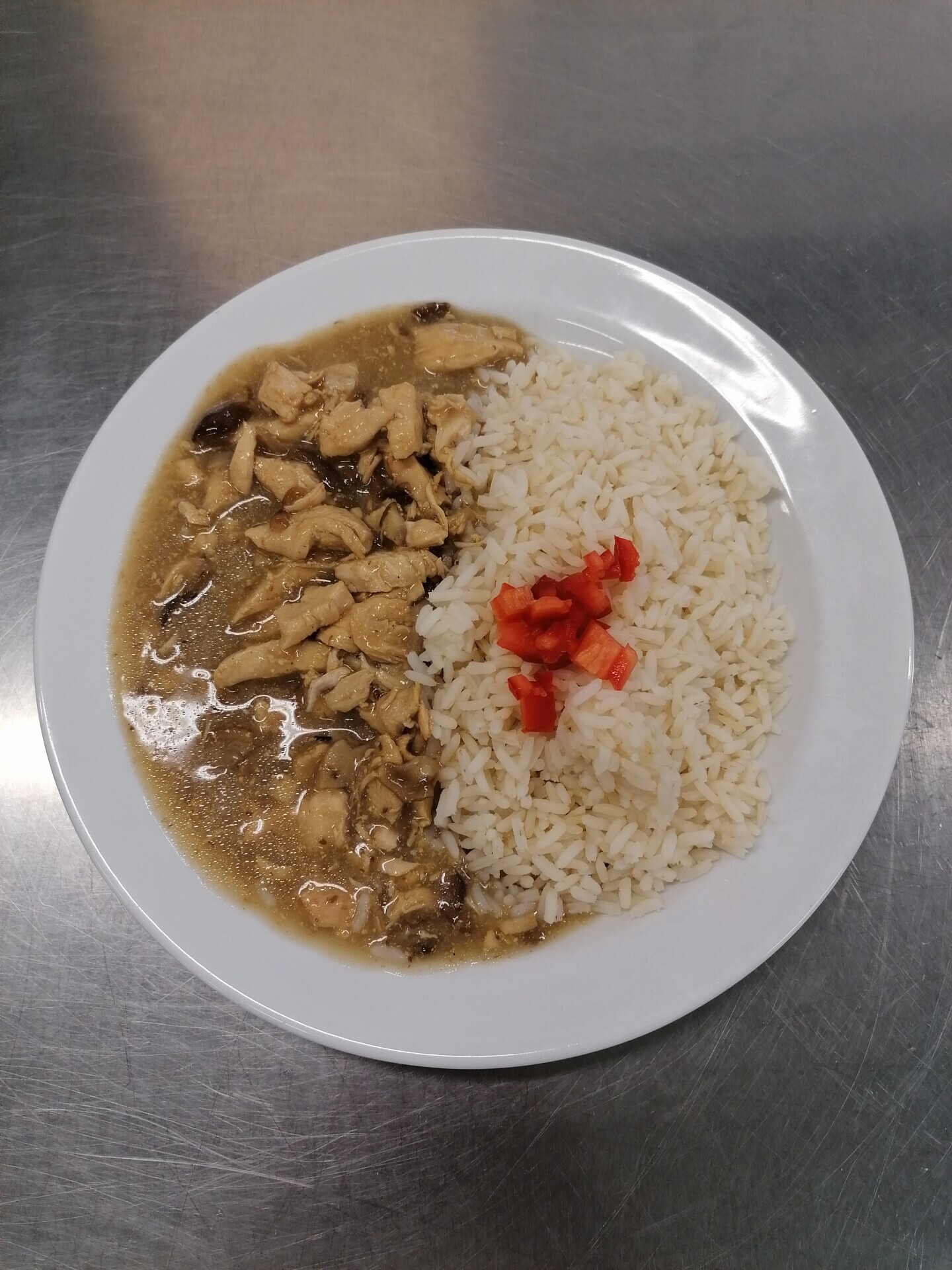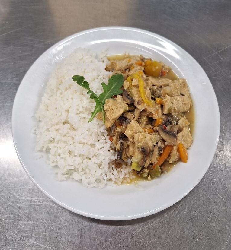 Vepřové na houbách, dušená rýže