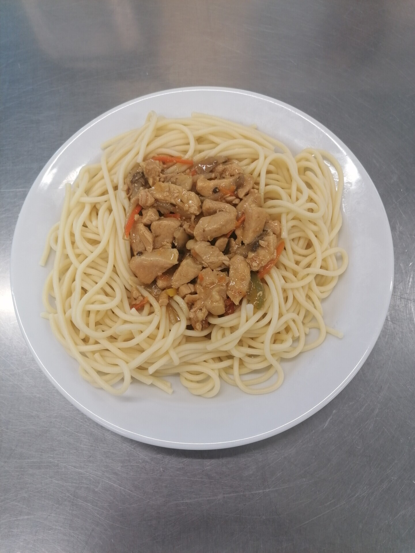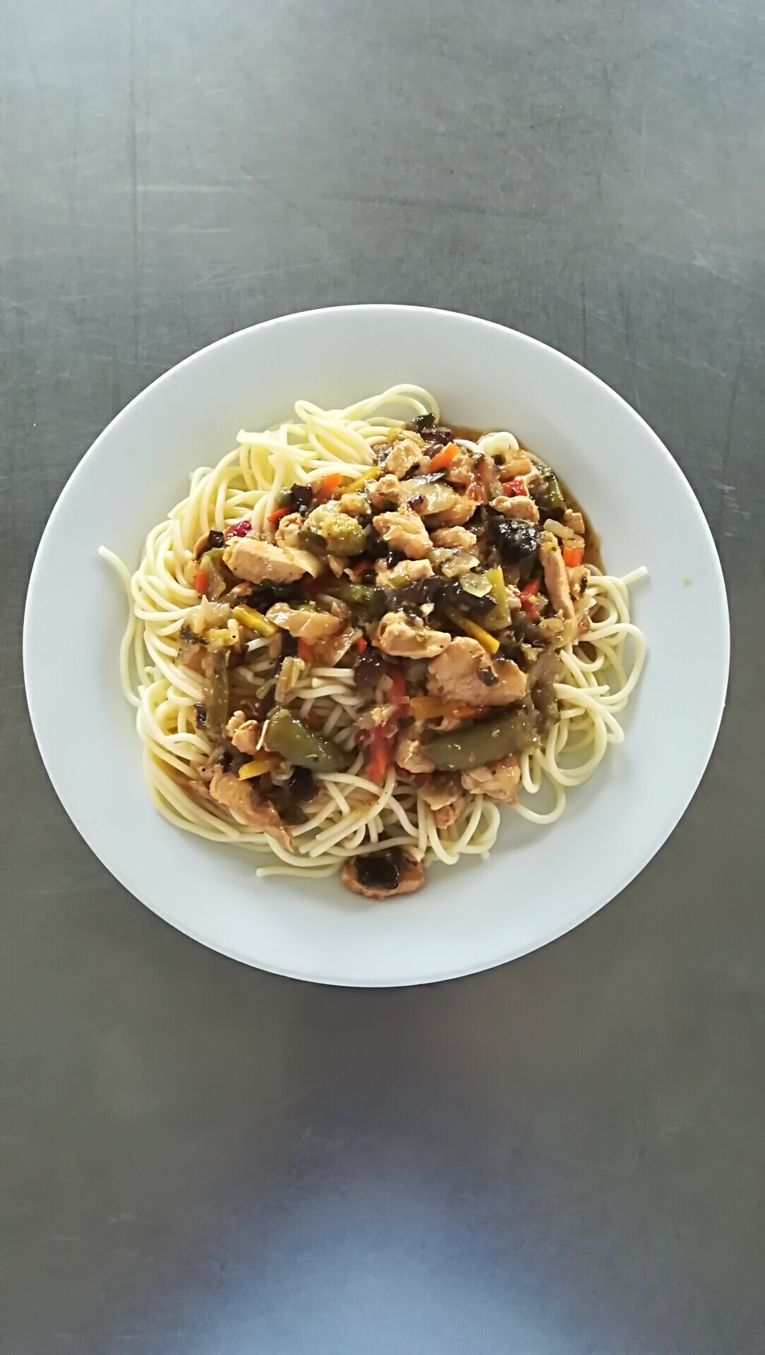 Vepřová směs se zeleninou, špagety