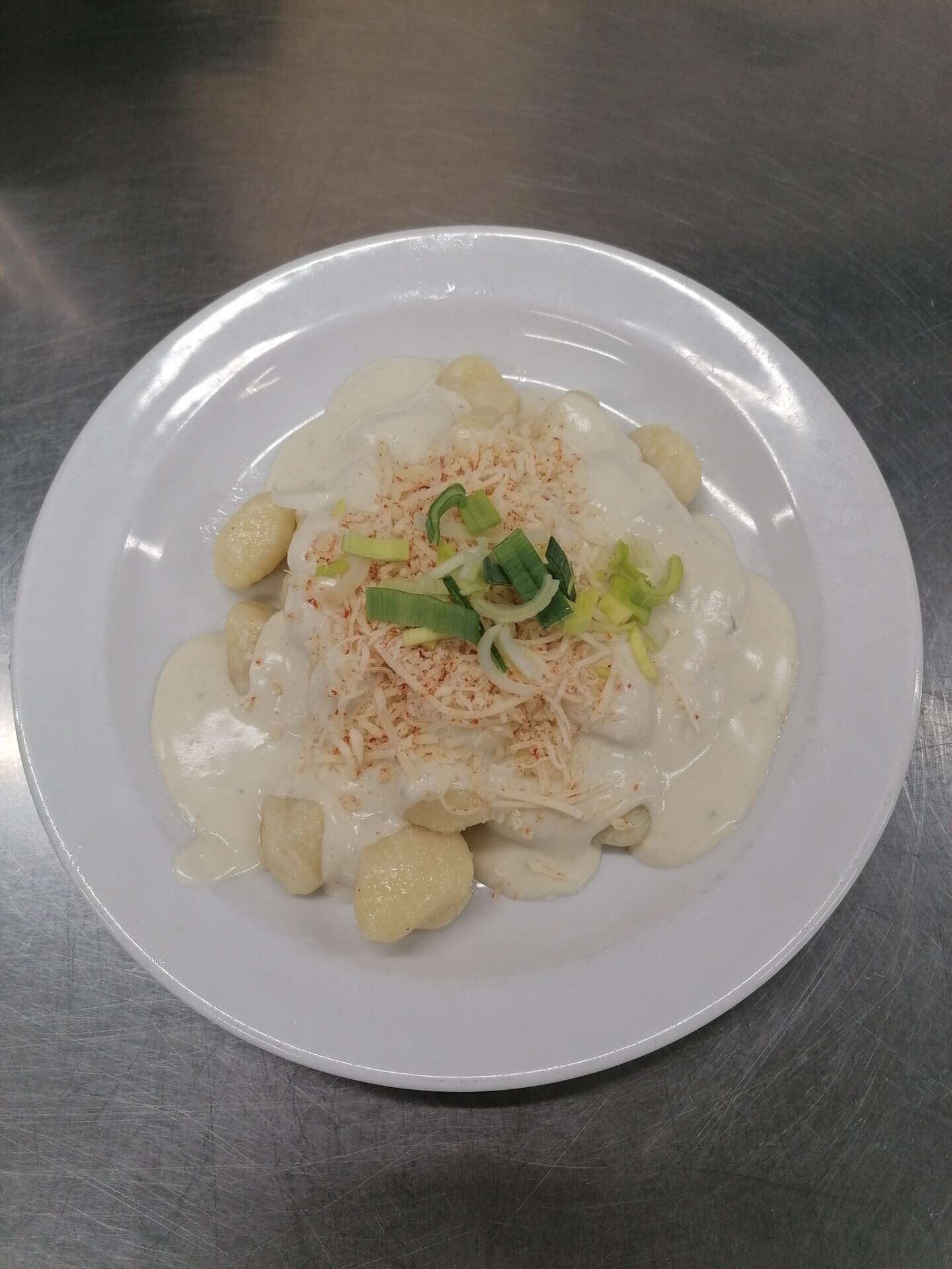 Bramborové noky, sýrová omáčka s nivou