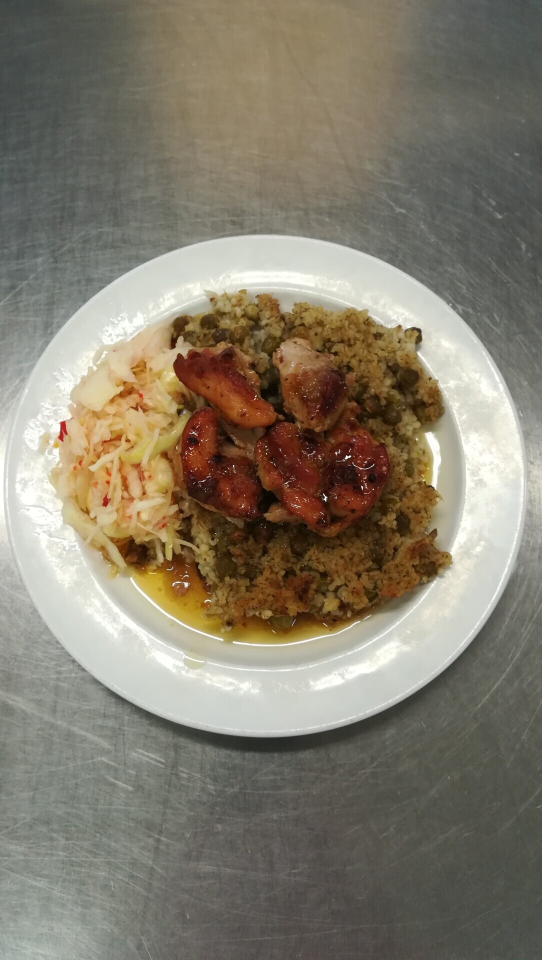 Vepřový závitek, dušená hrášková rýže