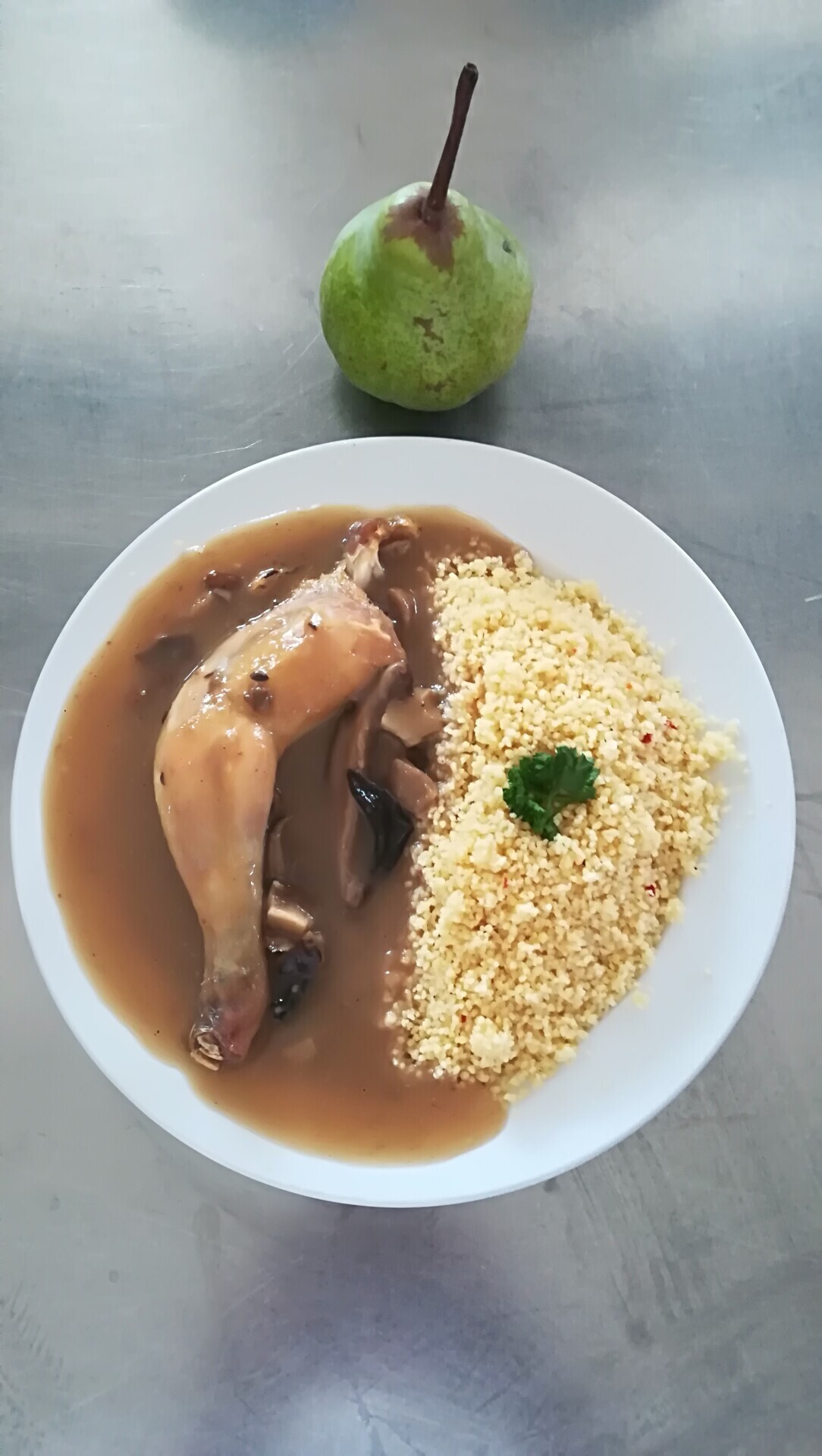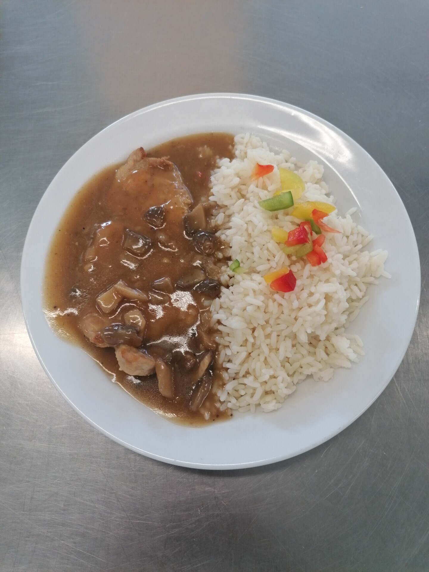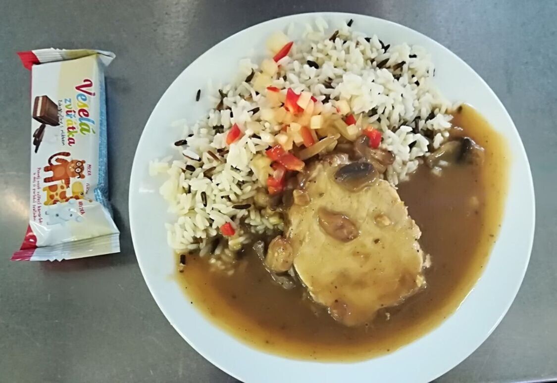 Vepřový plátek na žampionech, dušená rýže