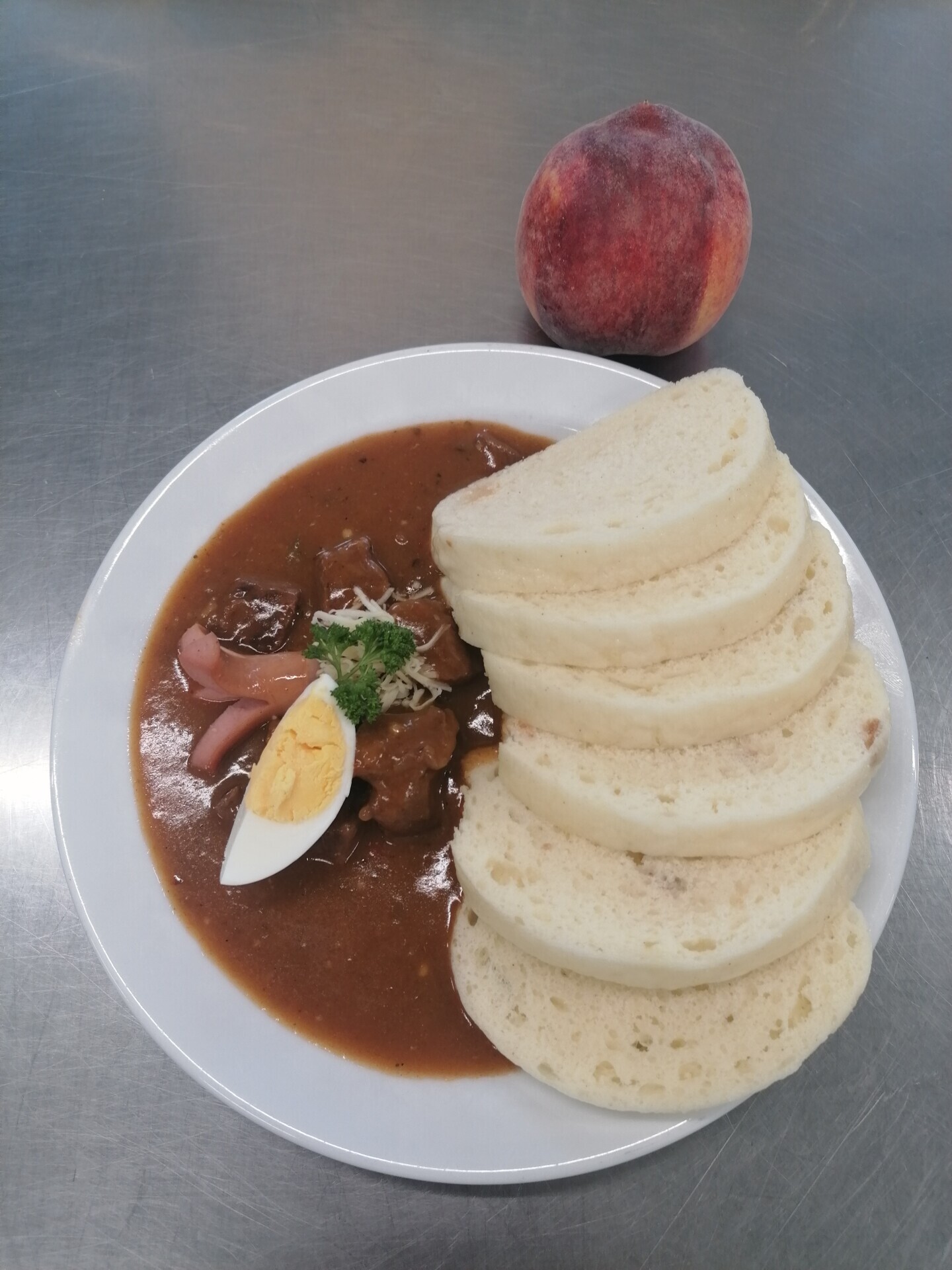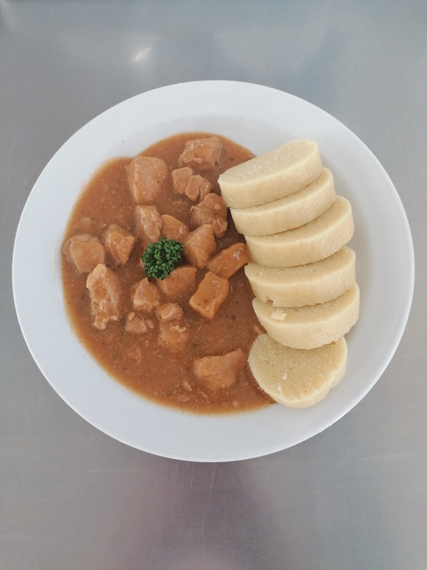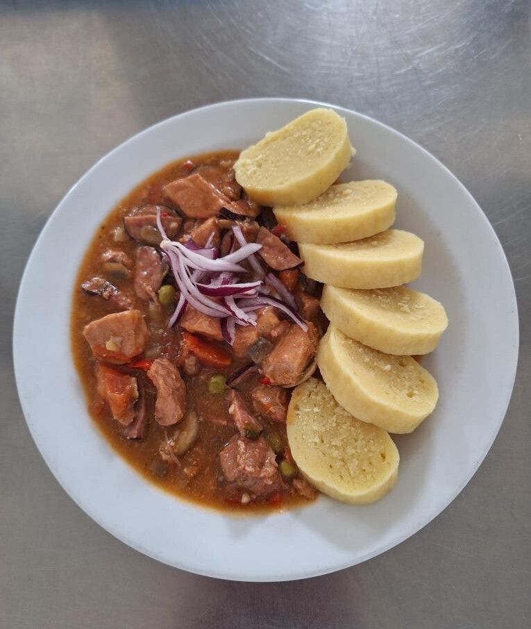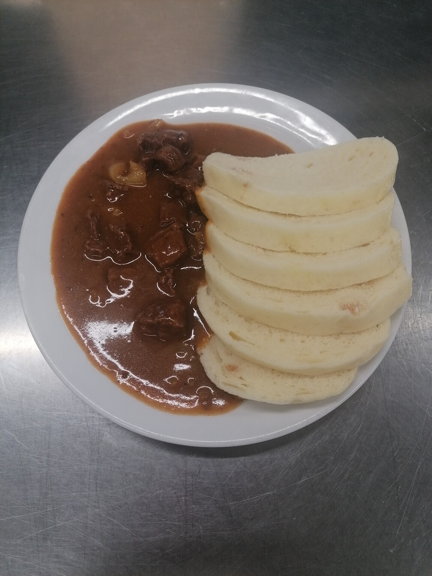 Vepřový guláš, bramborový knedlík
