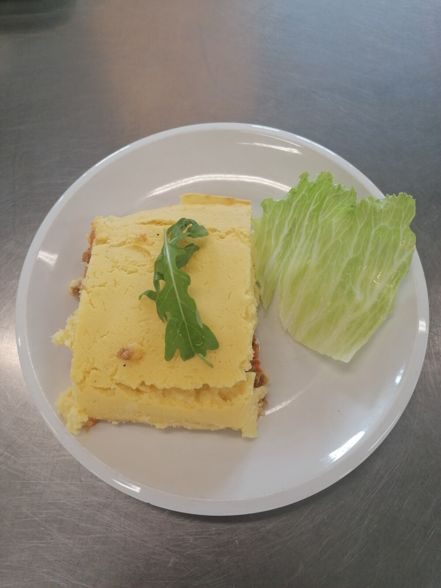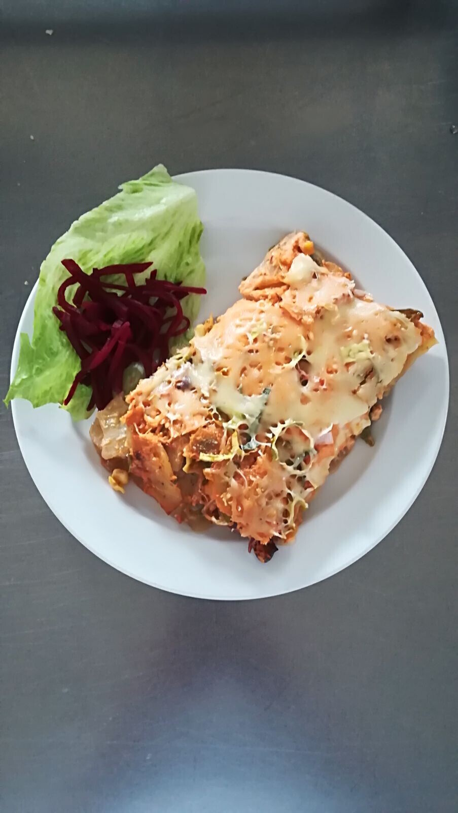Čočkový nákyp s mletým masem, zeleninový salát
