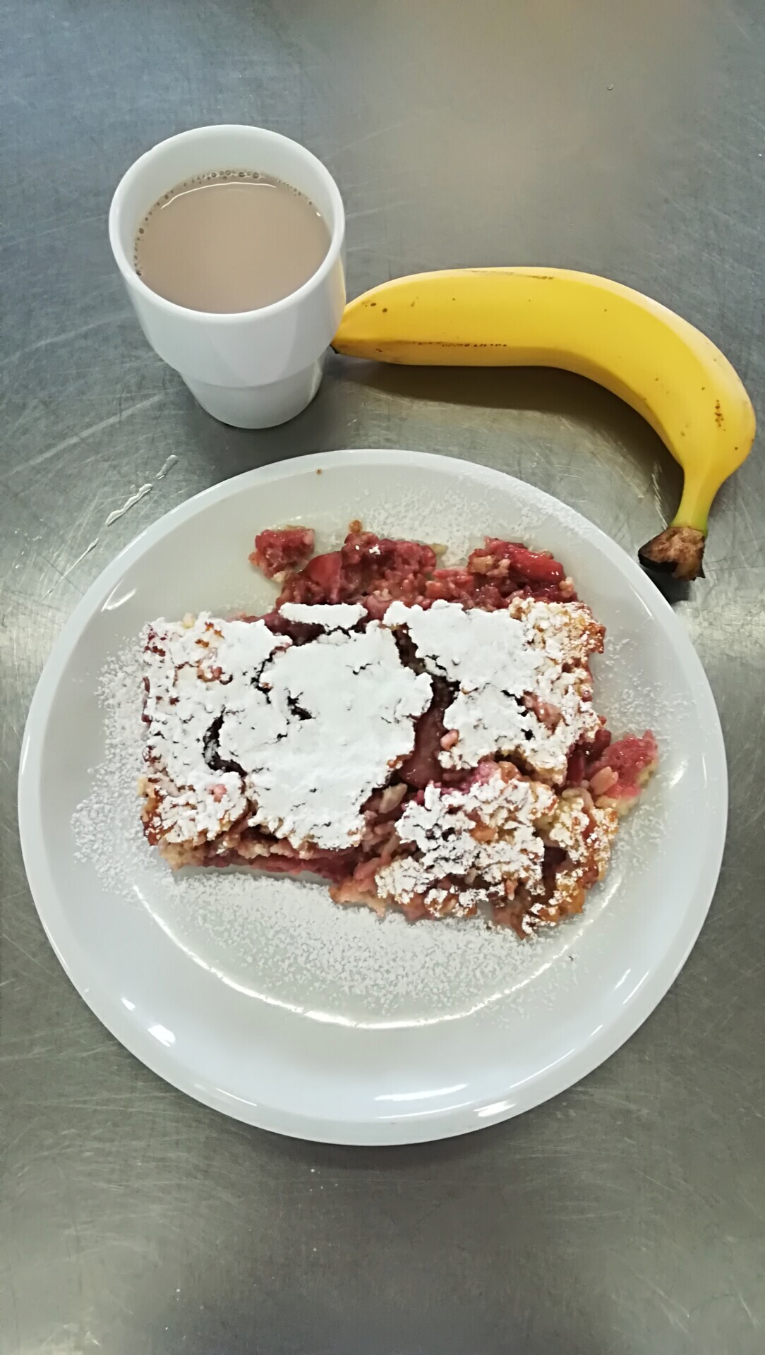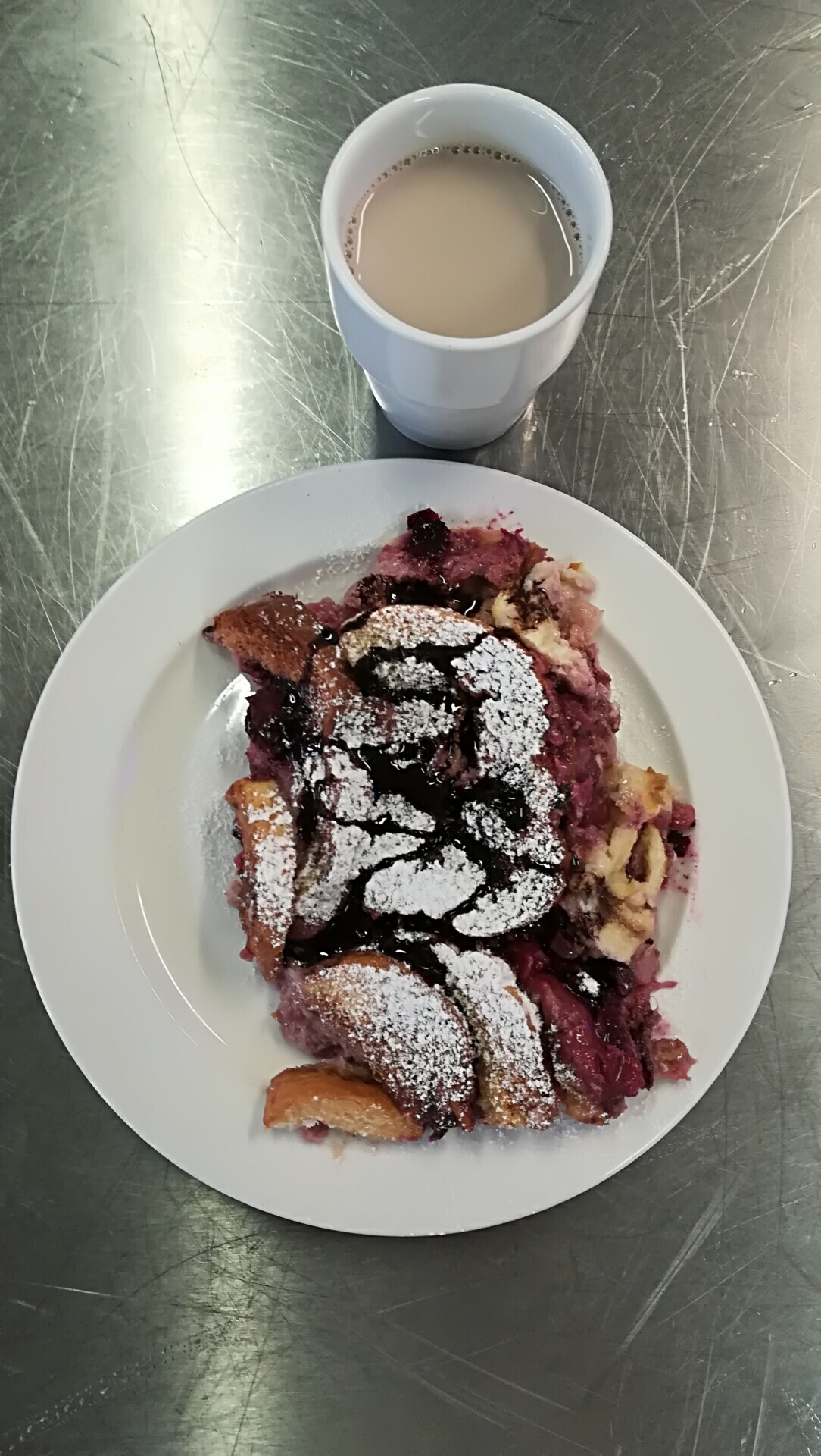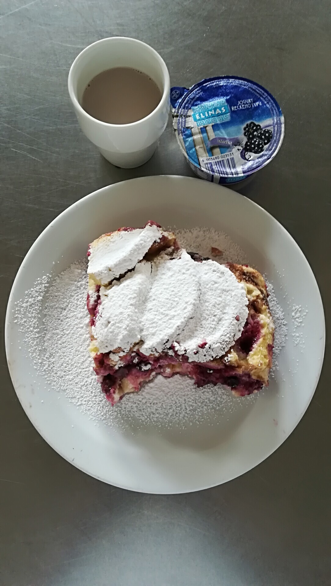 Žemlovka s tvarohem a lesním ovocem, ochucené mléko
