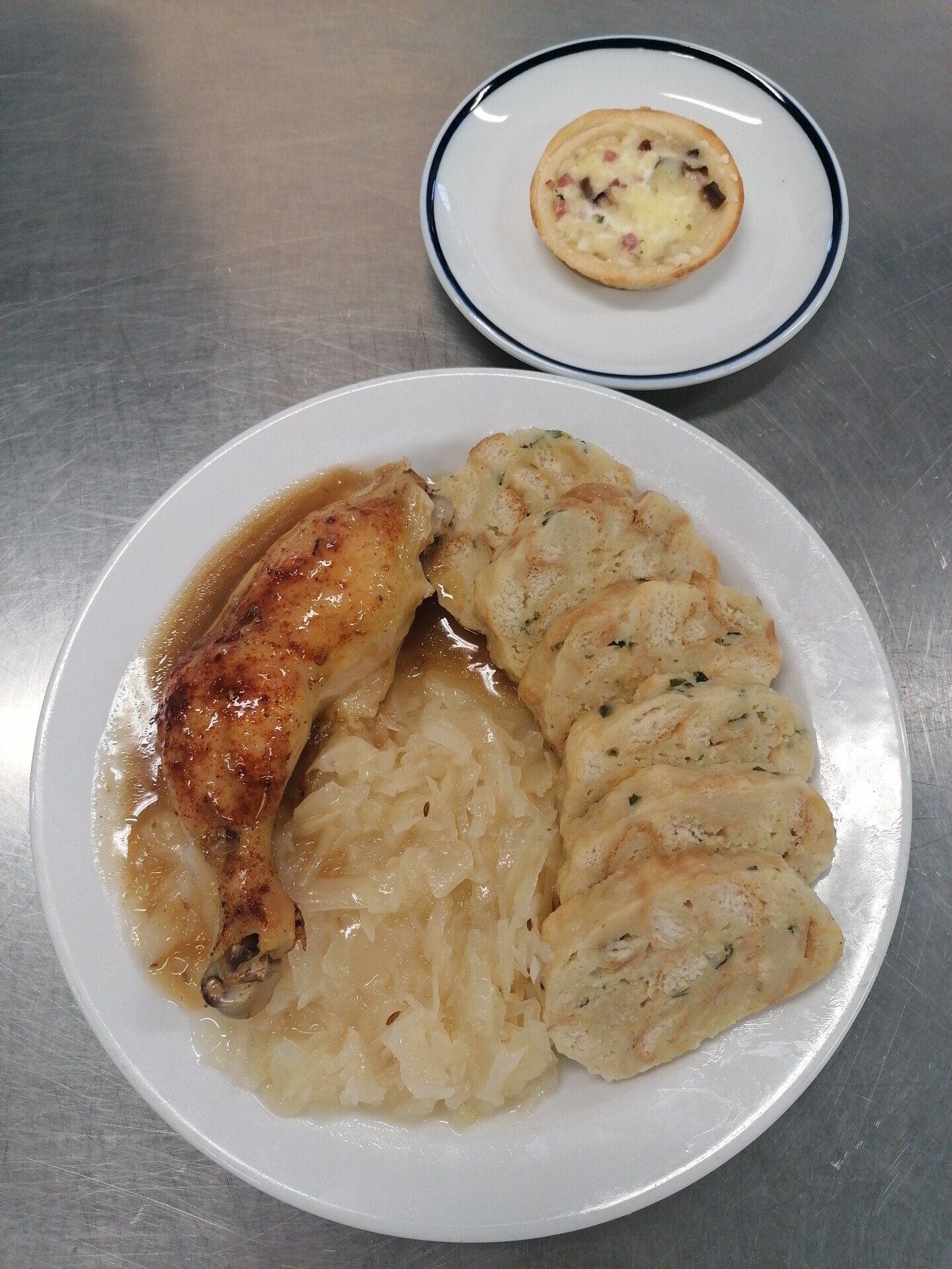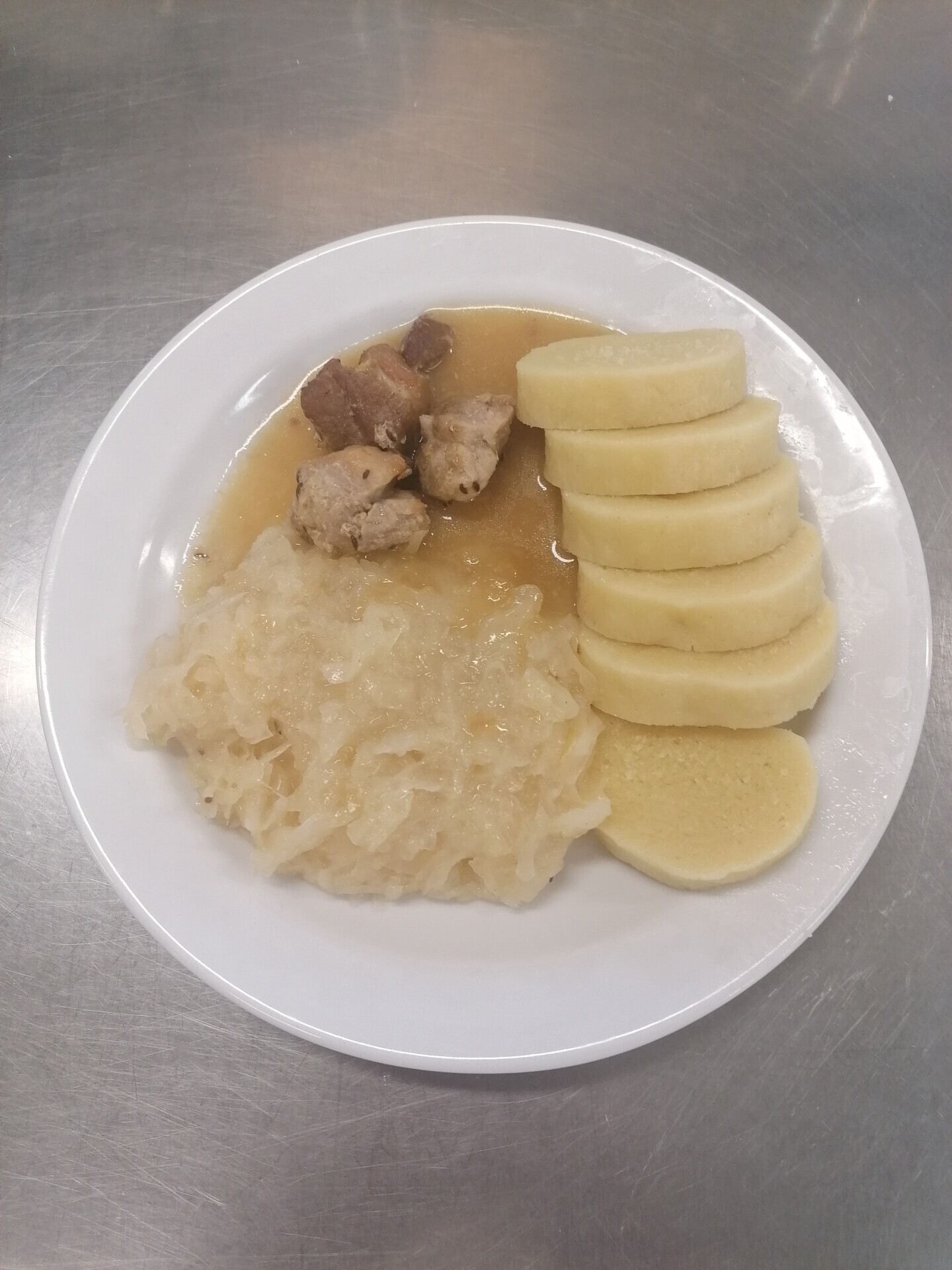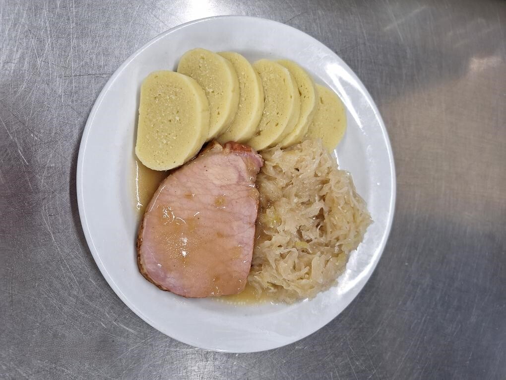 Vepřová pečeně, dušené kysané zelí, bramborový knedlík