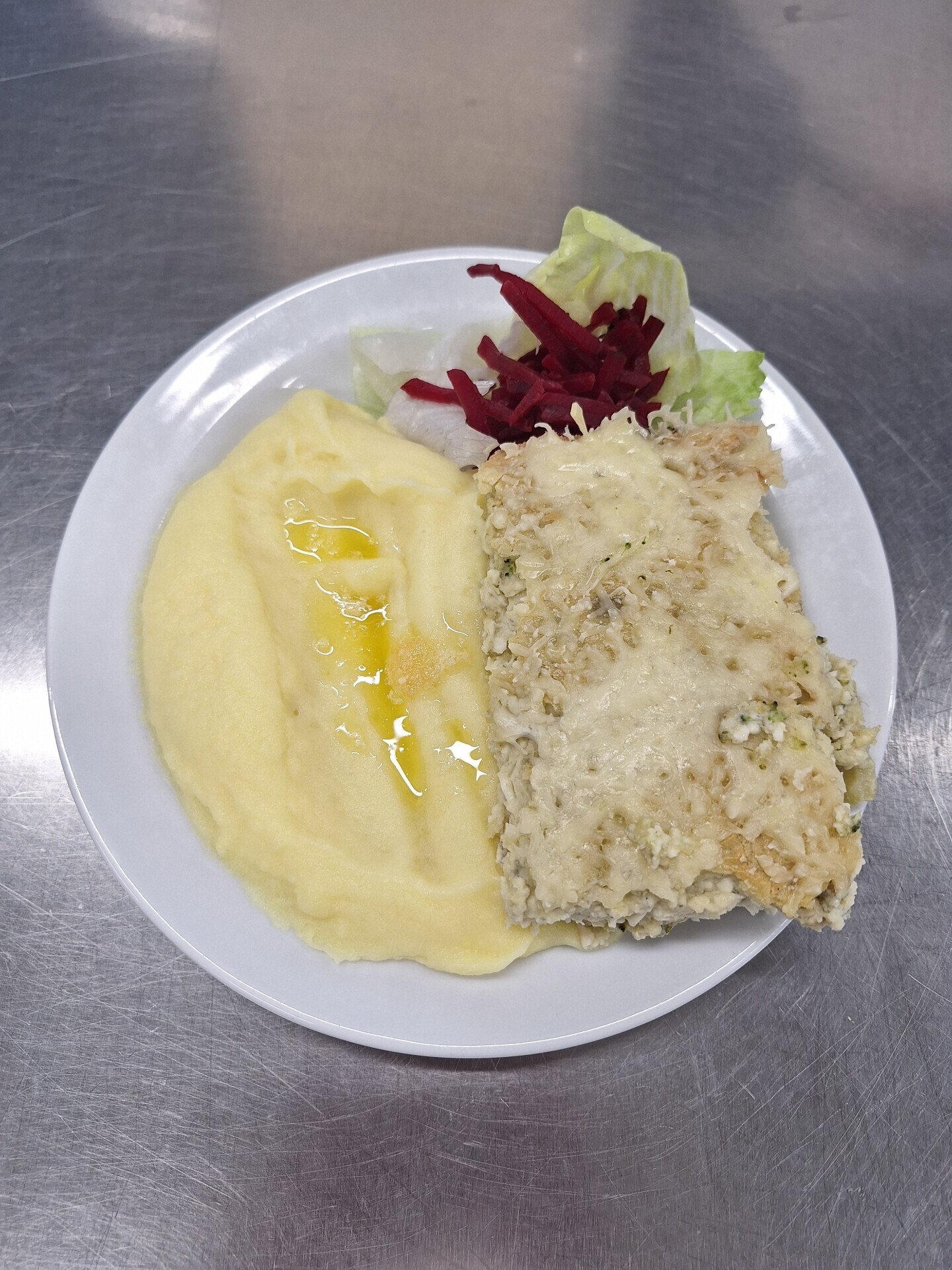 Brokolicový nákyp s nivou, bramborová kaše