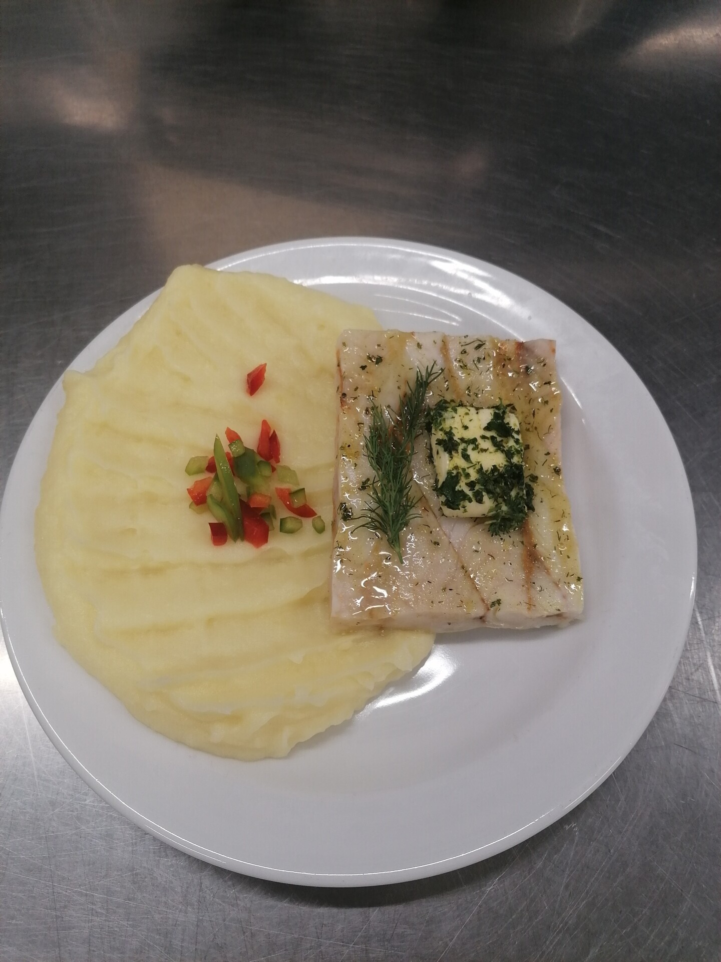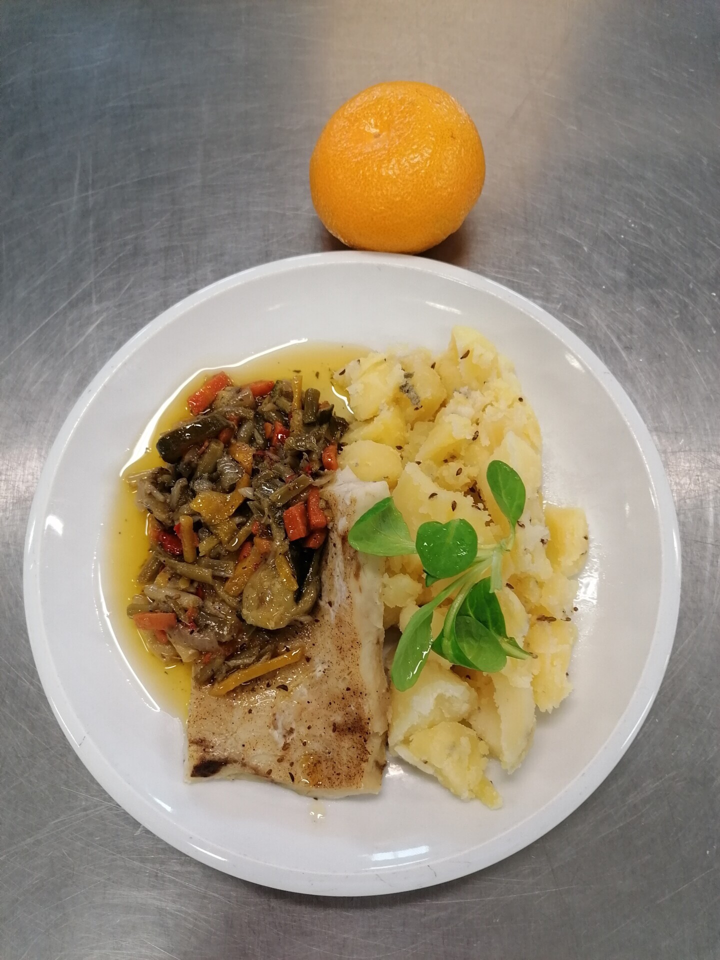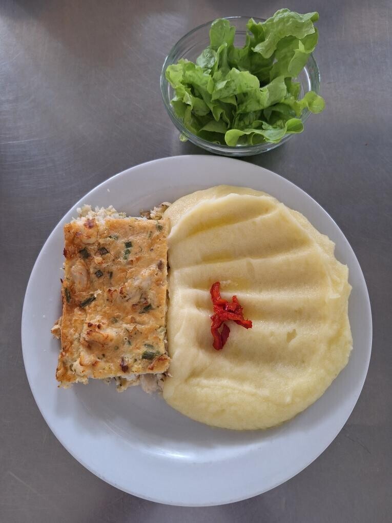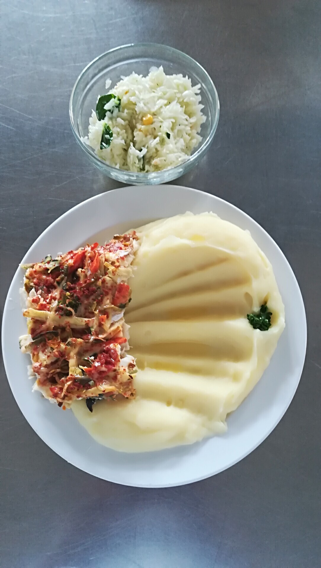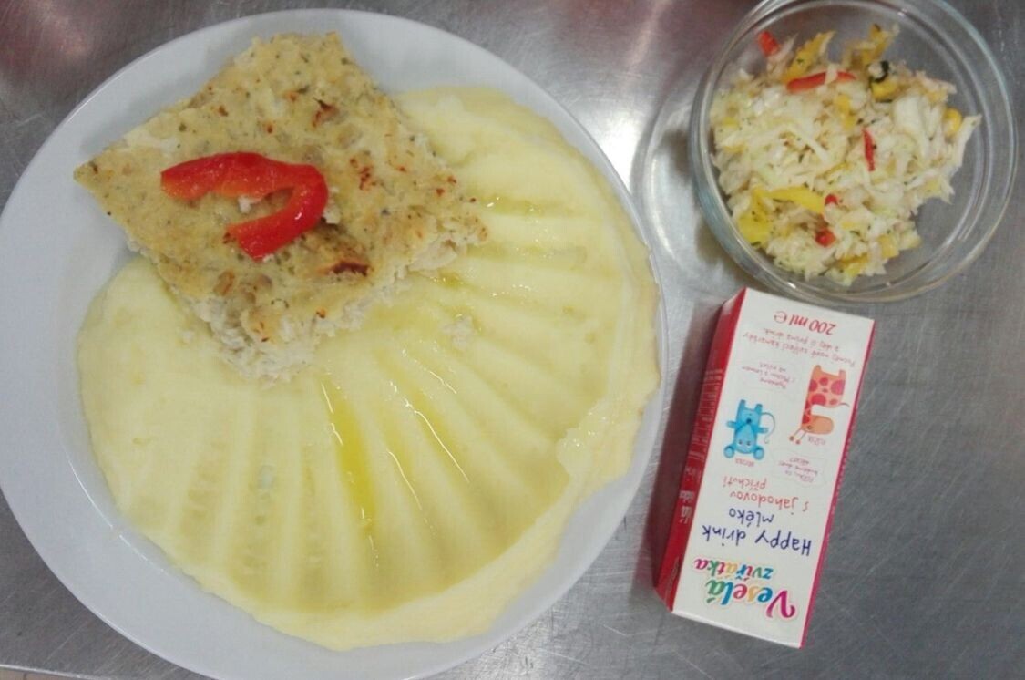 Zapečené rybí file se zeleninou, bramborová kaše
