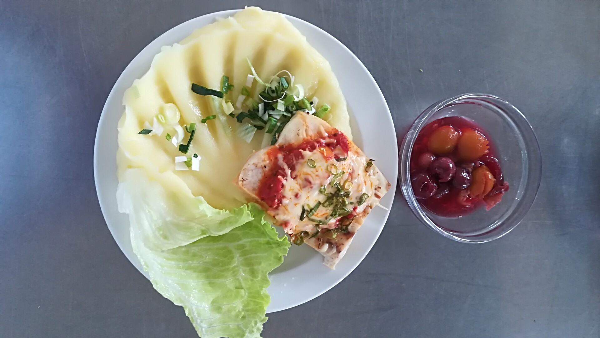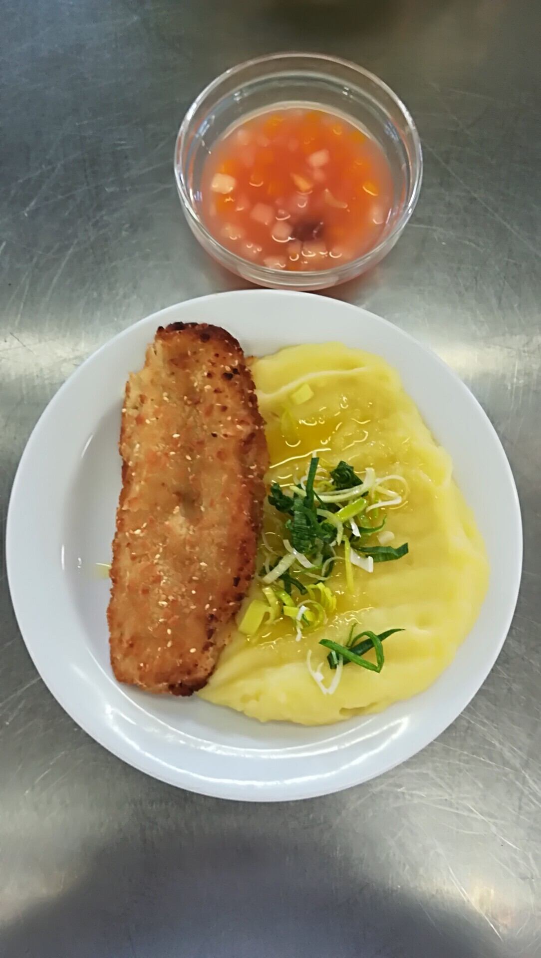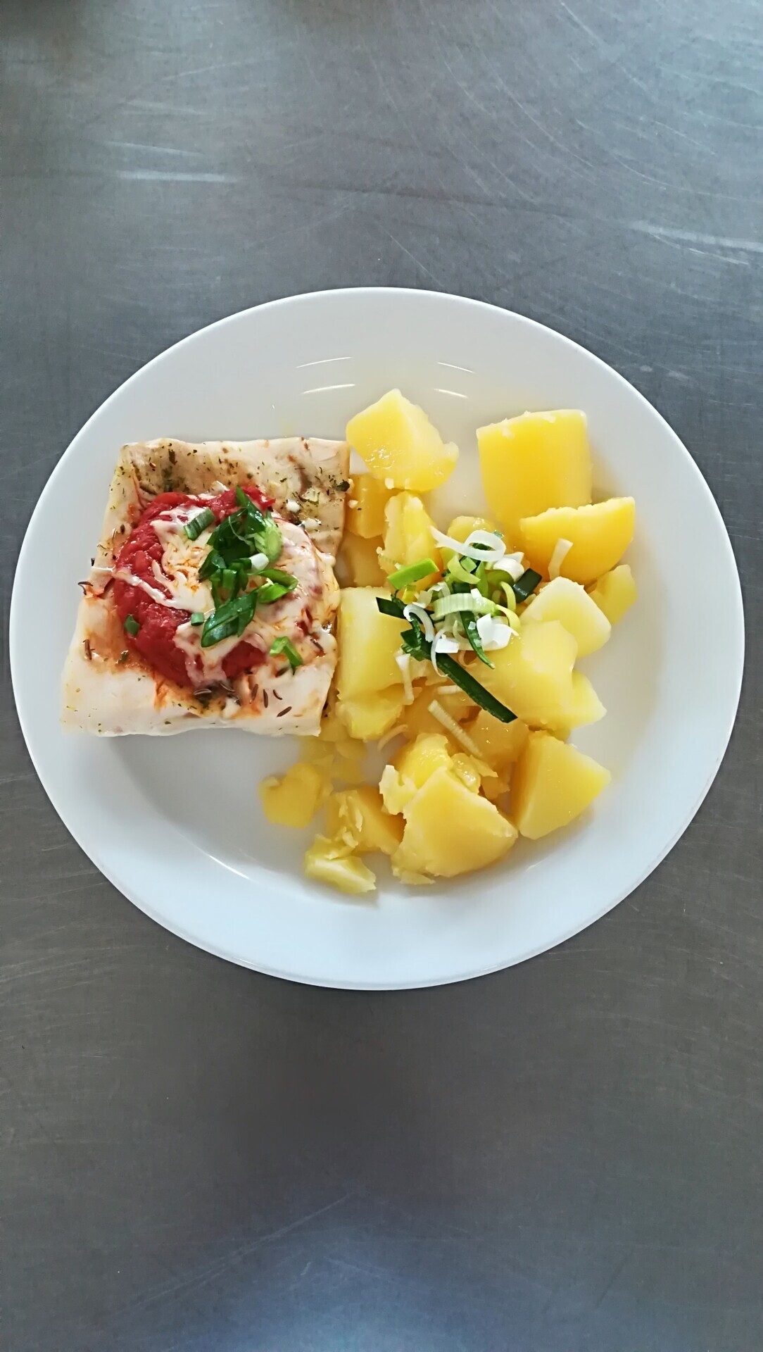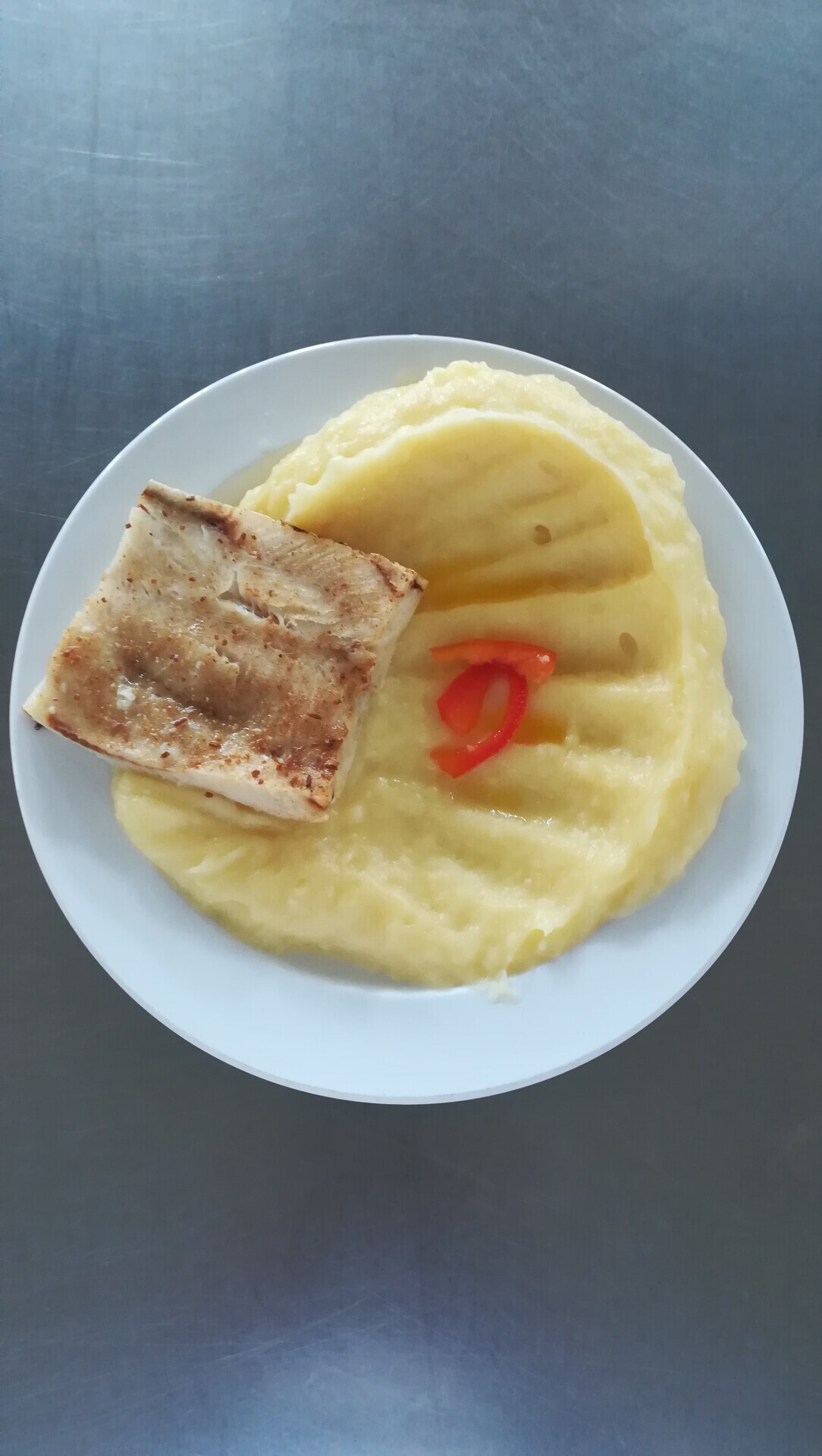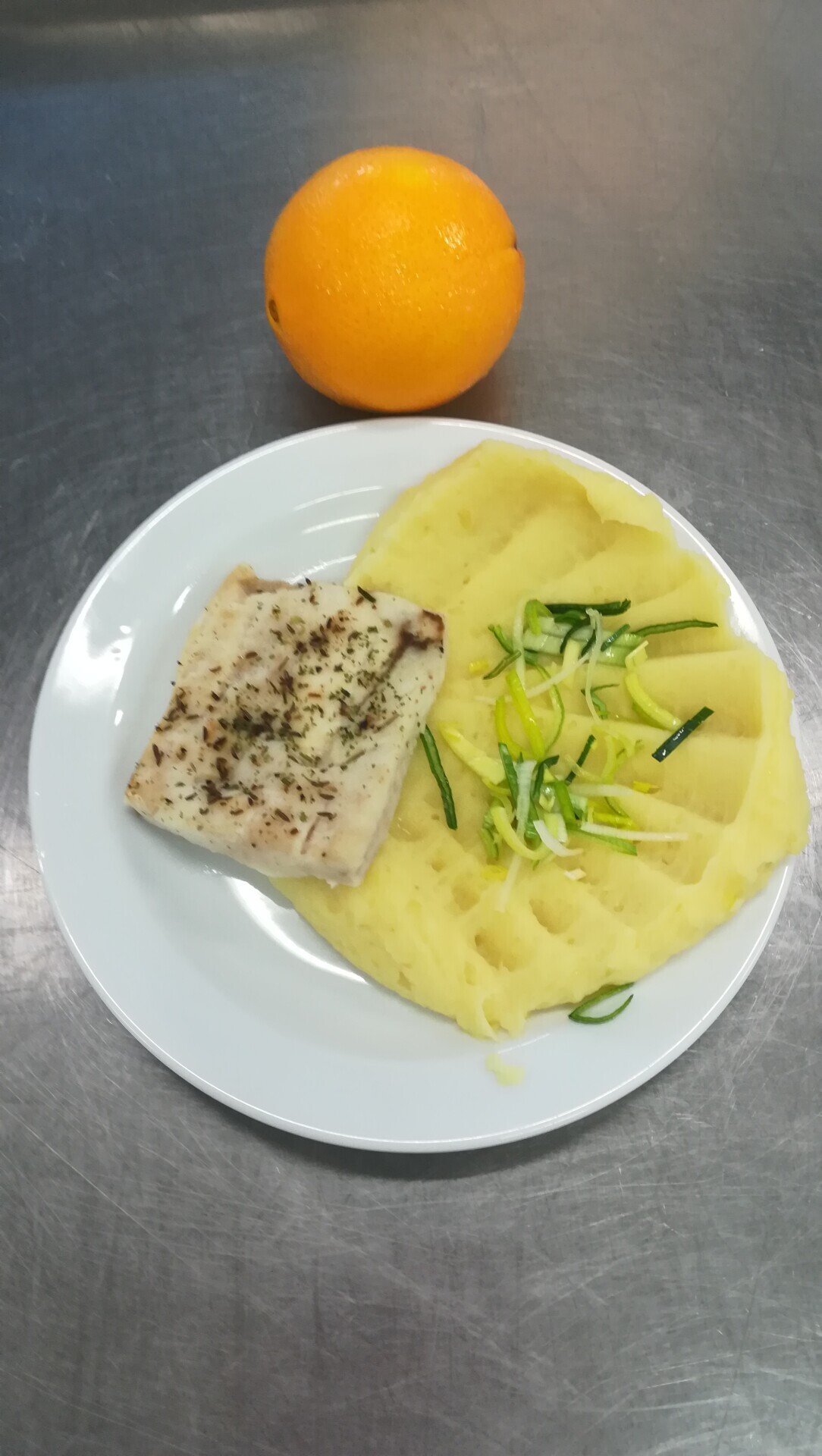 Zapečené rybí file se zeleninou, bramborová kaše