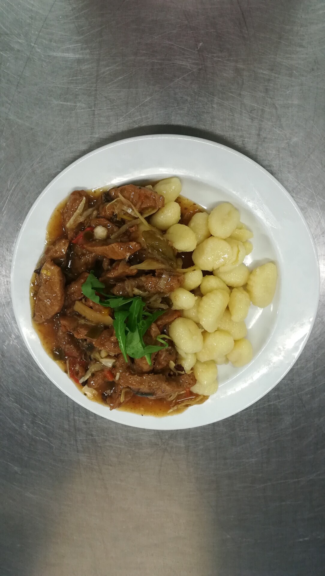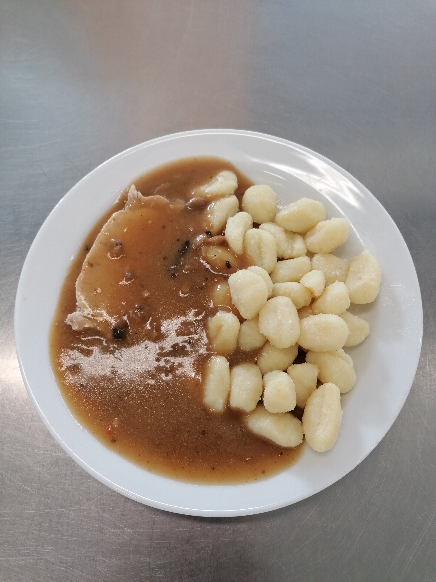 Vepřové na žampionech, bramborové noky