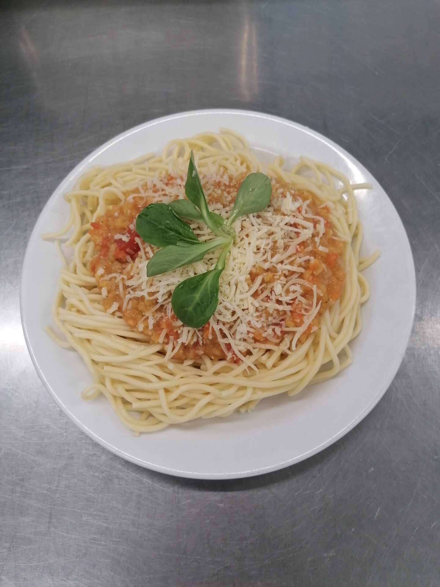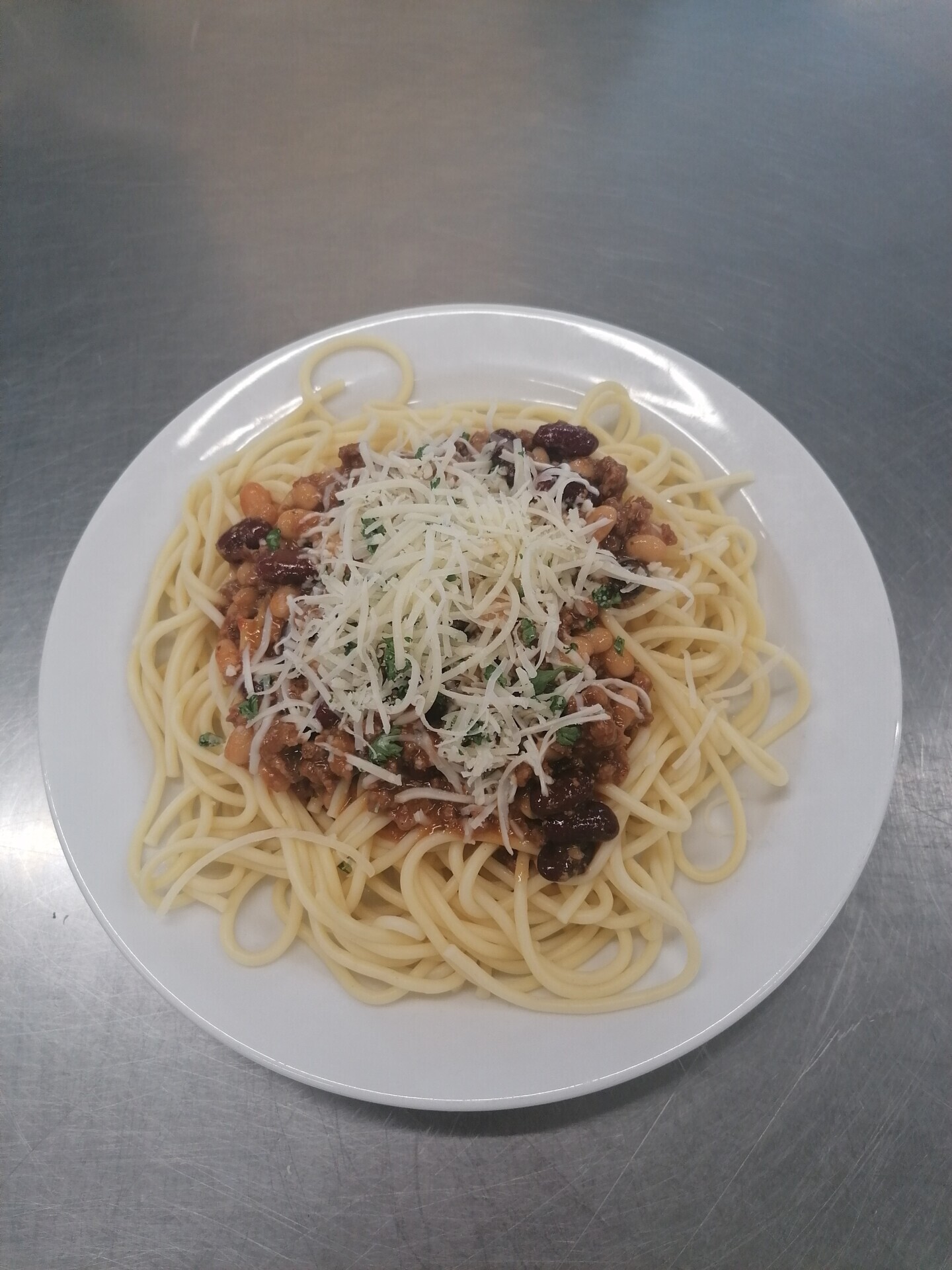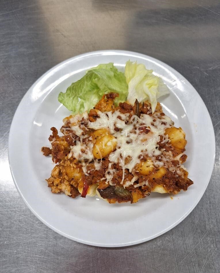 Zapečené bramborové noky s boloňskou omáčkou, strouhaný sýr