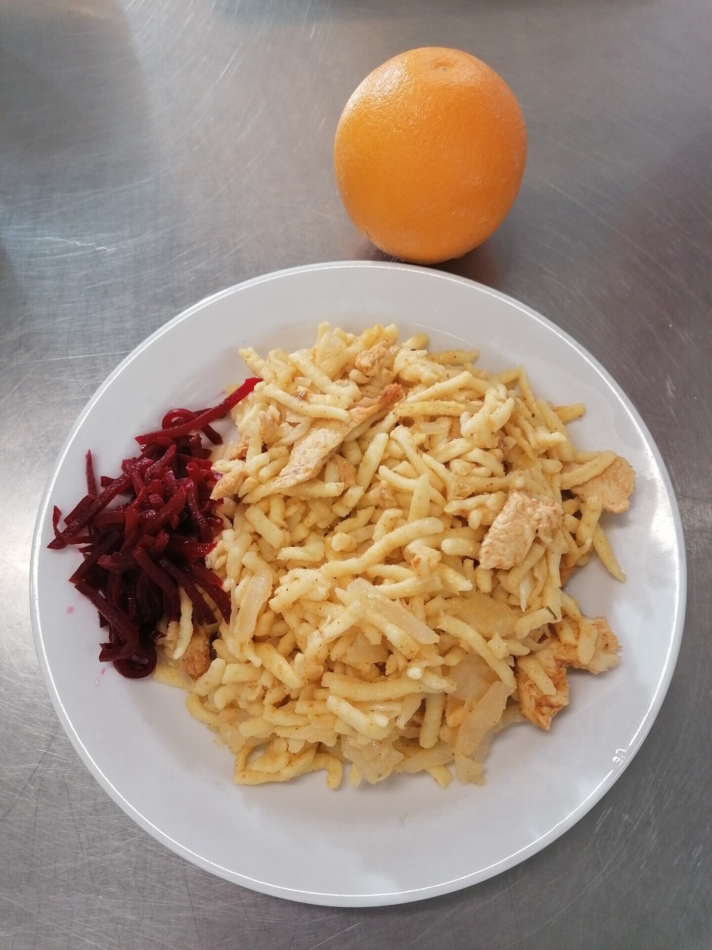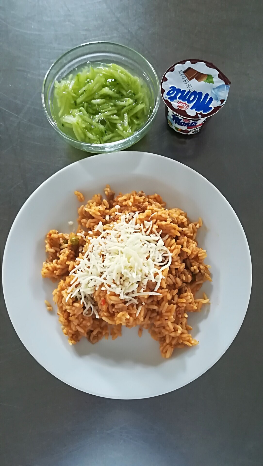 Bratislavské vepřové rizoto (z těstovinové rýže), strouhaný sýr