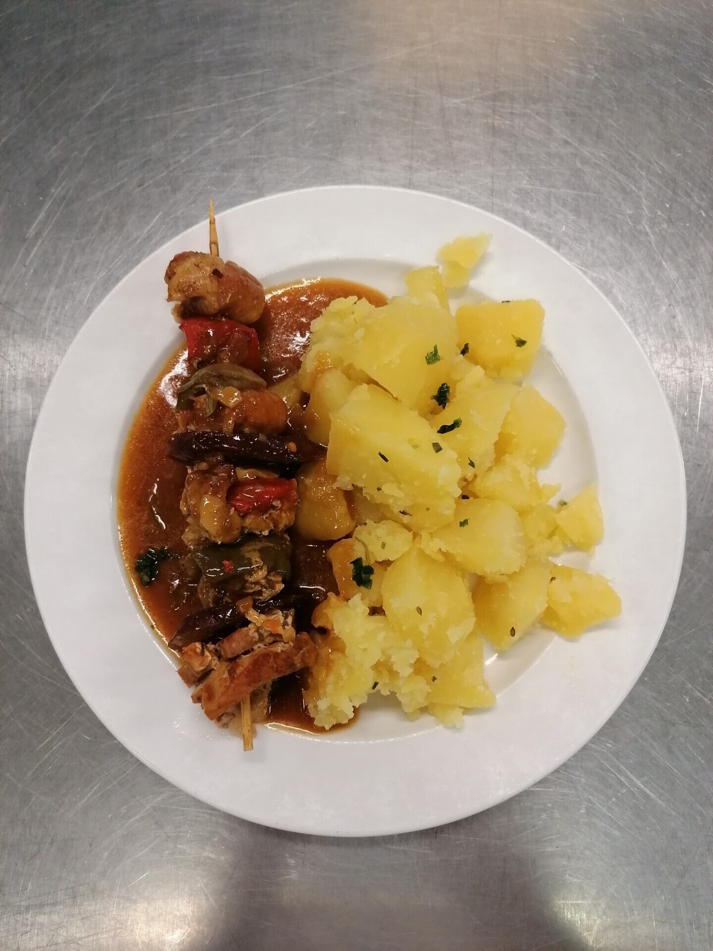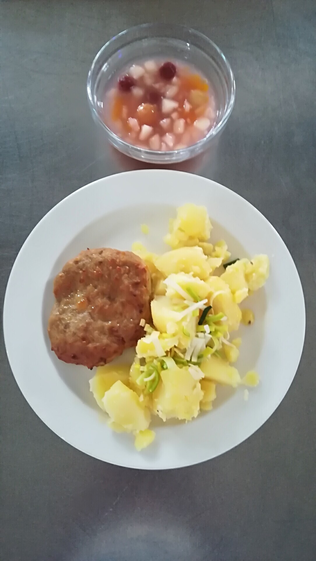 Zahradnická sekaná, vařený brambor