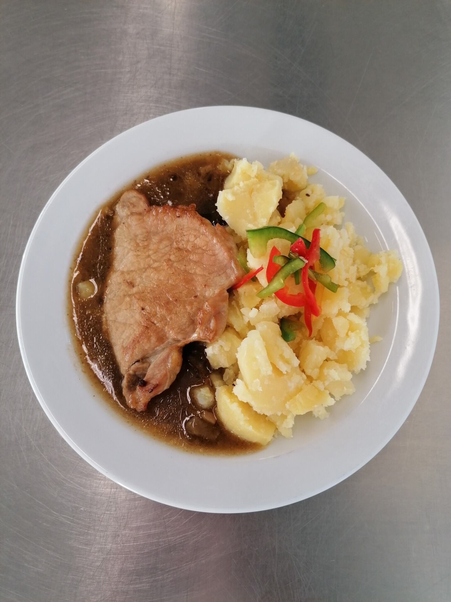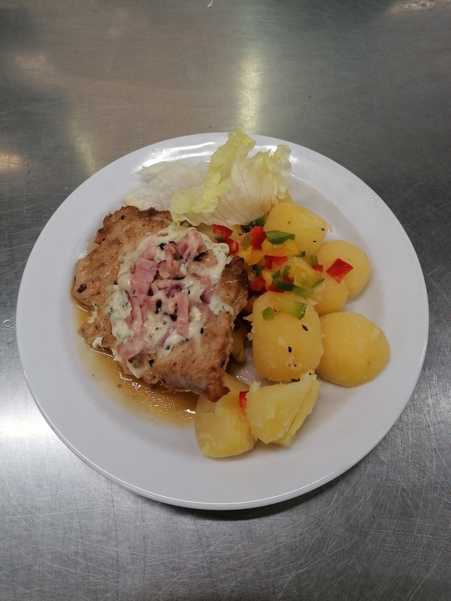Vepřové alá bažant, bramborové knedlíky s cibulkou a pažitkou
