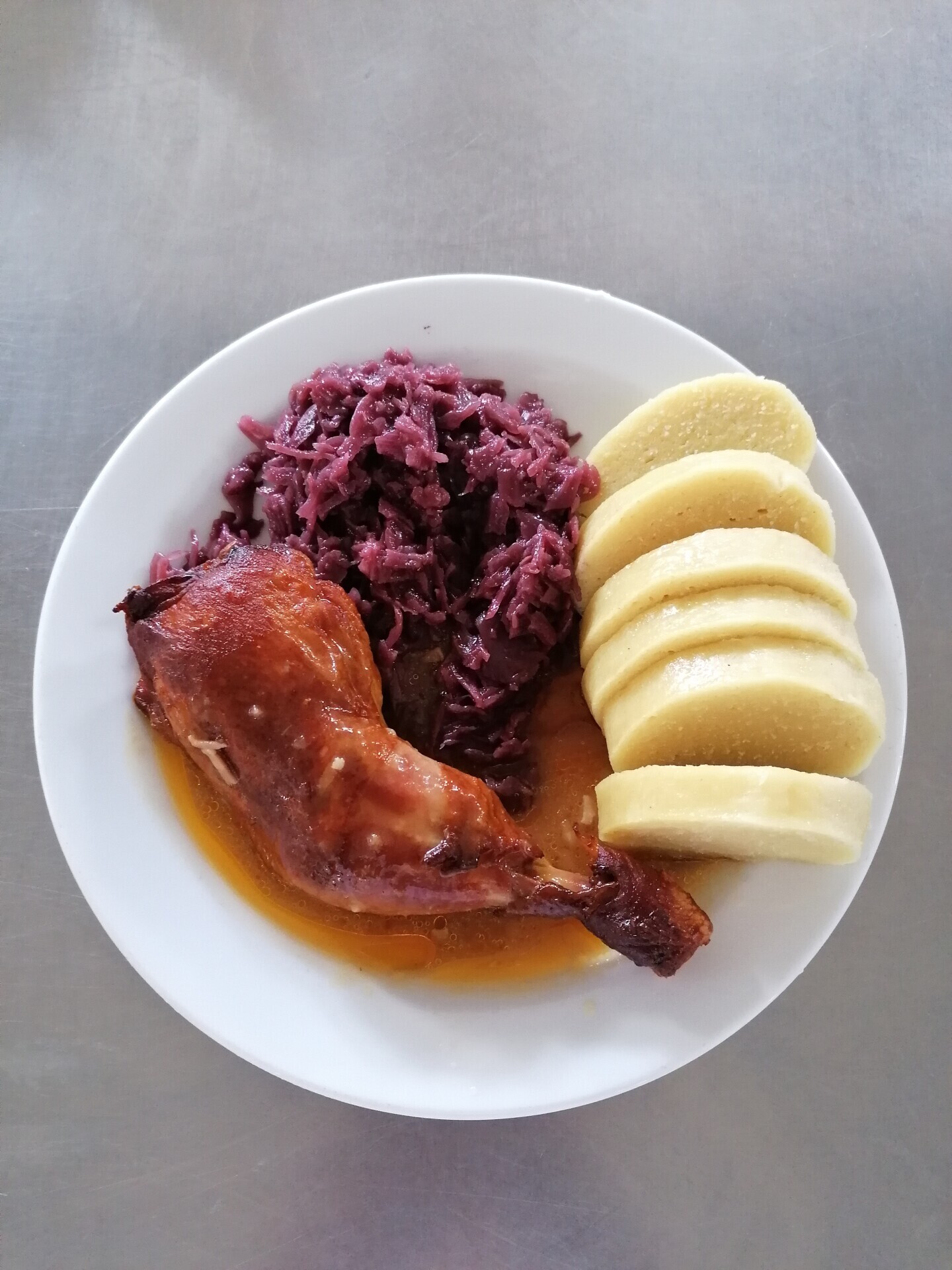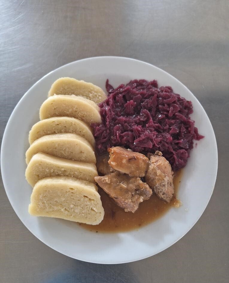 Vepřové výpečky, dušené červené zelí, bramborový knedlík