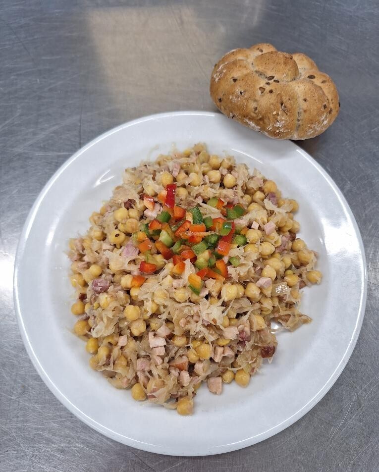Záhorácká cizrna (cizrna, uz.maso, kysané zelí), cereální houska