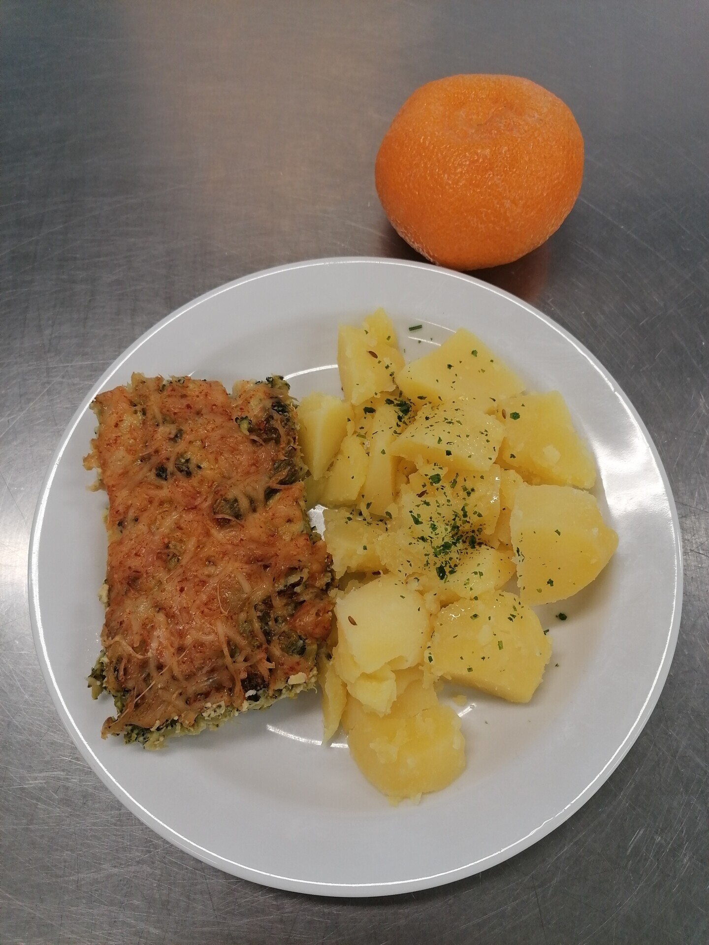 Zapečená brokolice se sýrem, vařený brambor
