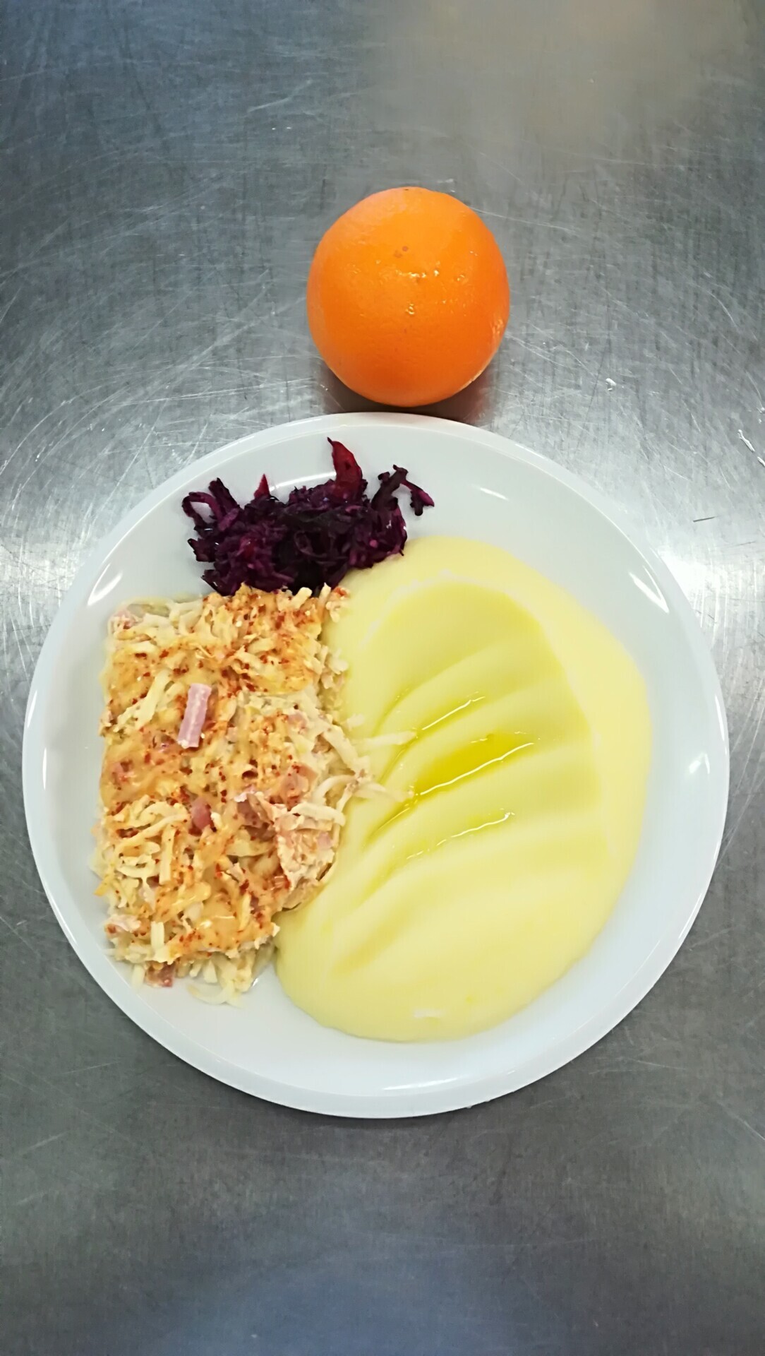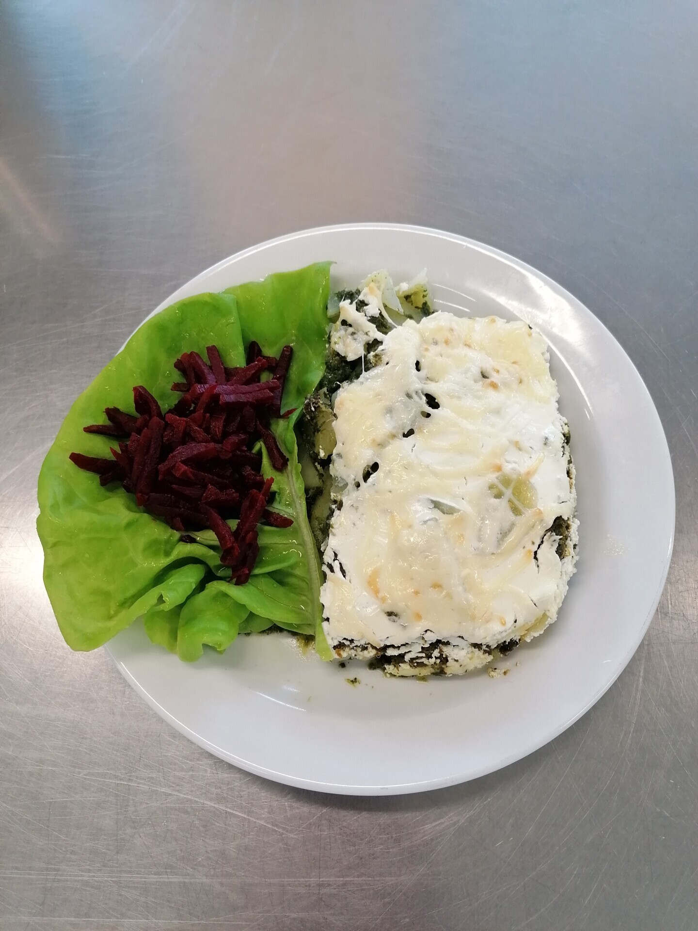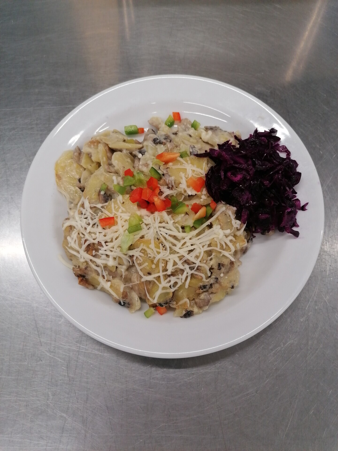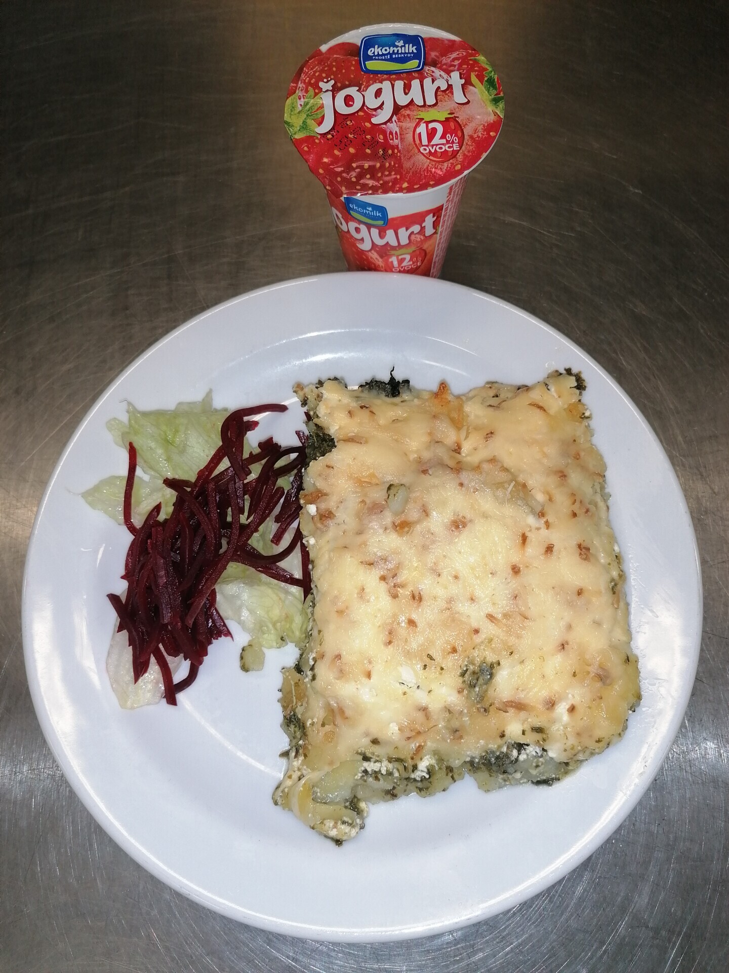 Zapečené brambory se šunkou a sýrem, červená řepa