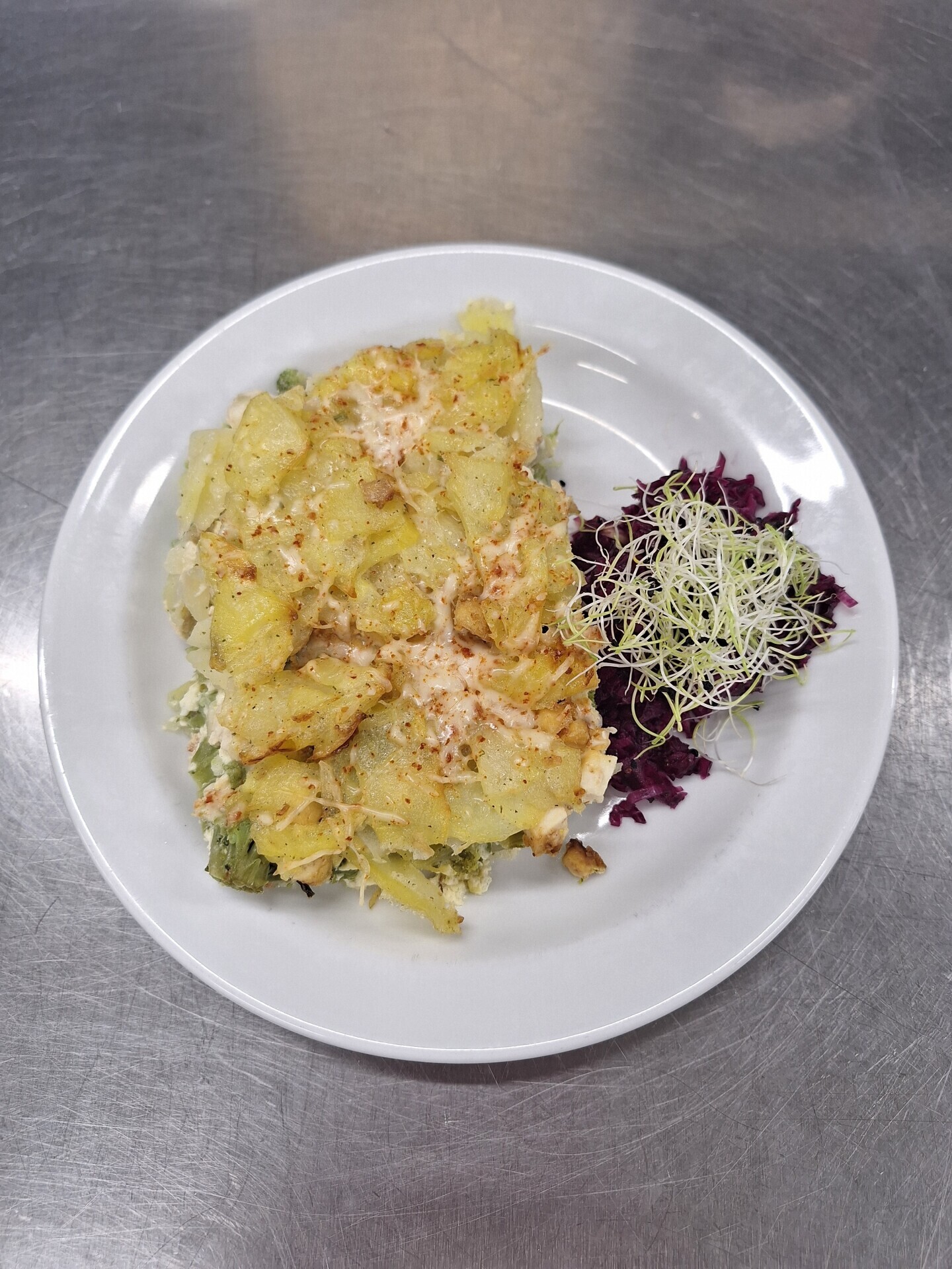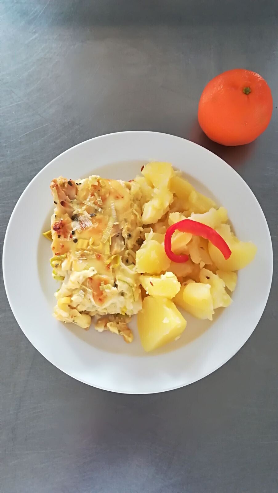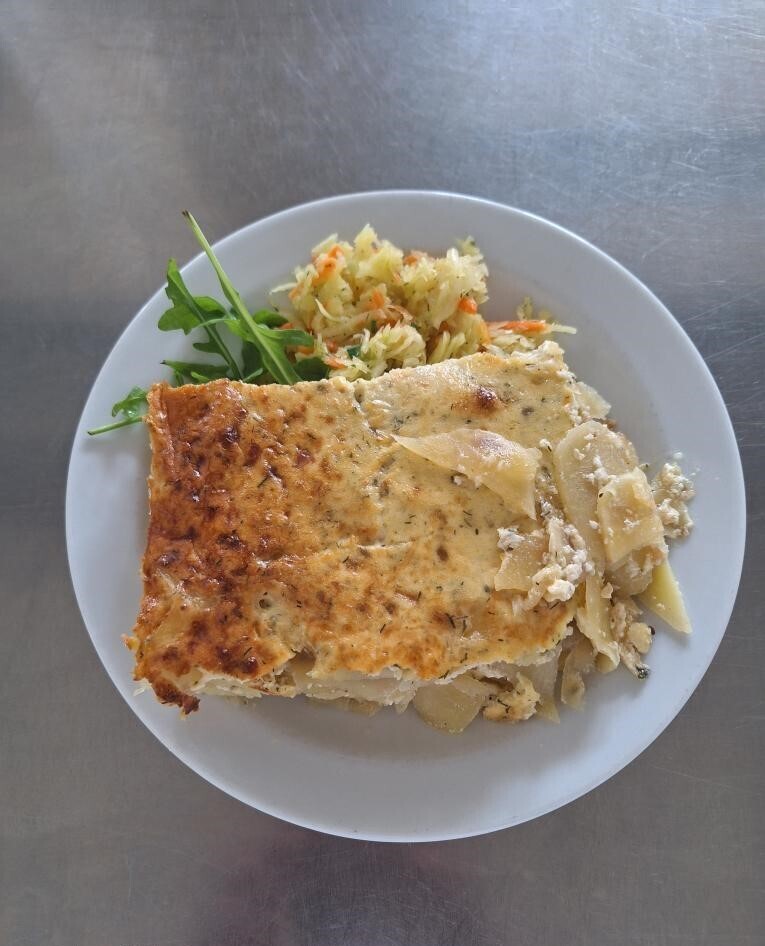 Zapečené brambor. noky se sójovým masem, pórkem a sýrem