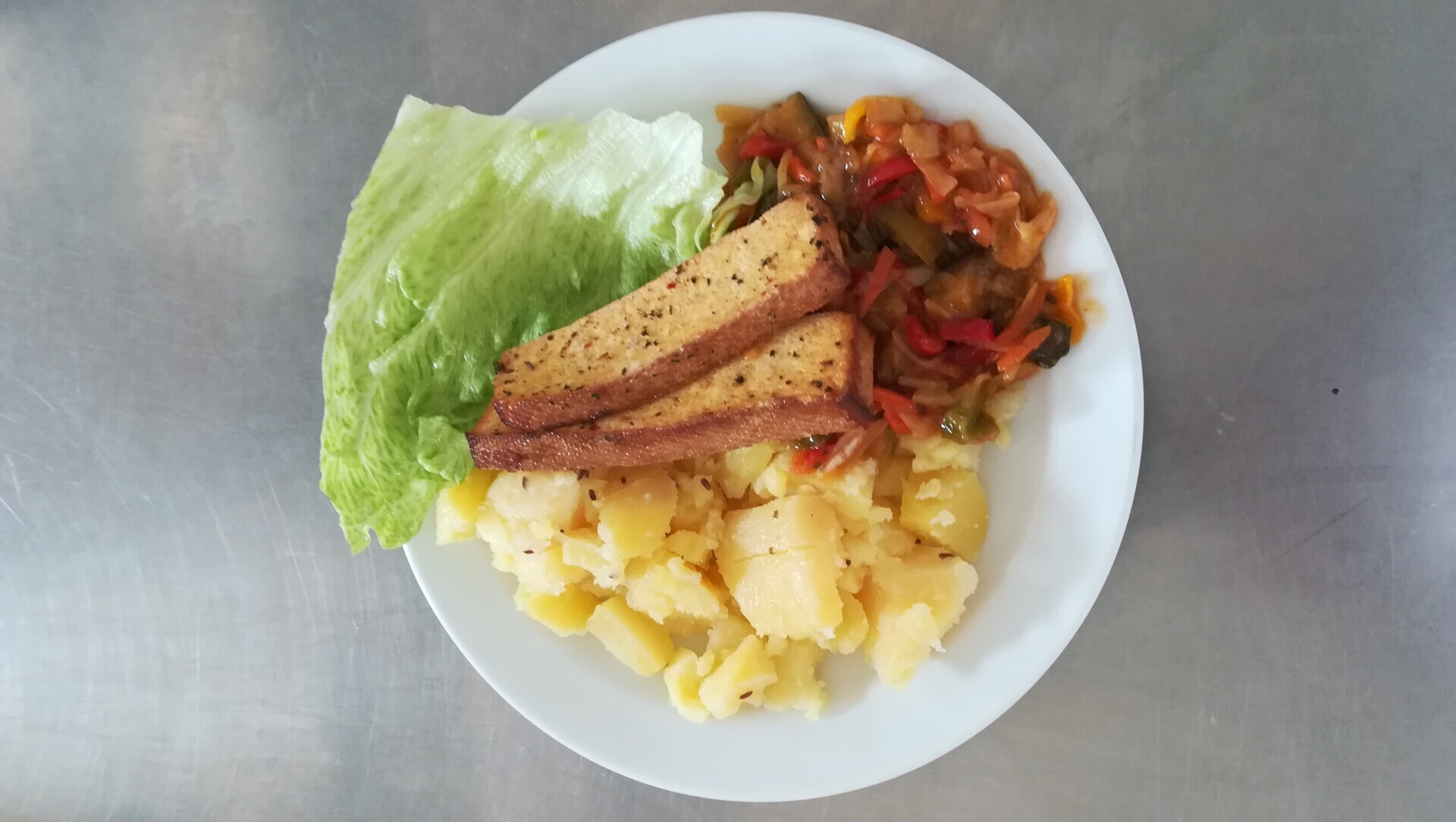 Zeleninová tofu směs, vařený brambor