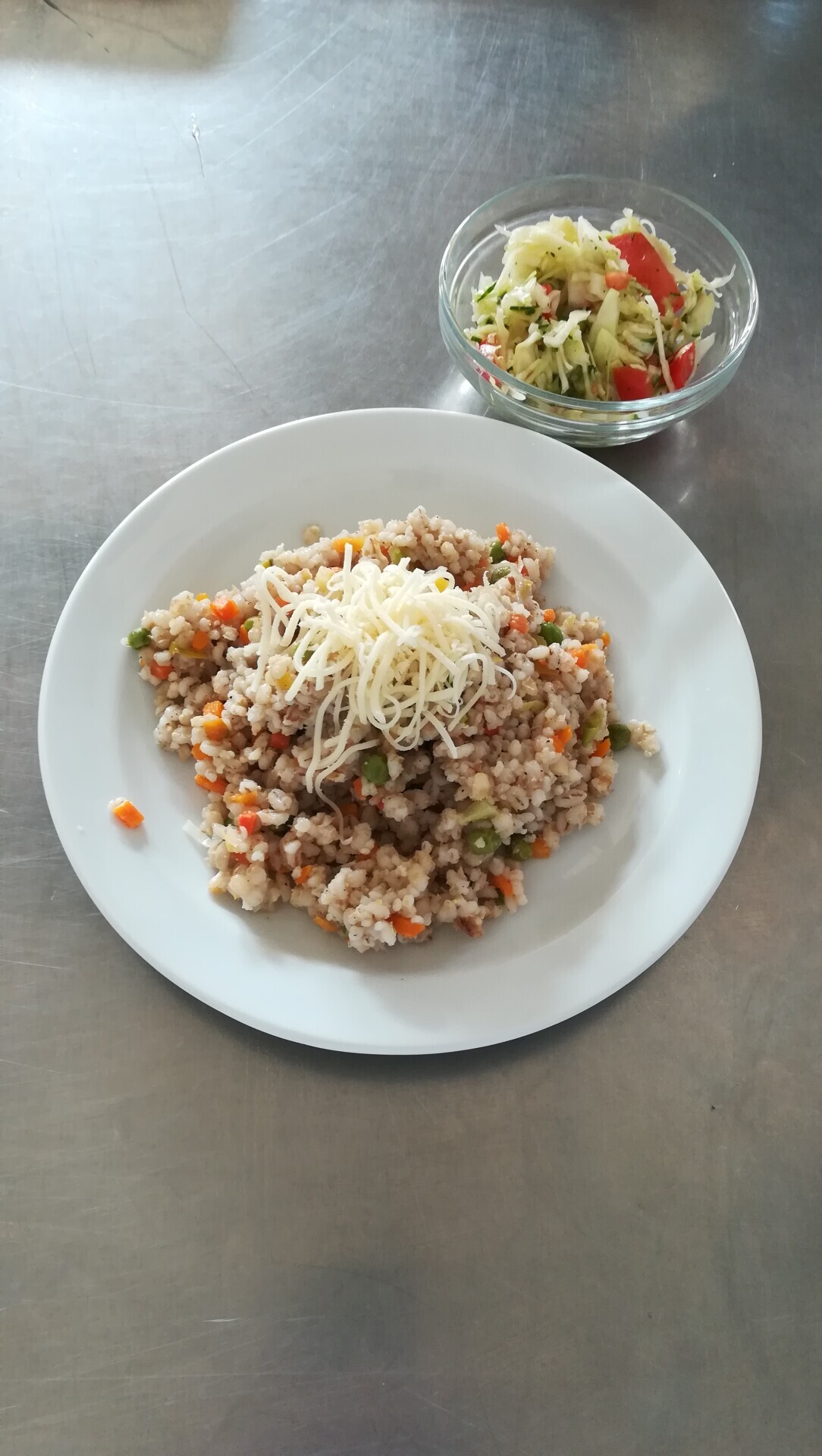 Zeleninové krupoto, strouhaný sýr, zeleninový salát