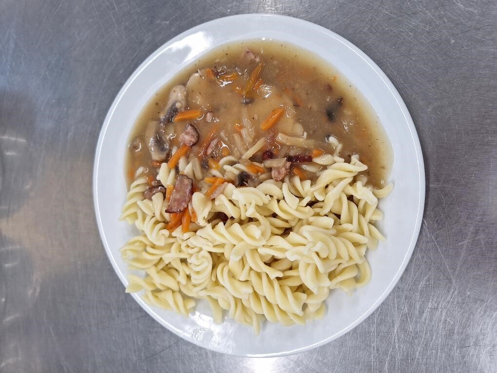 Vepřové na houbách, těstoviny