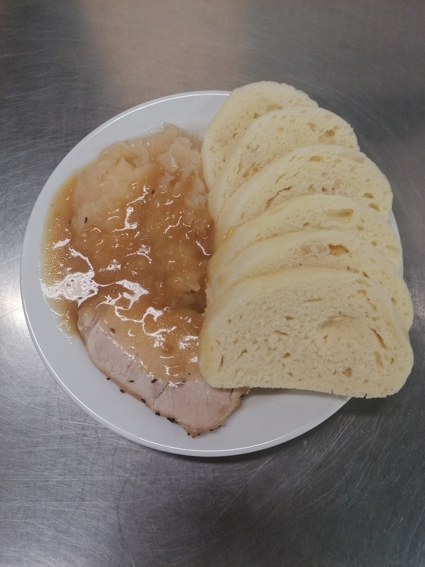 Bratislavské vepřové plecko, houskový knedlík