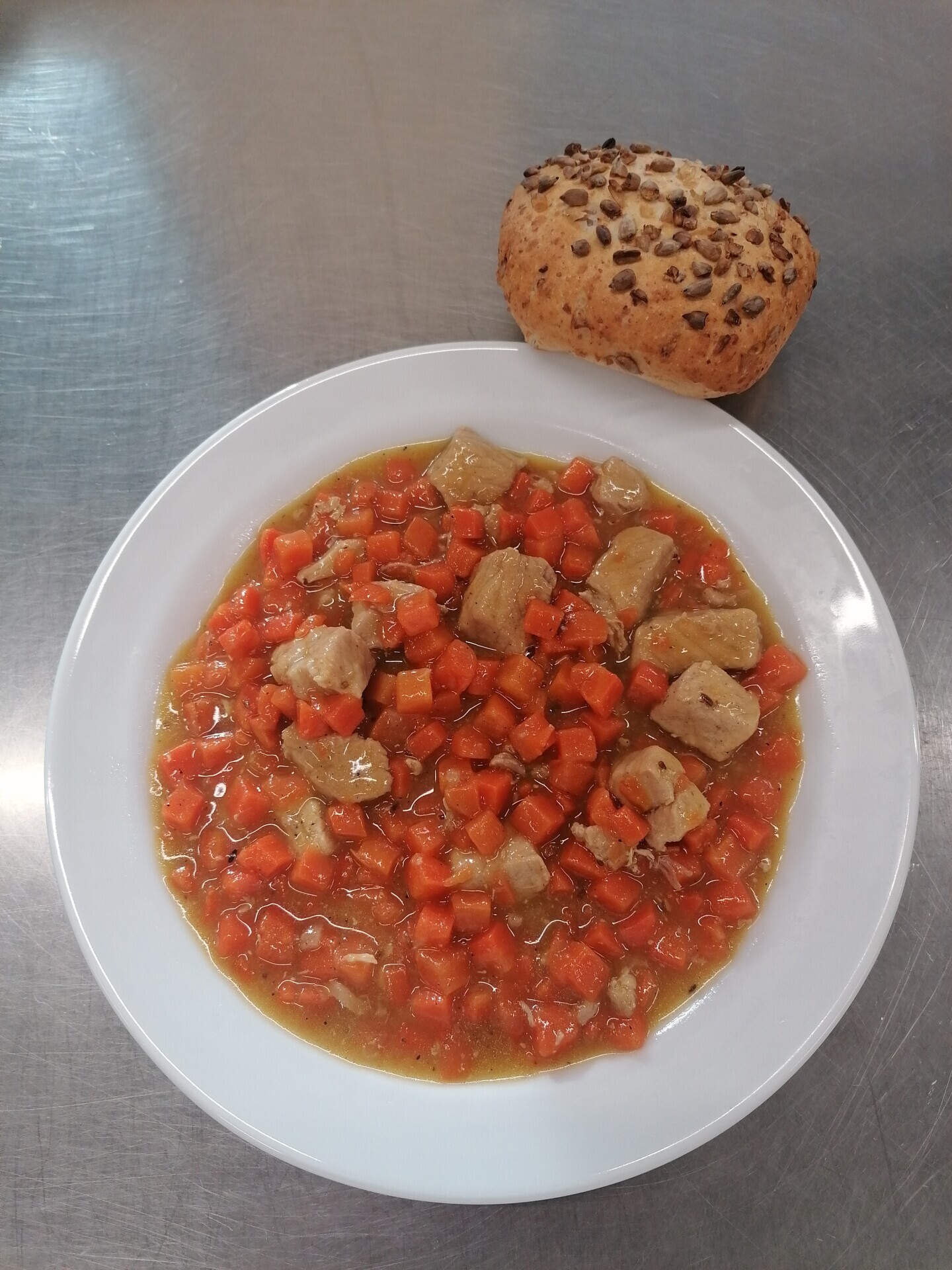 Vepřové dušené v mrkvi, slunečnicová kostka