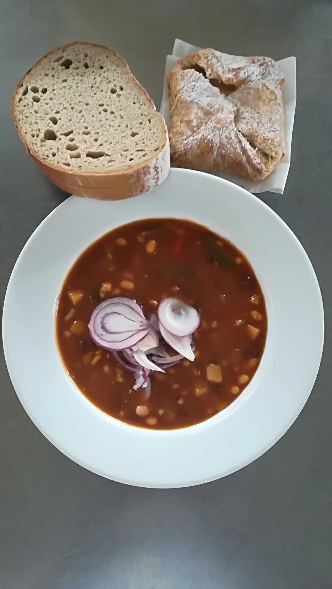 Bezmasý fazolový guláš, chléb