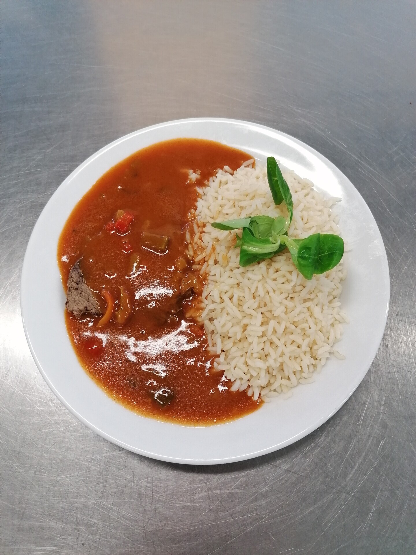 Znojemský guláš, dušená rýže